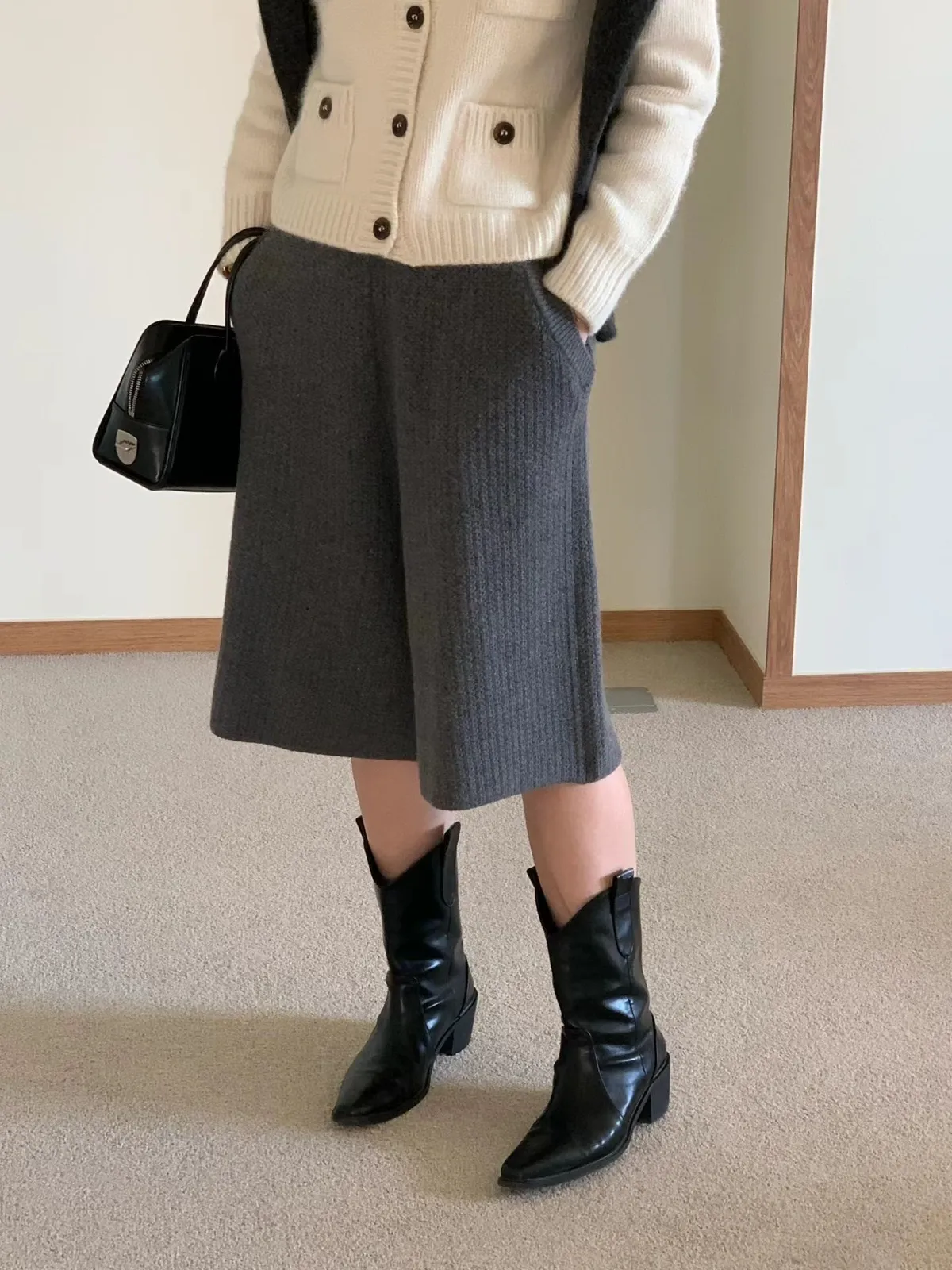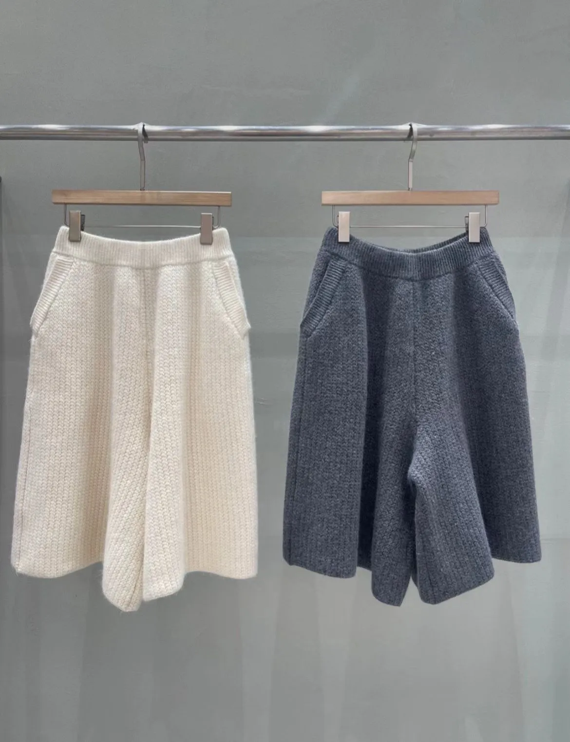 A59 1209氣質歐膩家羊毛混狐狸毛混浣熊毛針織六分褲2色