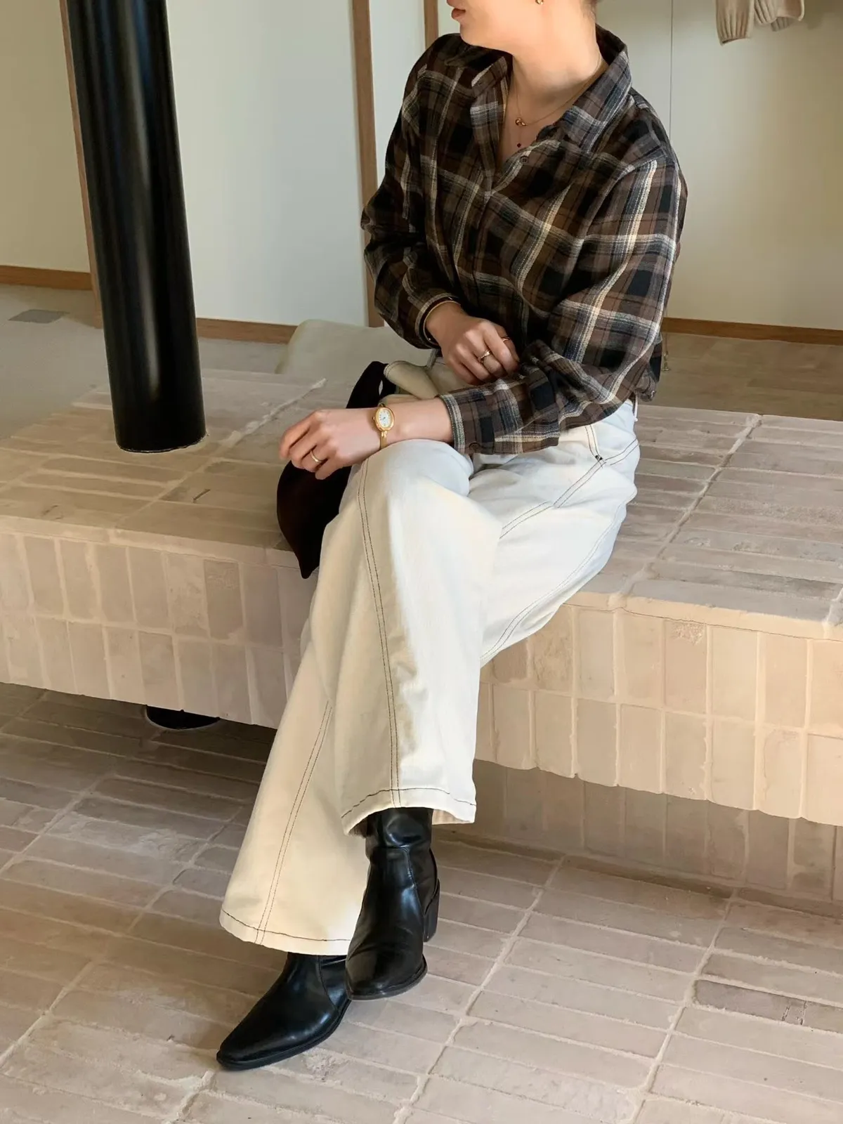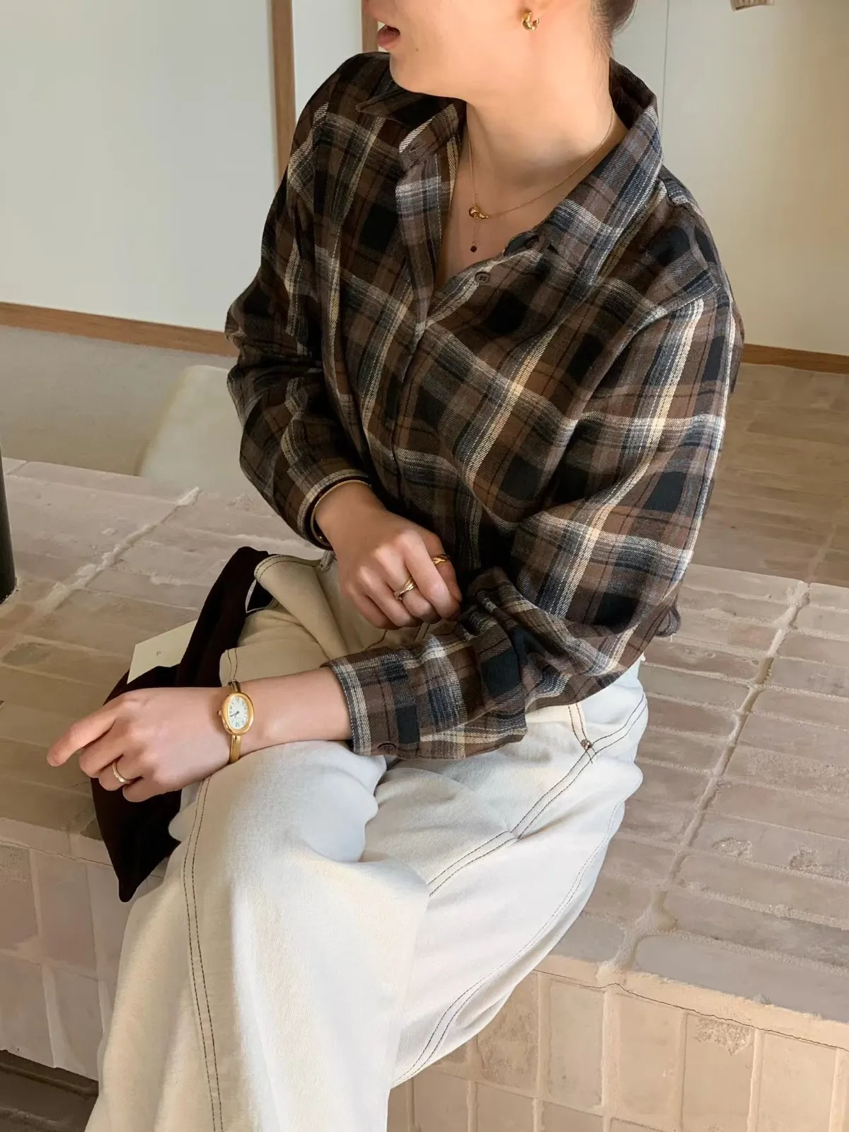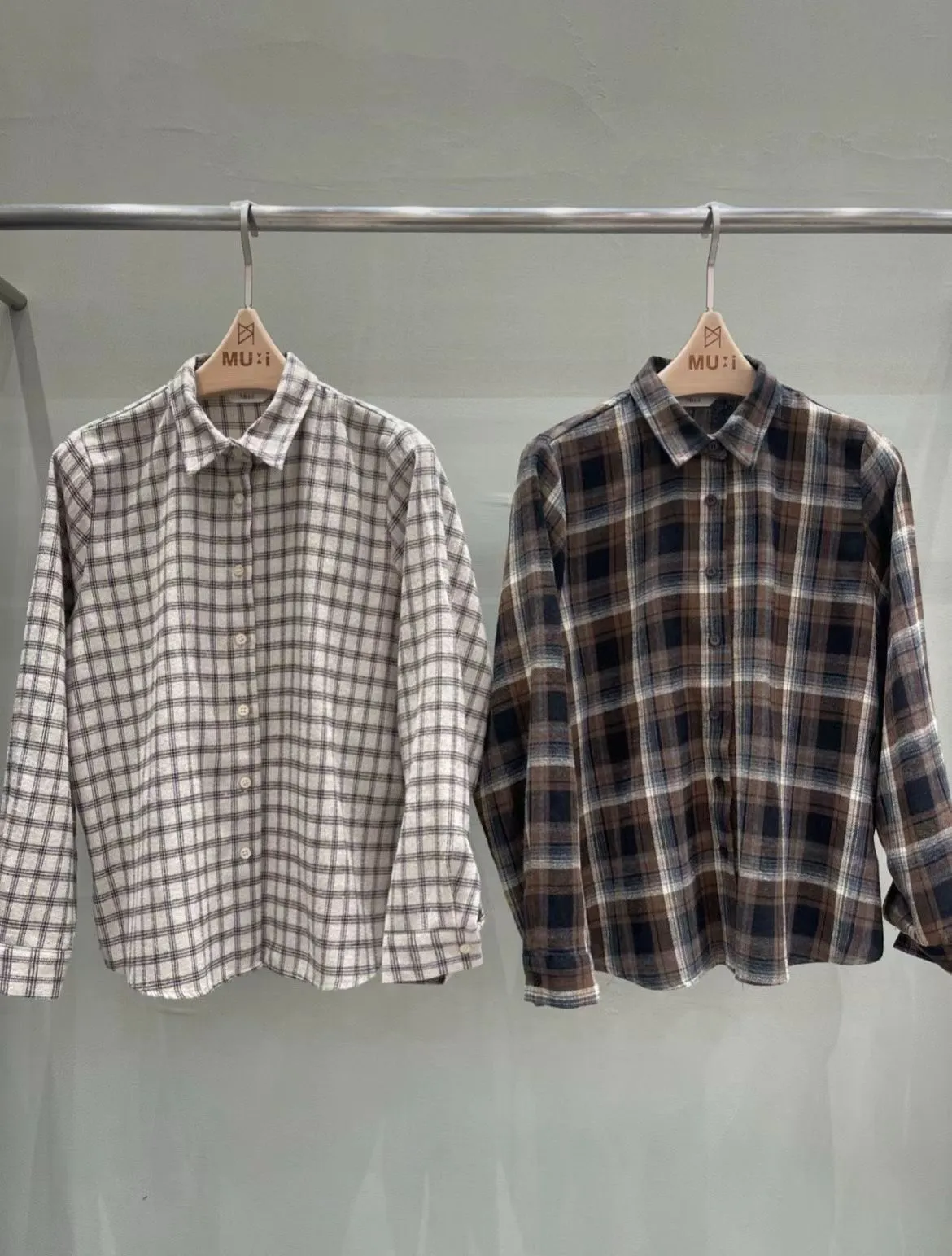 A63 1209氣質歐膩家側開衩格紋襯衫2色
