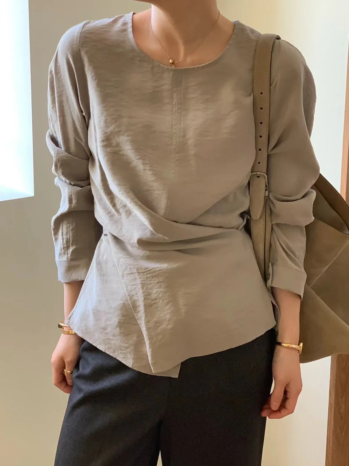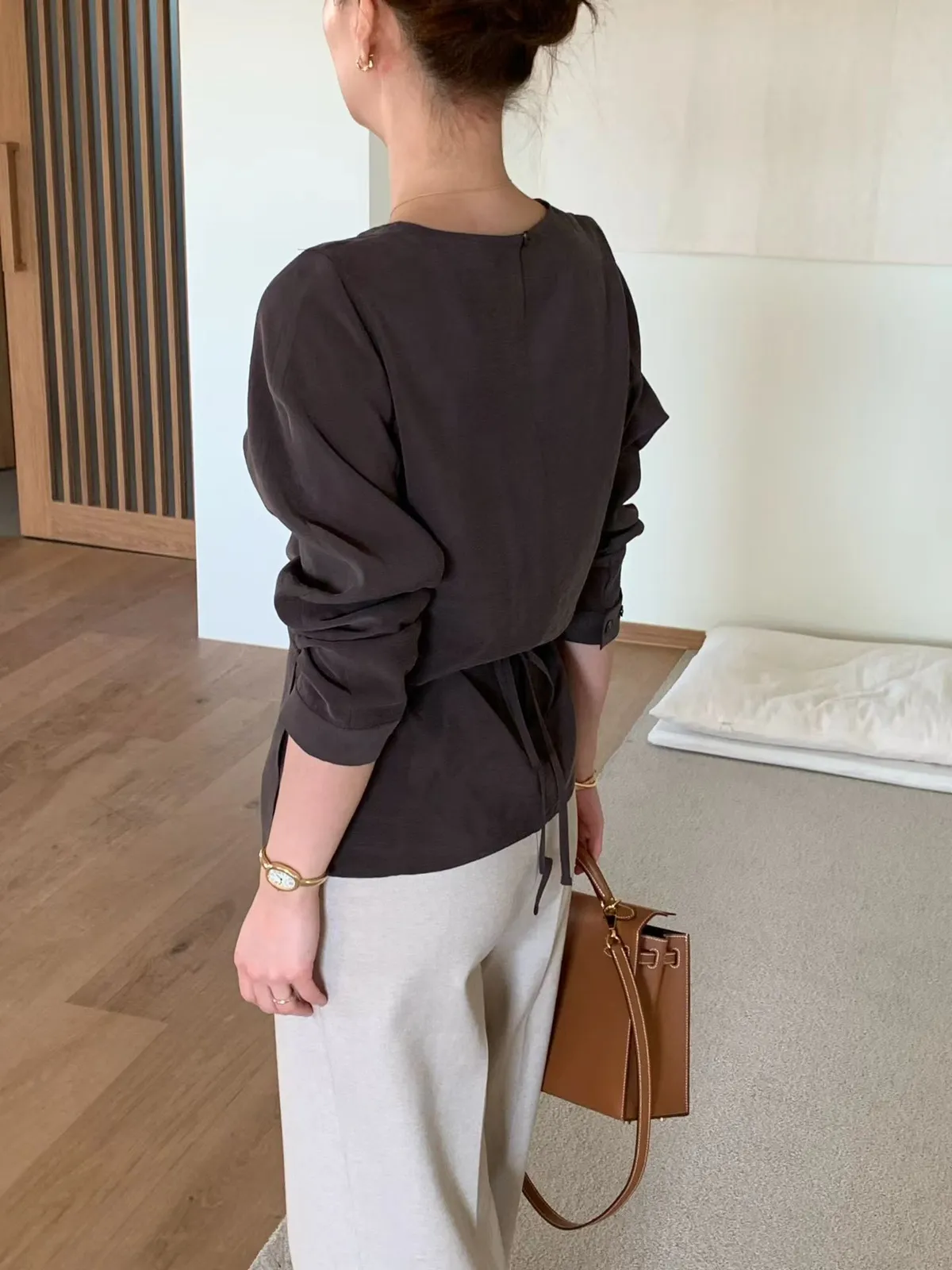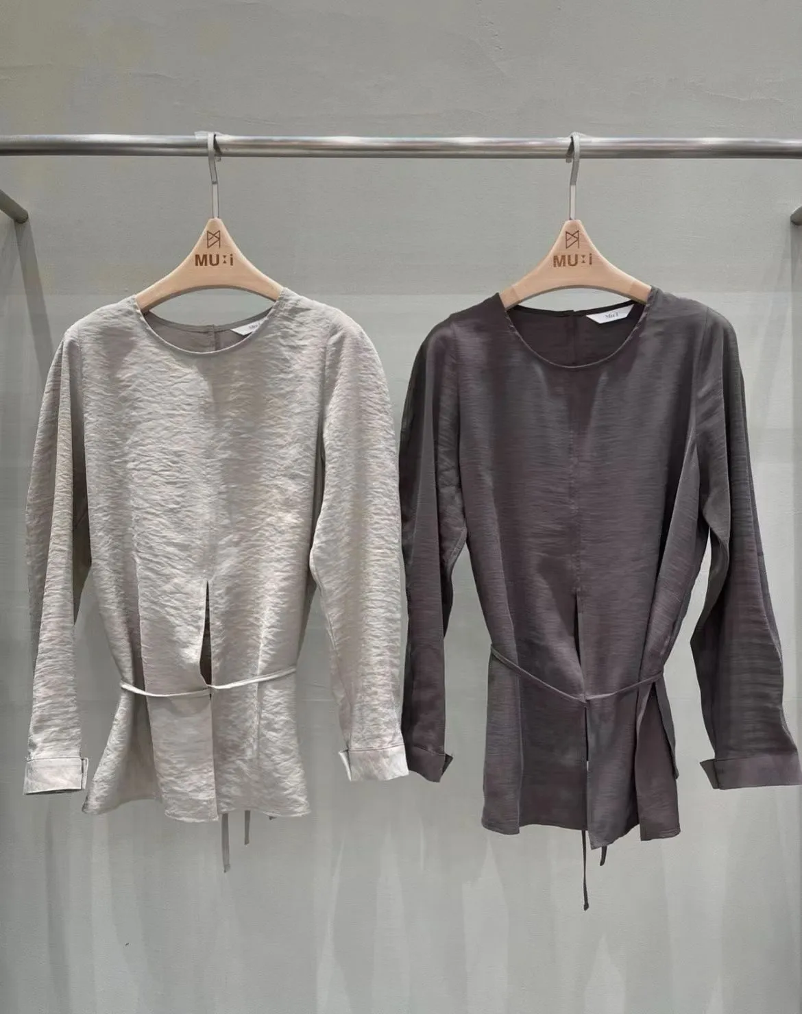 A65 1209氣質歐膩家開衩綁帶圓領雪紡上衣2色