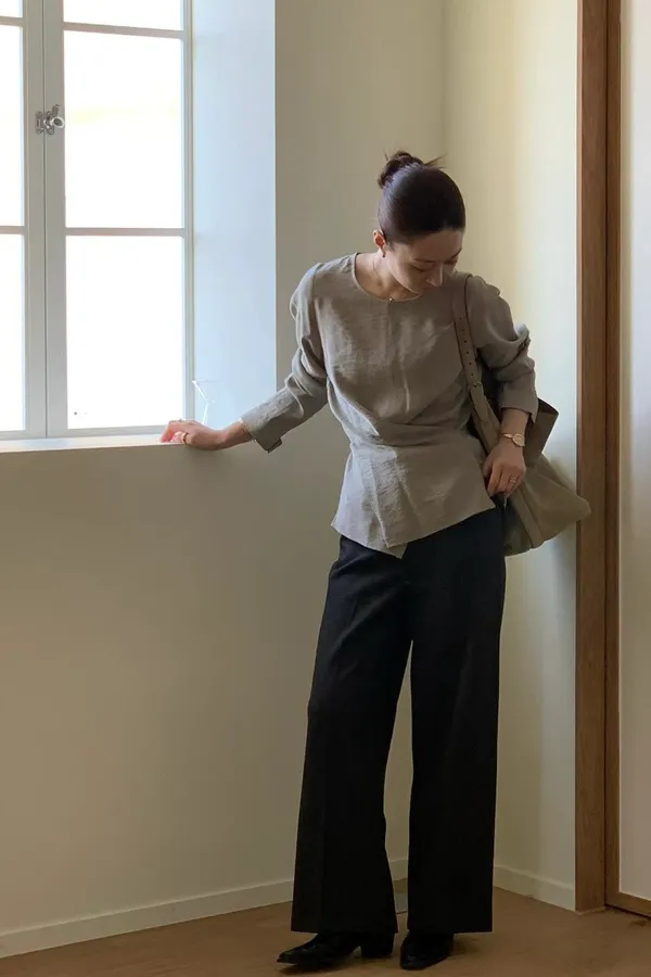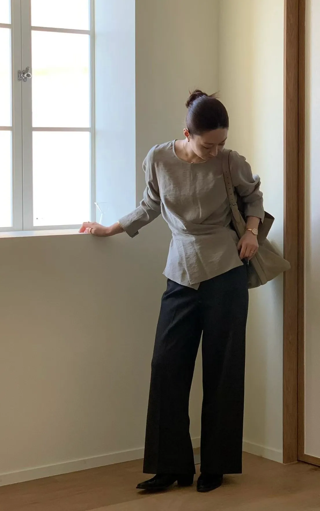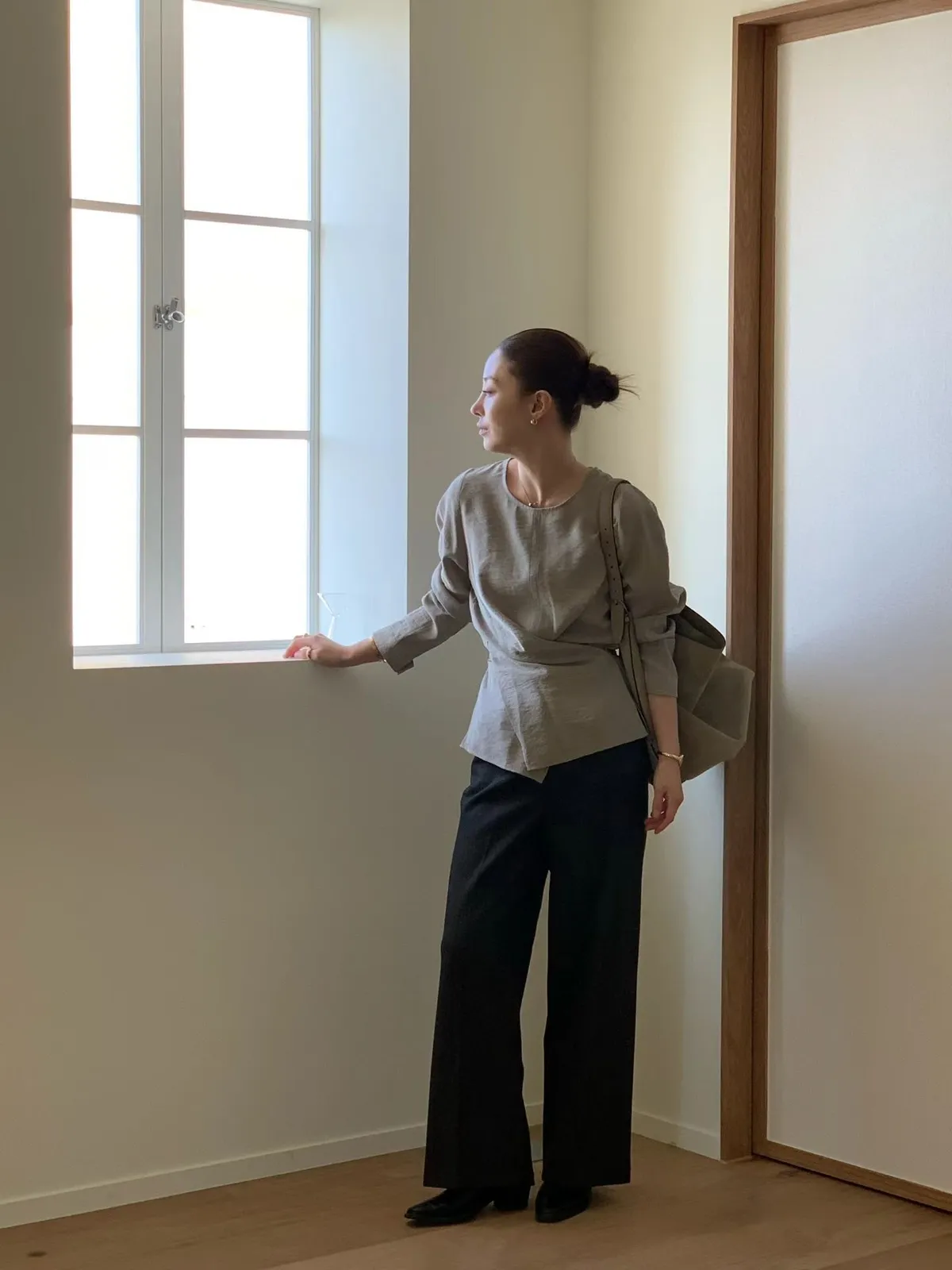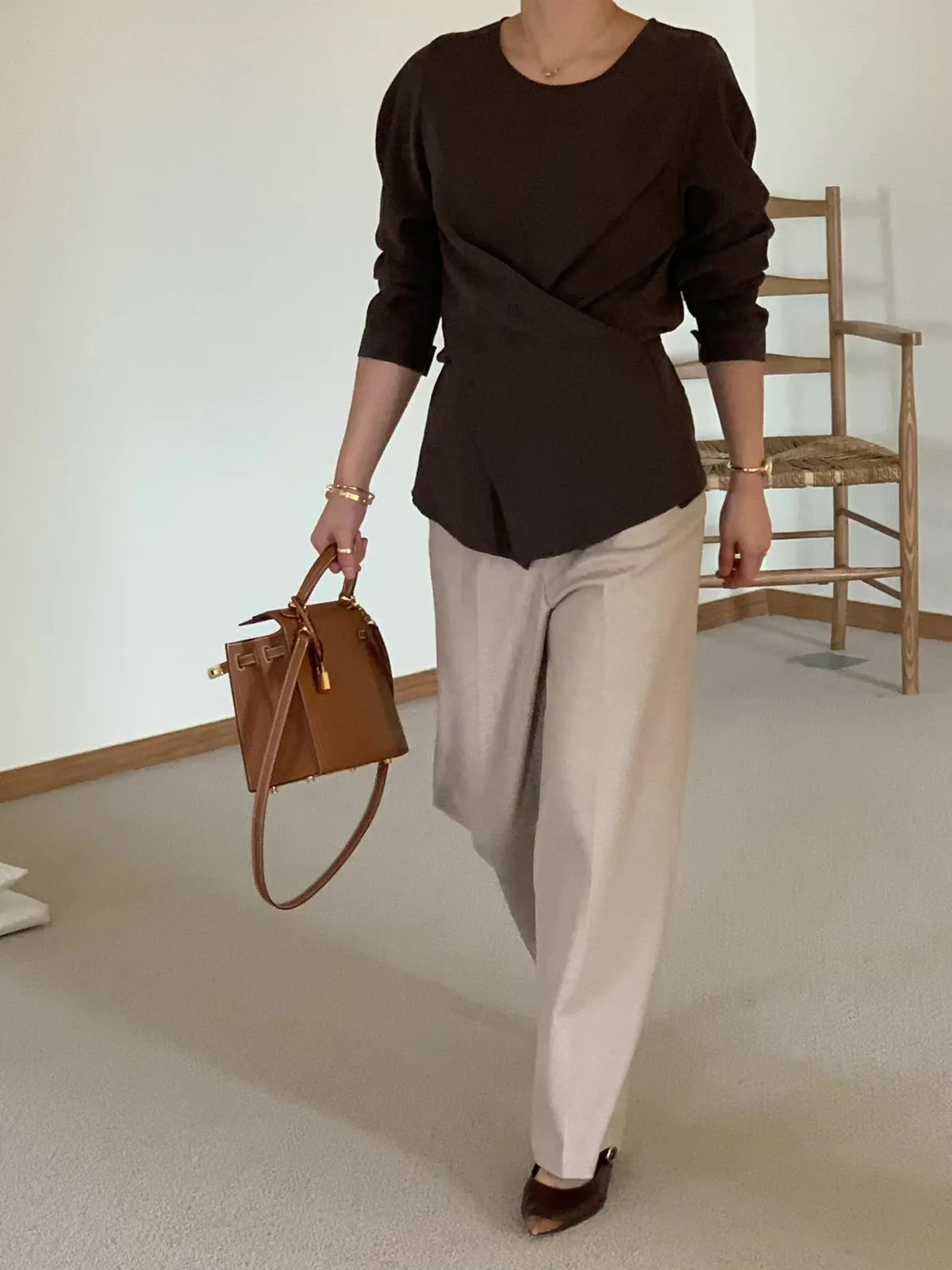 A65 1209氣質歐膩家開衩綁帶圓領雪紡上衣2色