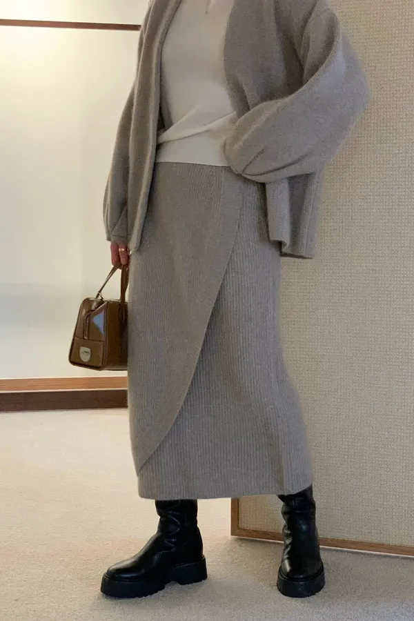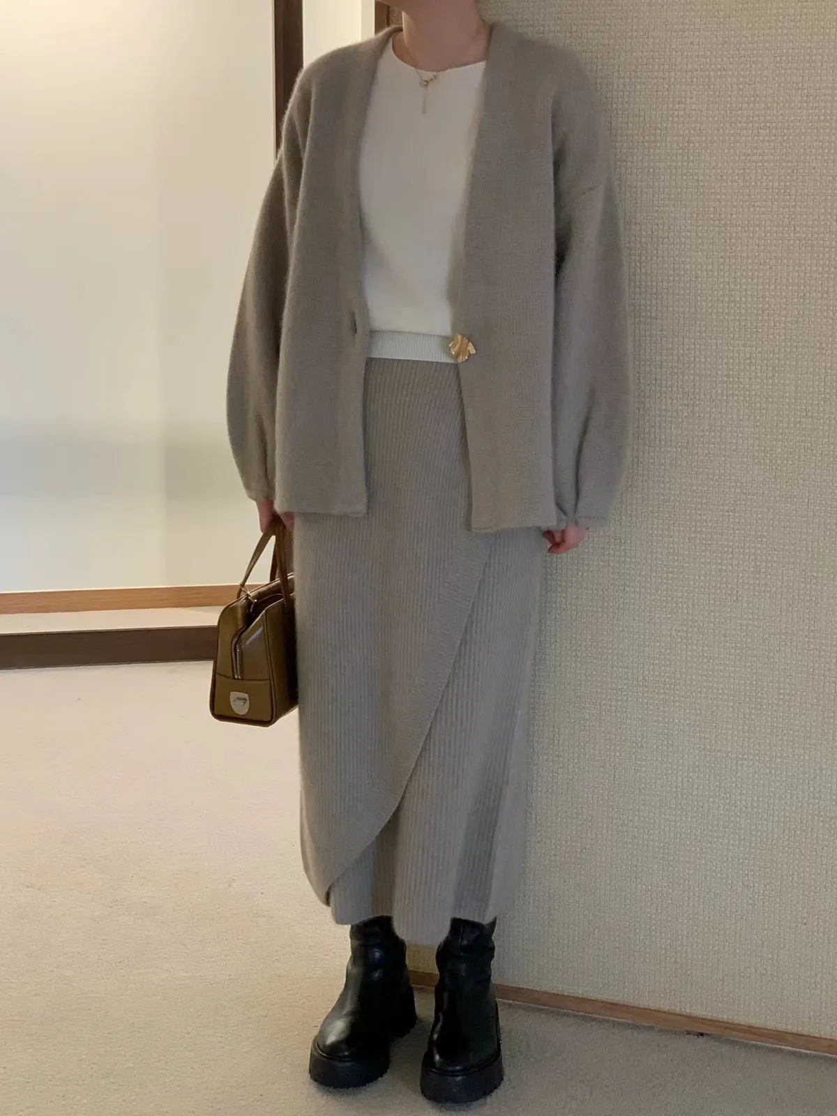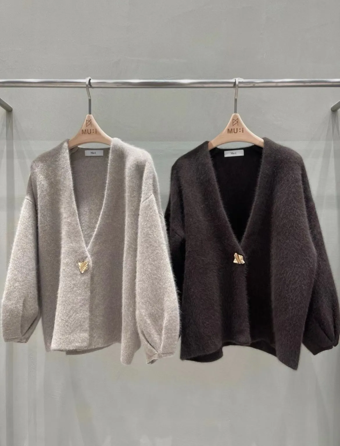 A69 1209氣質歐膩家單釦V領羊毛混狐狸毛混浣熊毛針織外套2色