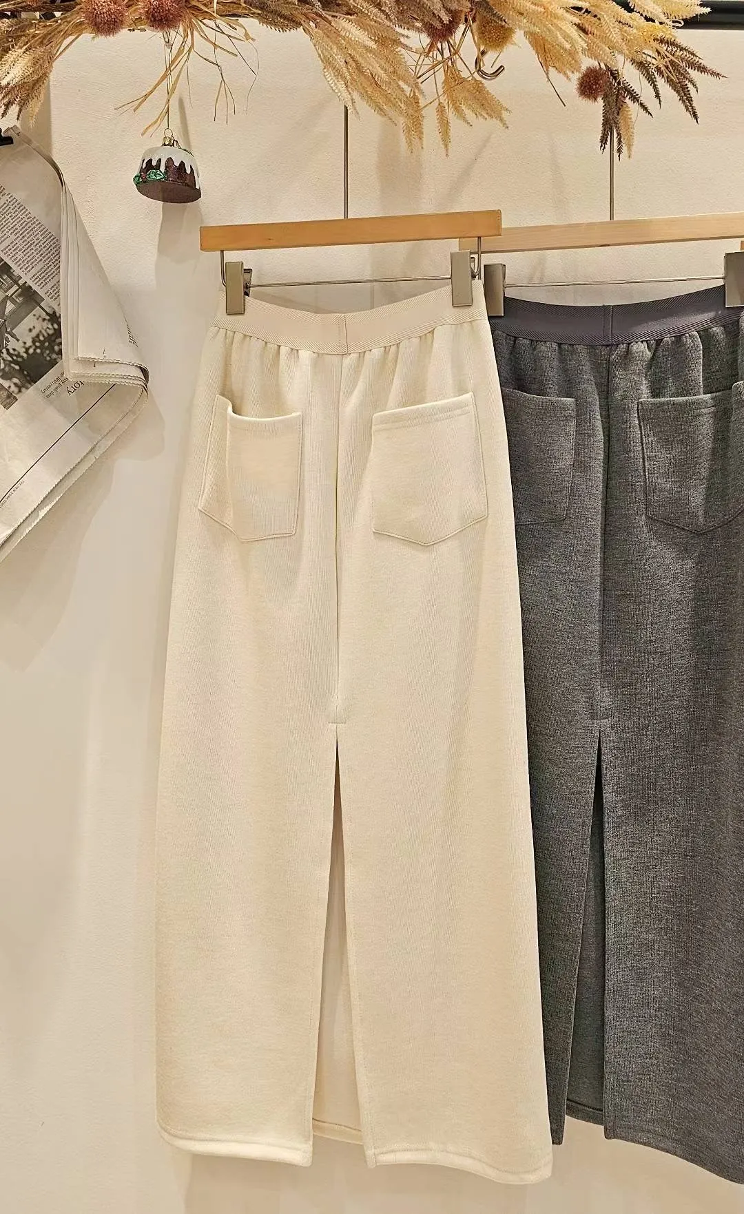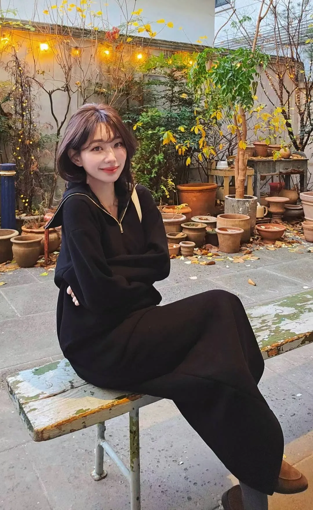 高質感細緻羅馬布面料,5%羊毛混仿,完全親膚柔軟不會刺癢,中等厚度布料~。上衣拉鍊設計可以穿成高領或是大翻領,前後的兩側都有做腰線剪裁,裙子也是Hline,修身顯瘦設計