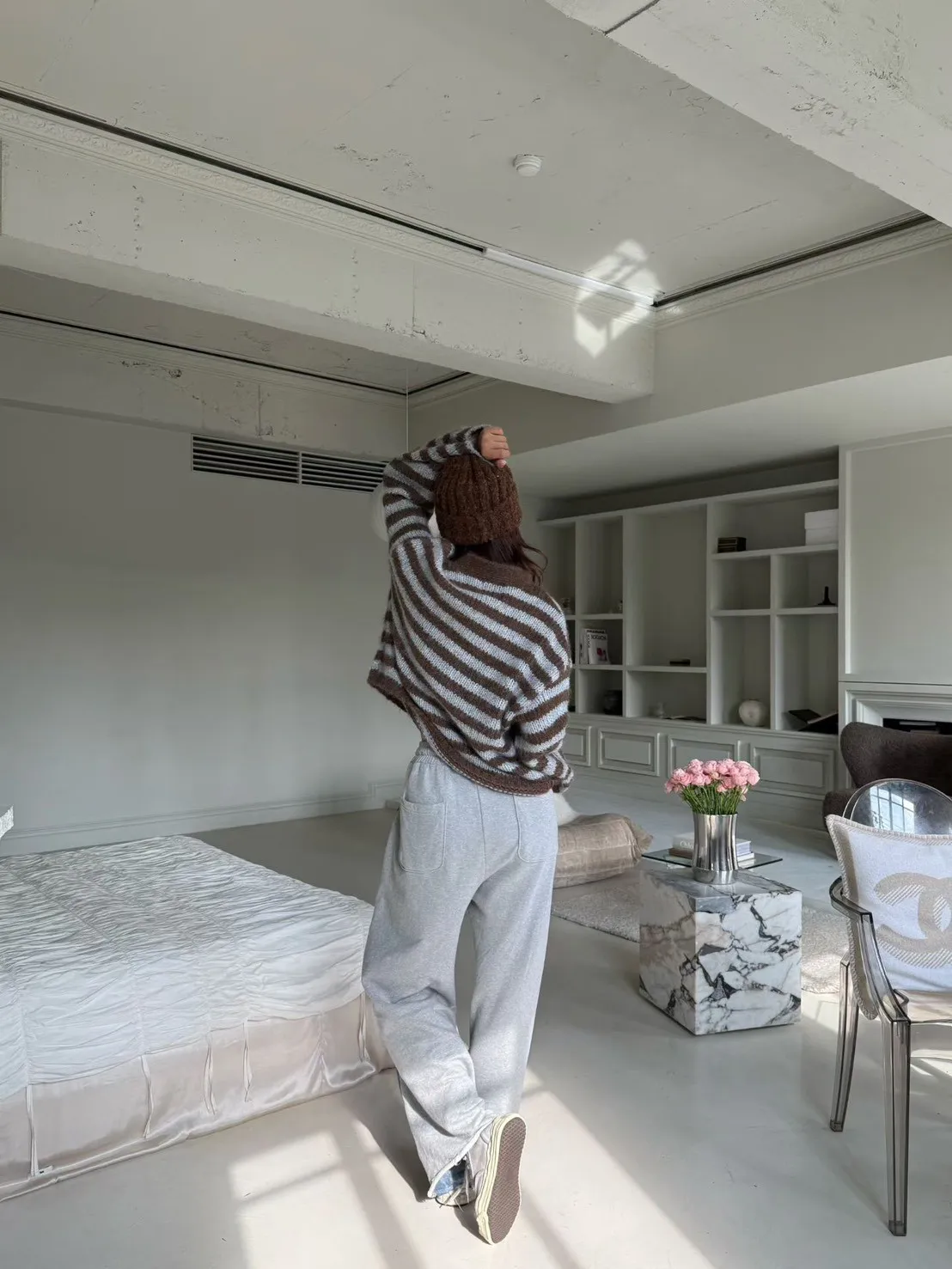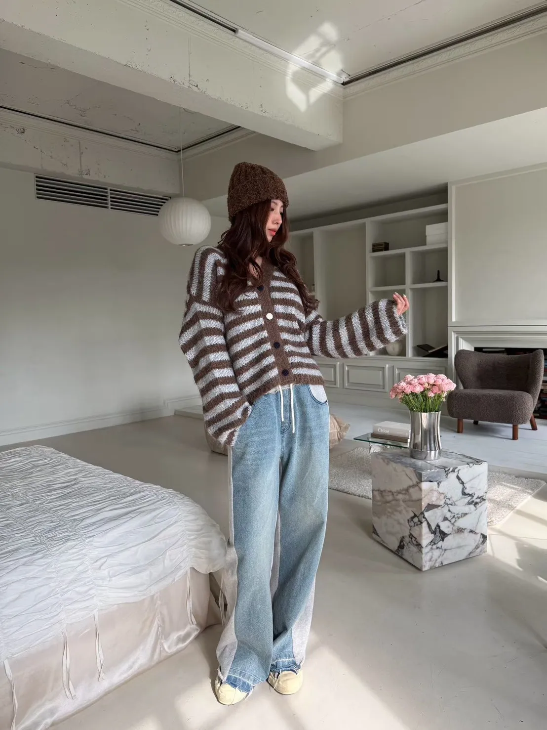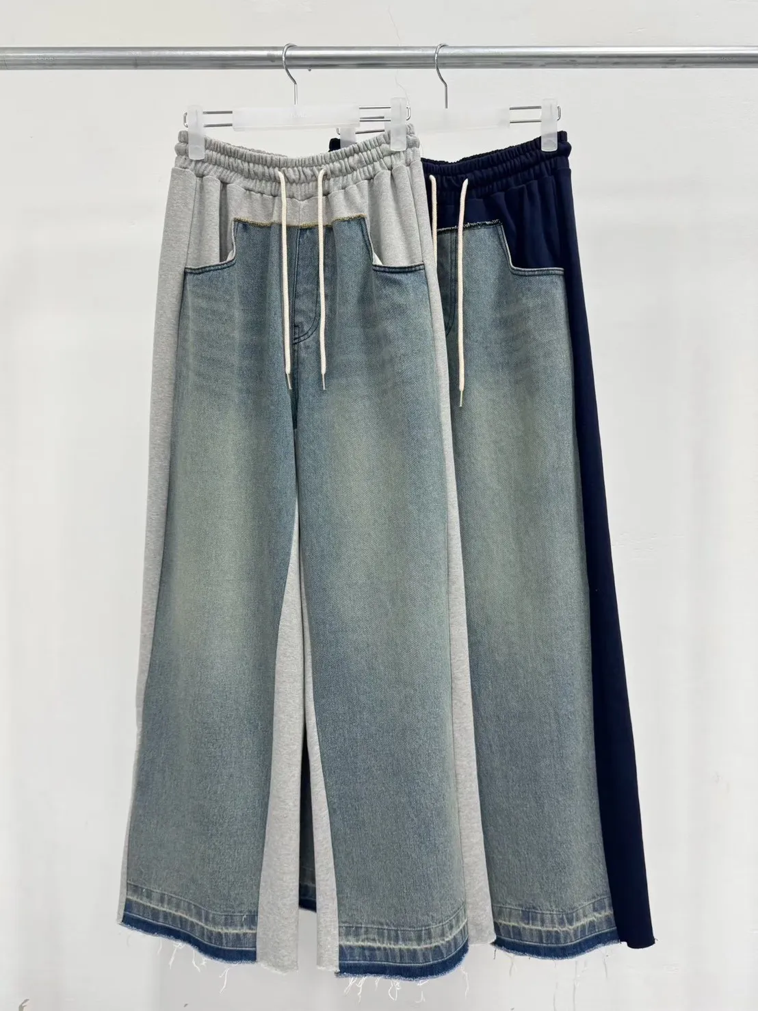 A17 1211素希歐膩家抽繩綁帶拼接牛仔棉褲