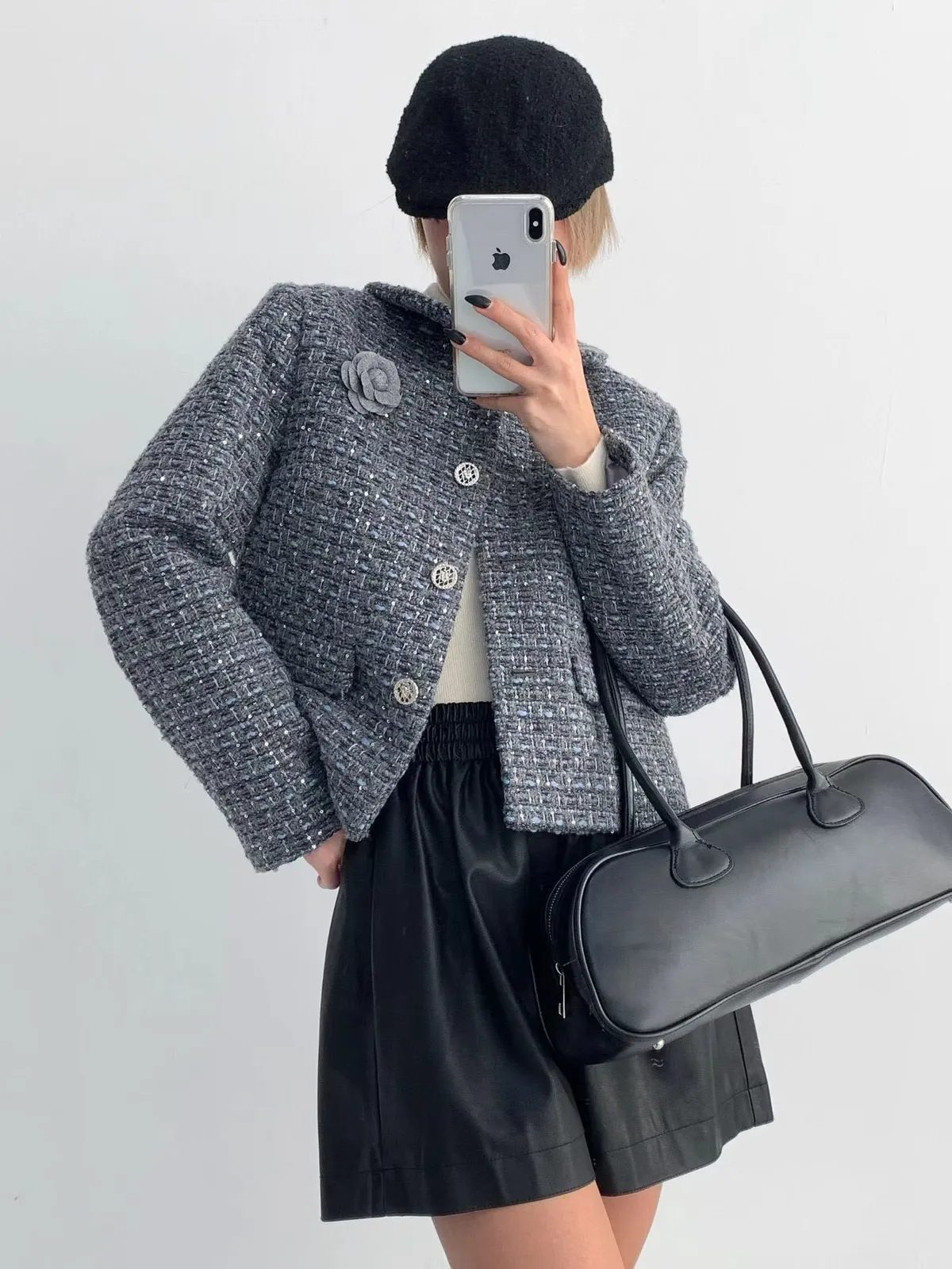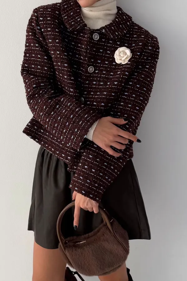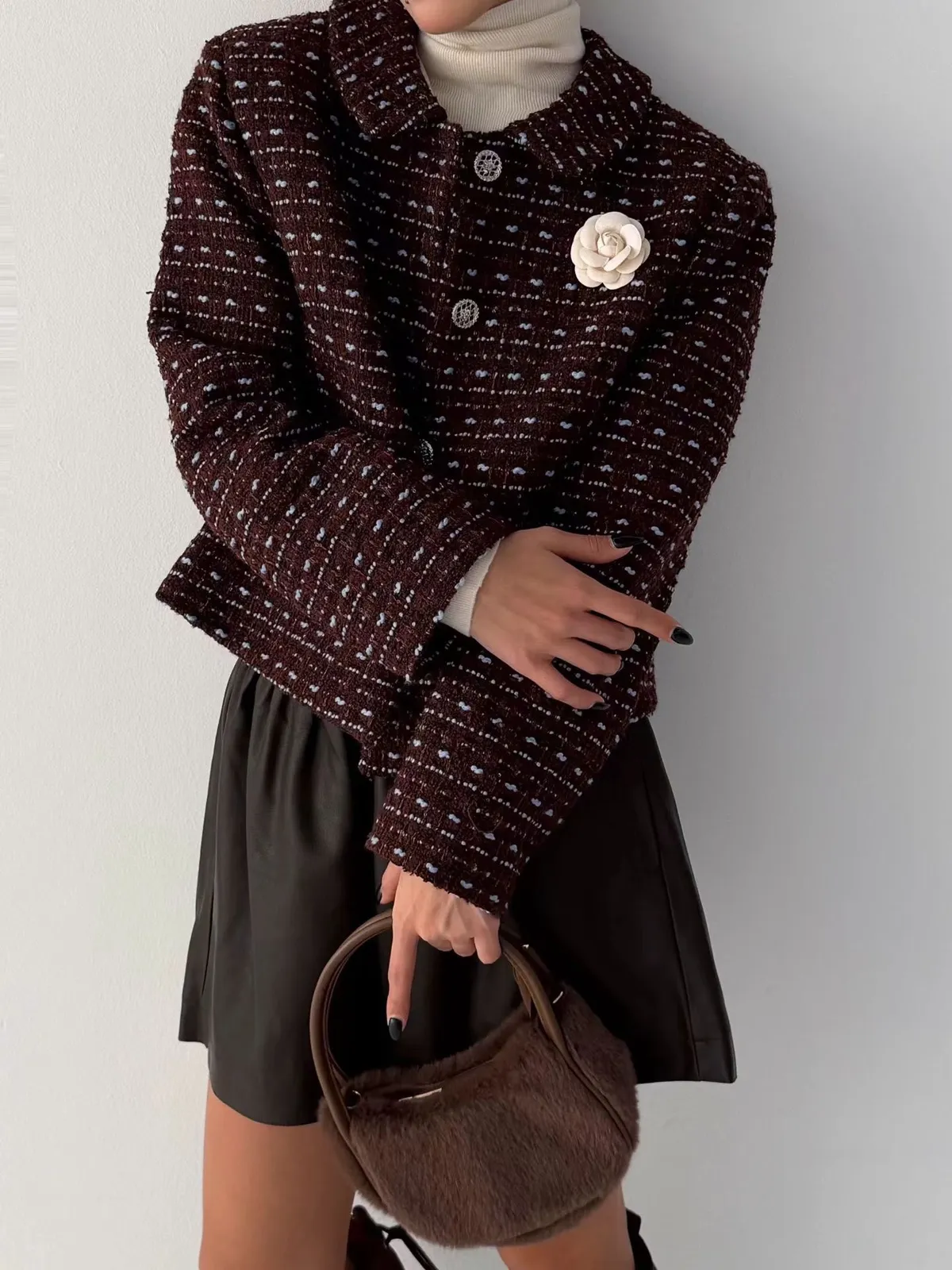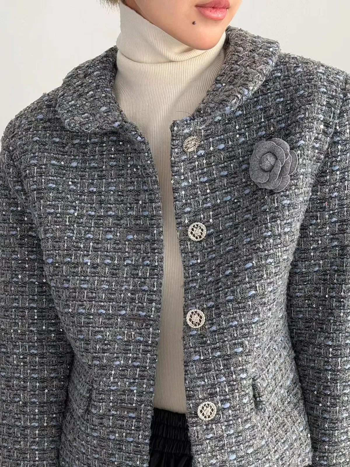 C11(限量特)高檔小香有領端莊外套含山茶花胸針
