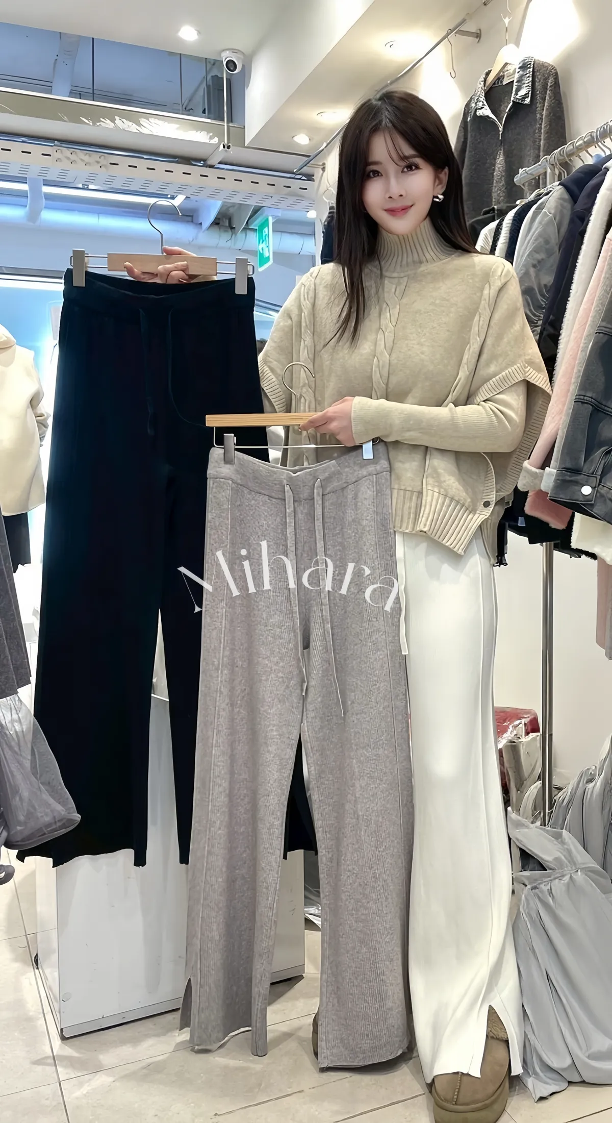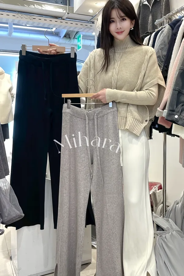 A23 1214CP外套家前開衩抽繩綁帶車線直筒褲3色