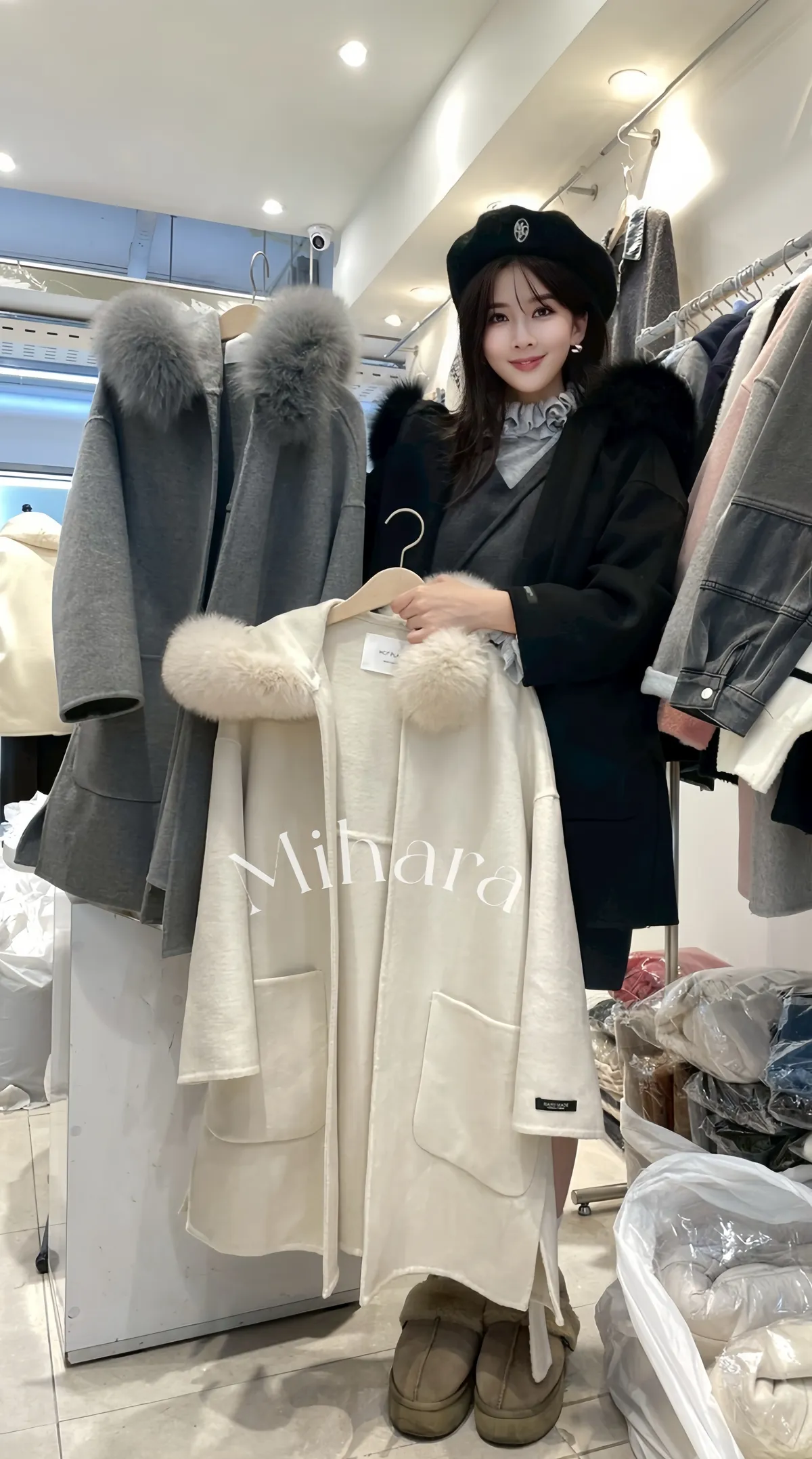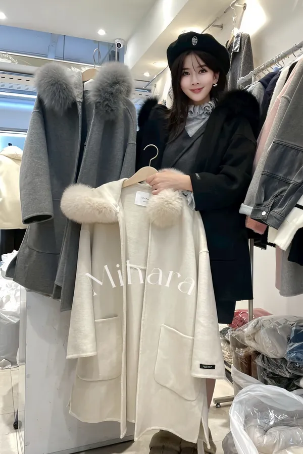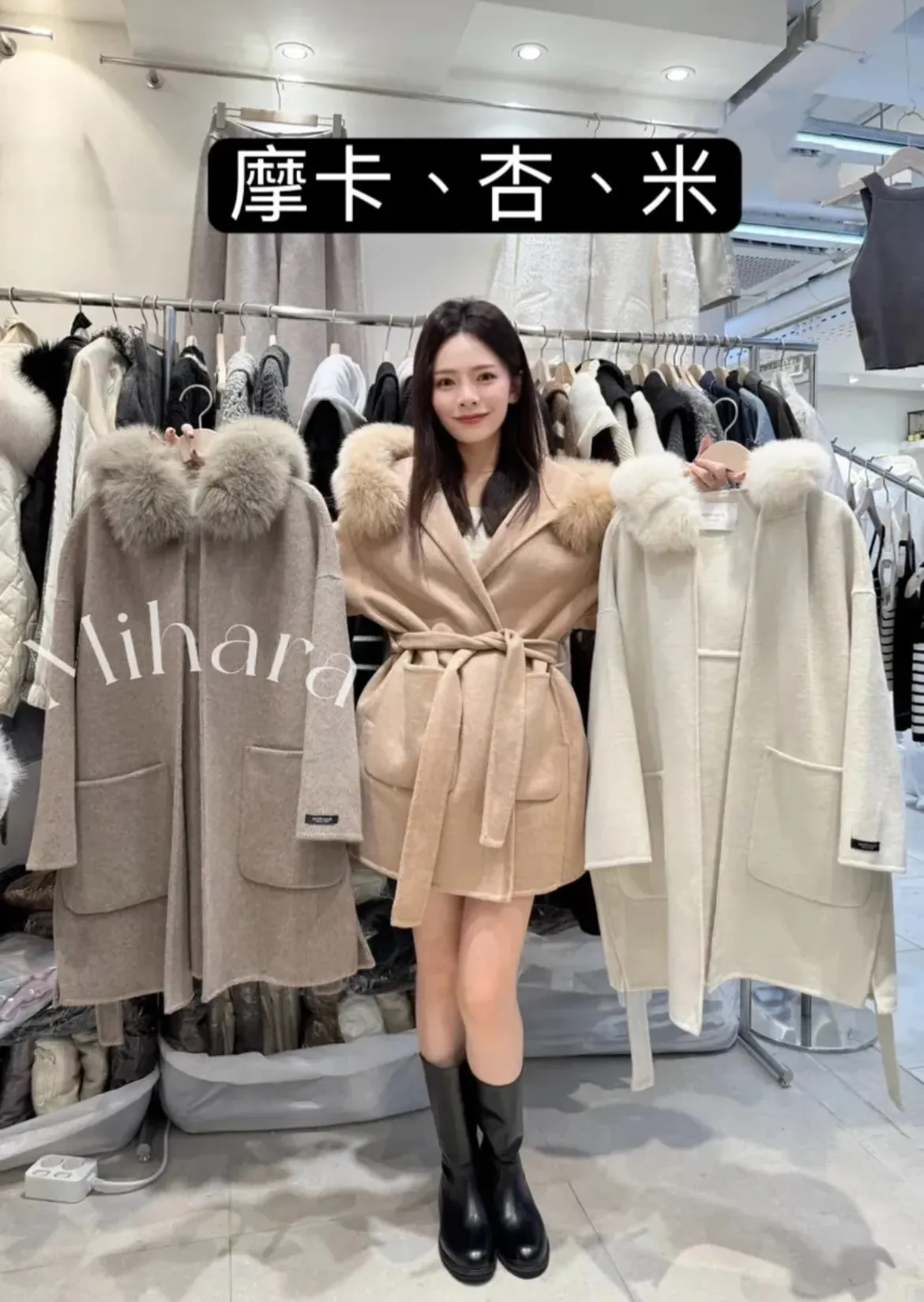 A27 1214CP外套家毛毛連帽開襟羊毛100%短版大衣外套附綁帶5色(A61 1113
