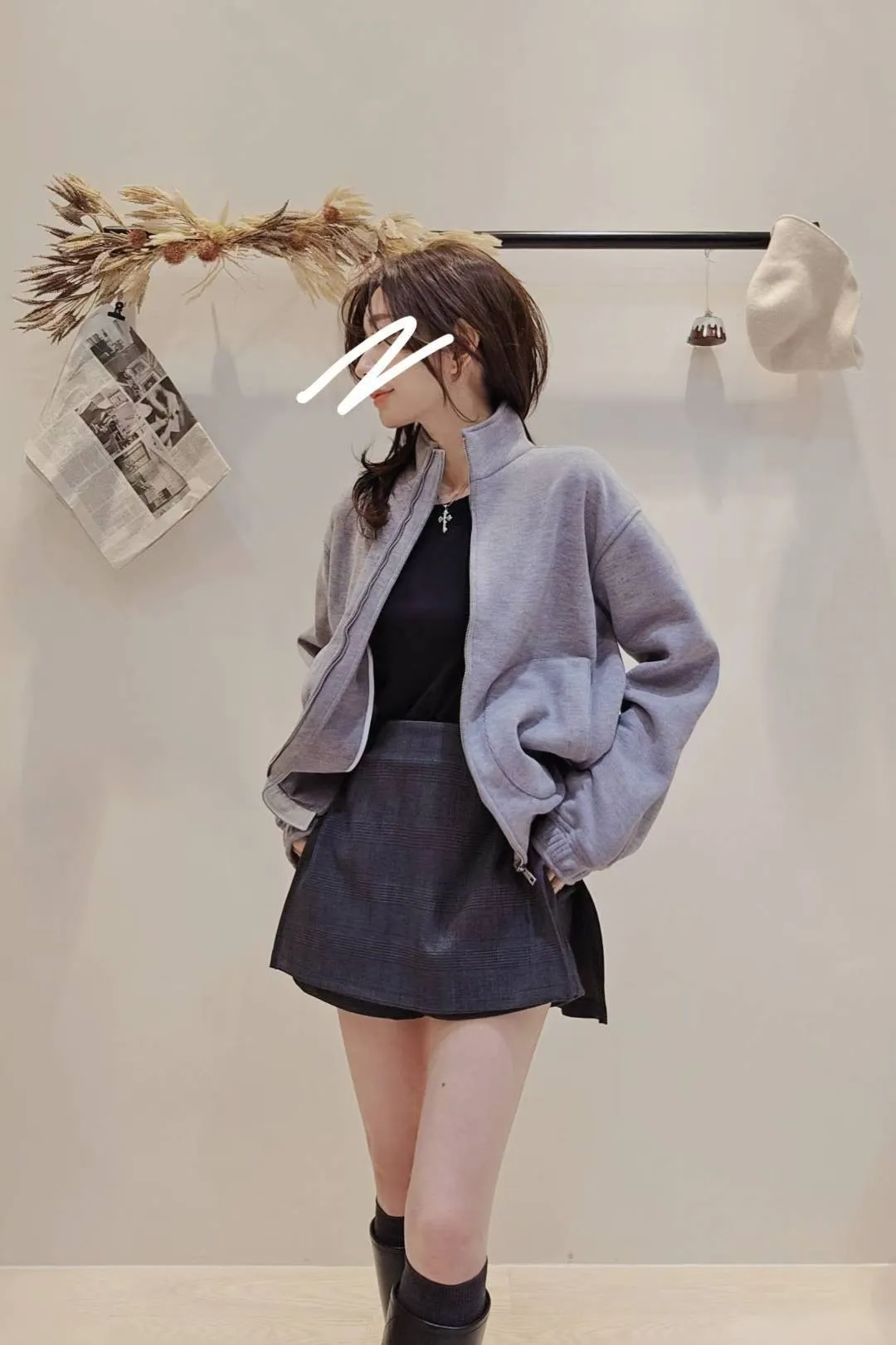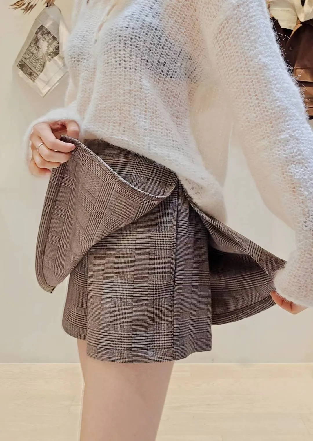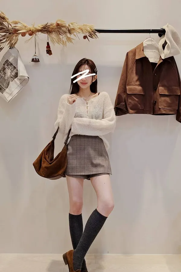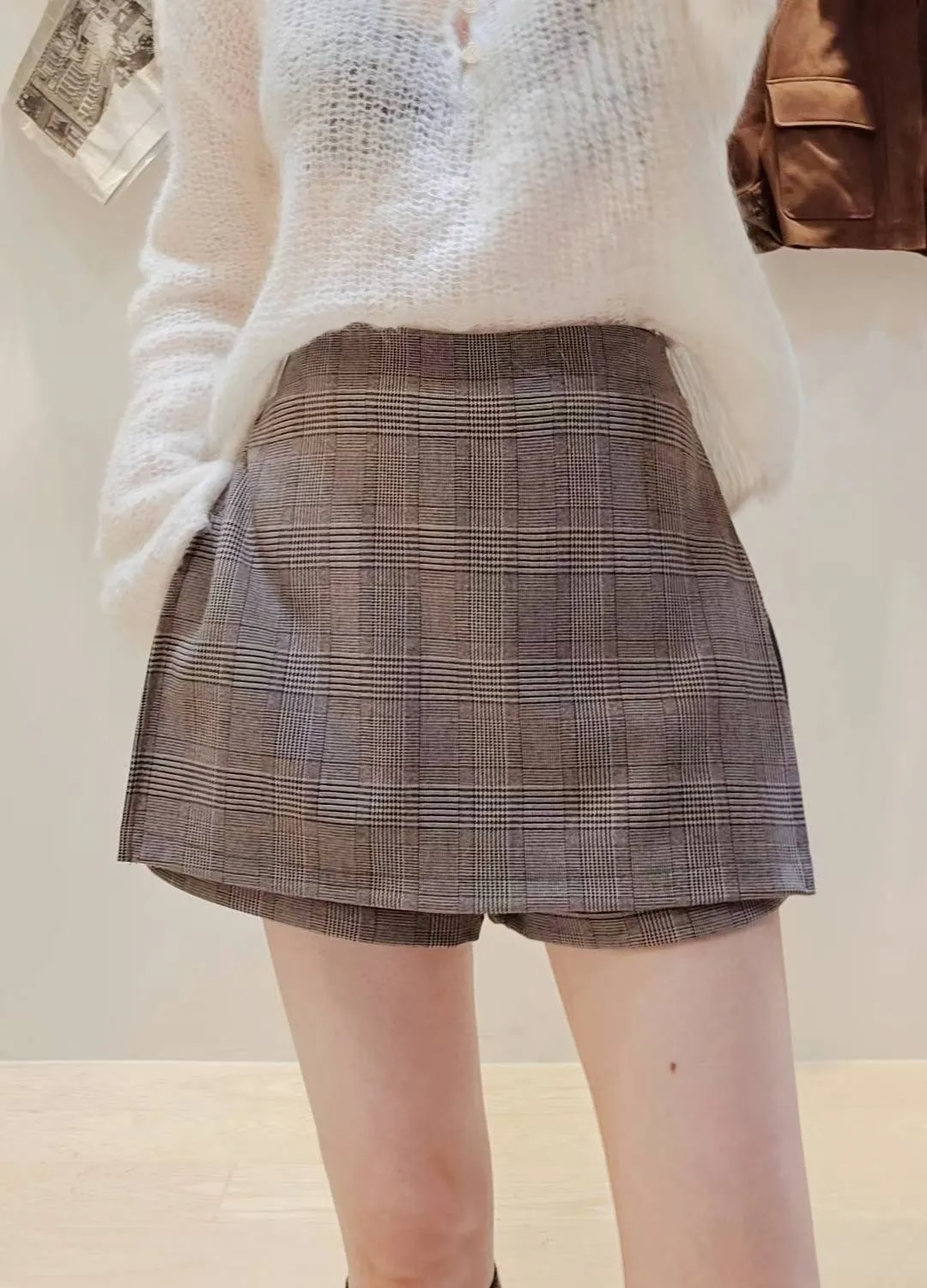 冬天還是要露美腿呀😍😎~,穿長靴或是搭配褲襪和皮鞋都超時髦的一款小褲裙~上身可以搭配寬鬆毛衣或是大學衛衣都好看🩶🖤