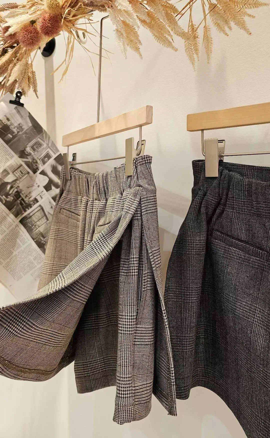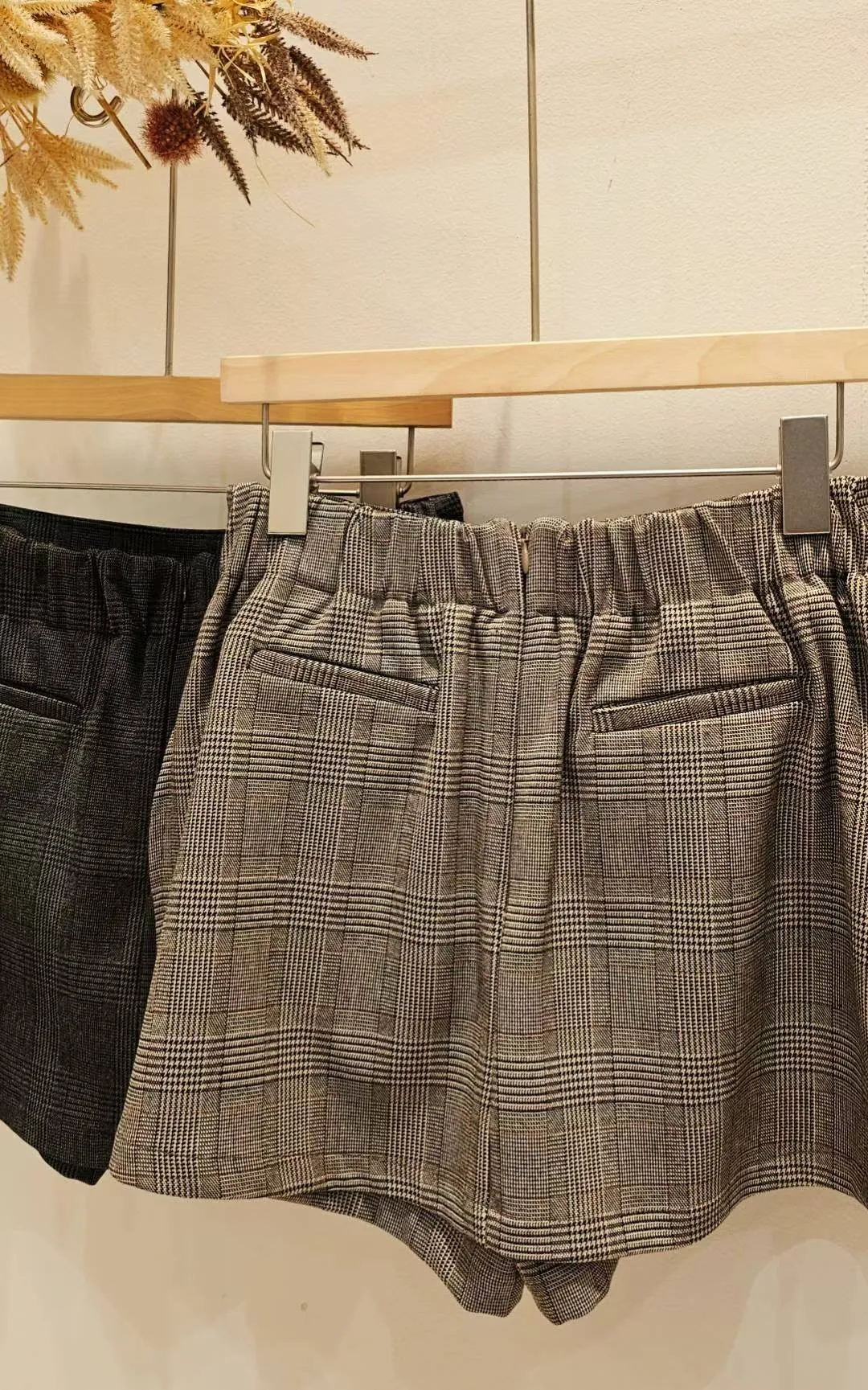 質感西裝材質面料,以這種布料來說算是中等厚度,千鳥格紋細緻耐看~