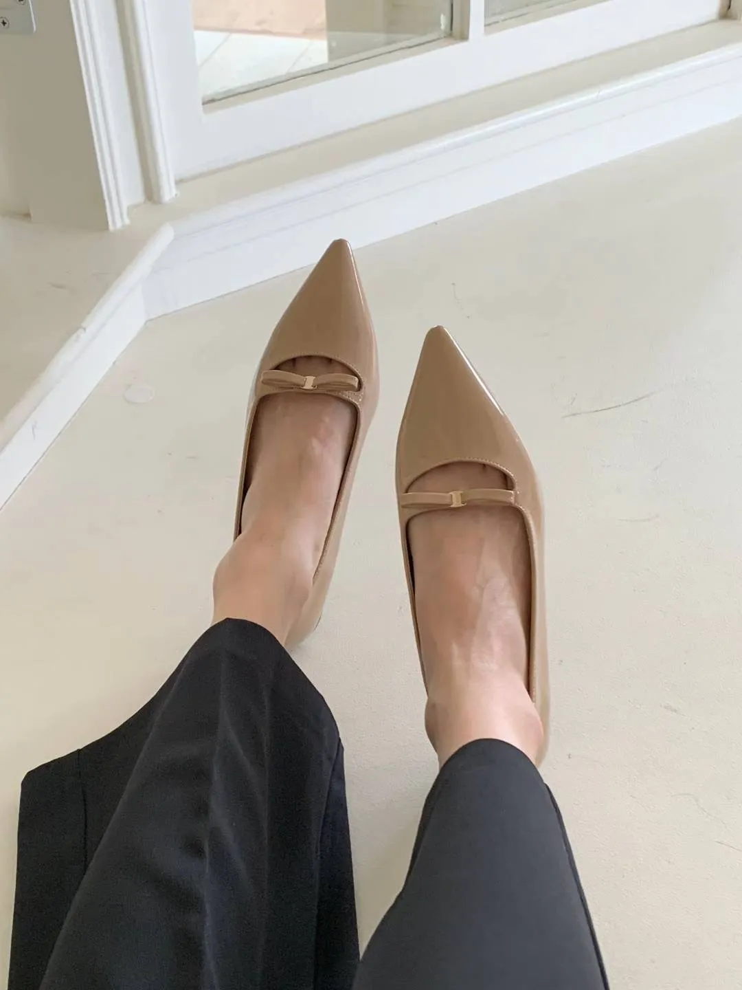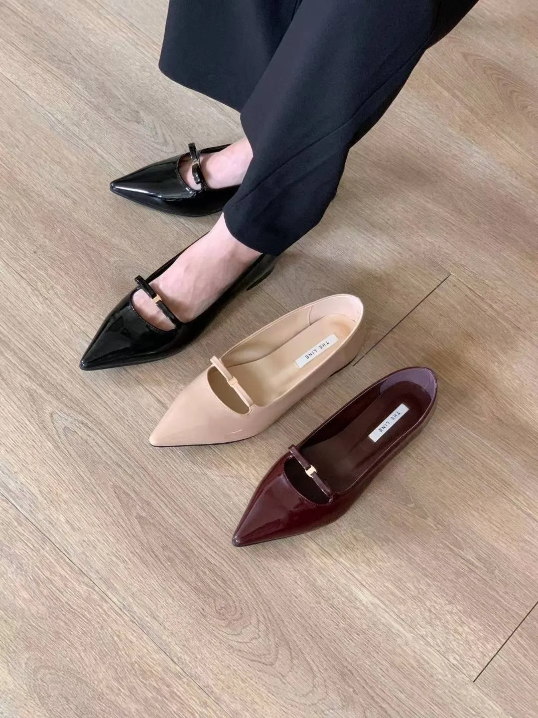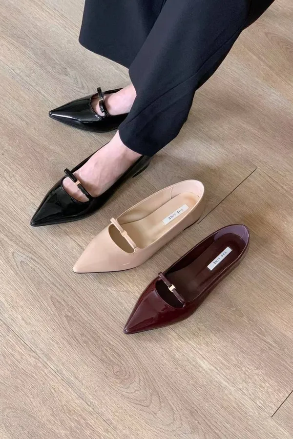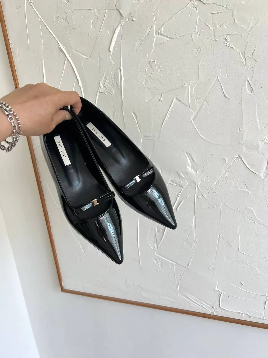 A1 1216漆皮亮面蝴蝶結尖頭平底鞋3色(230-250)3201
