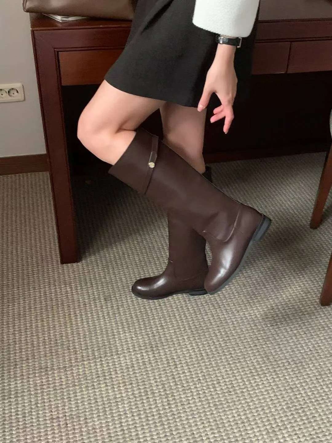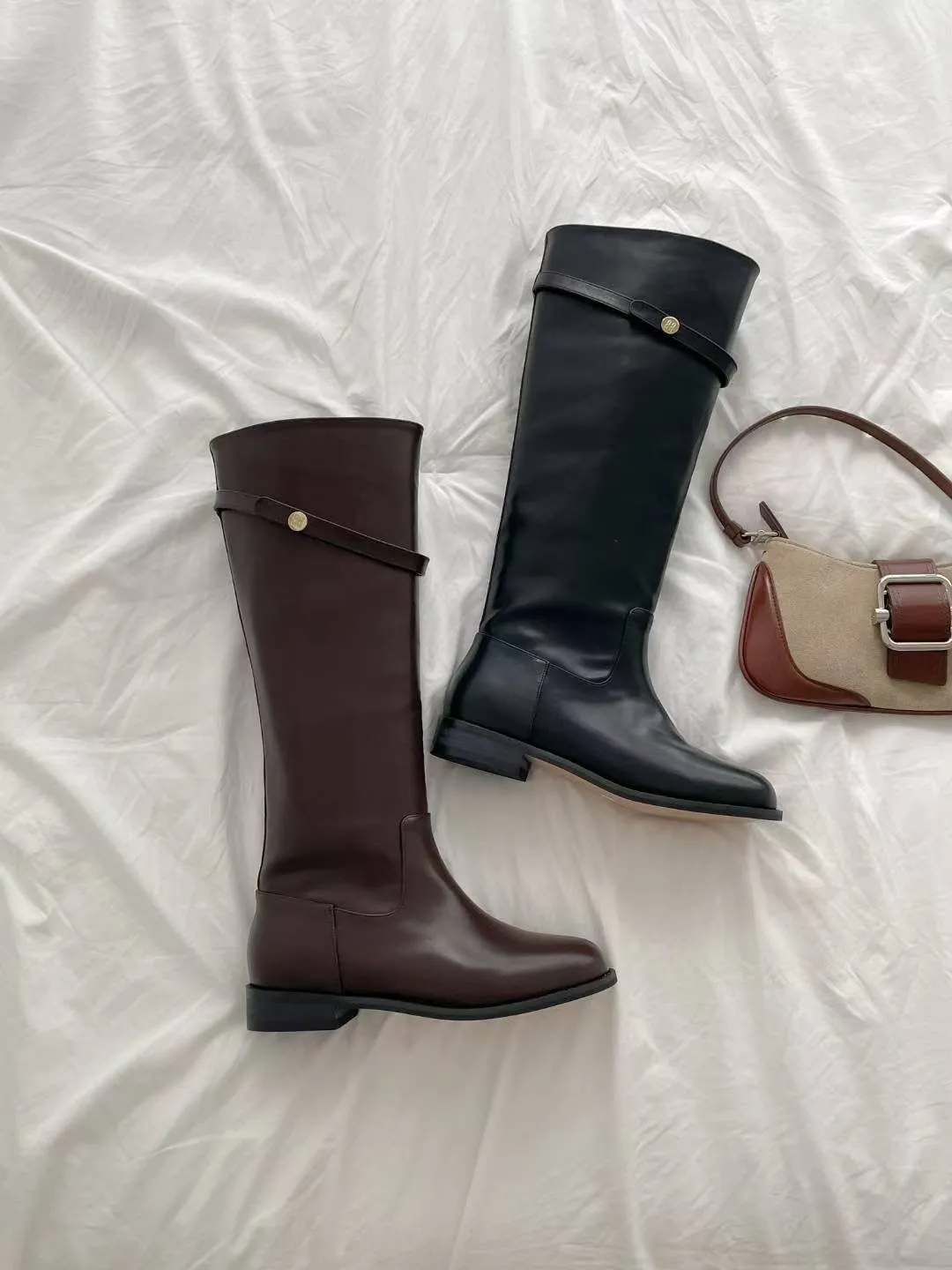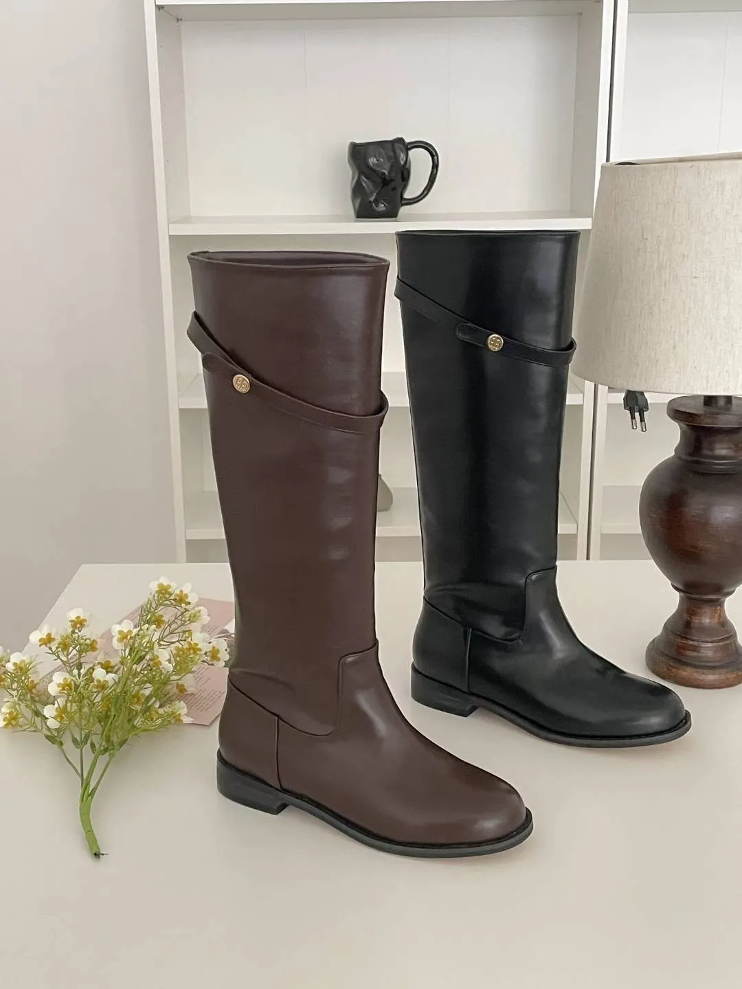 A10 1216釦環皮革圓頭高筒靴2色(230-250)2817