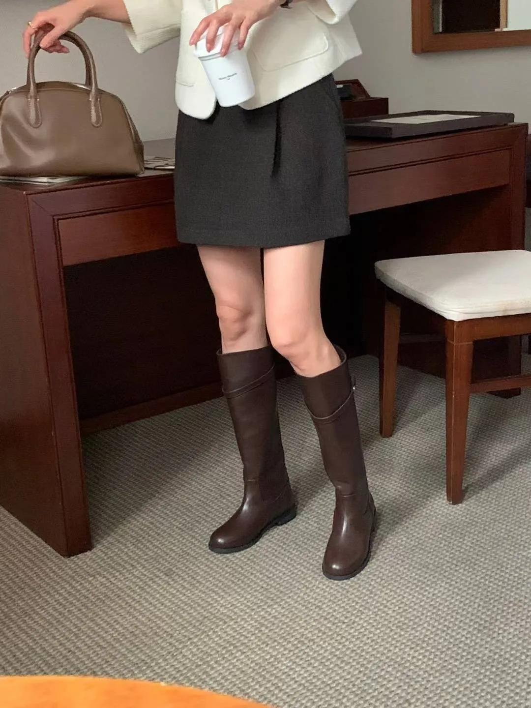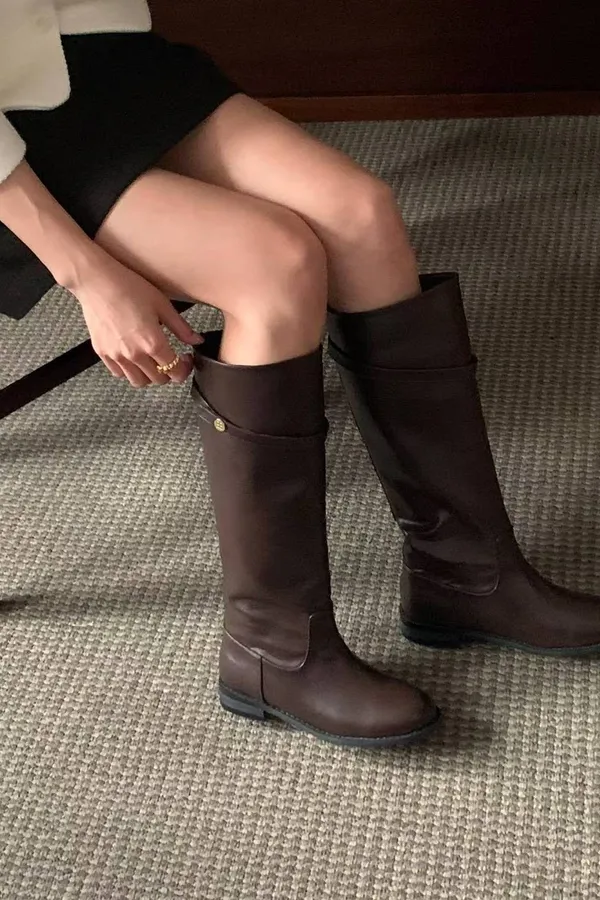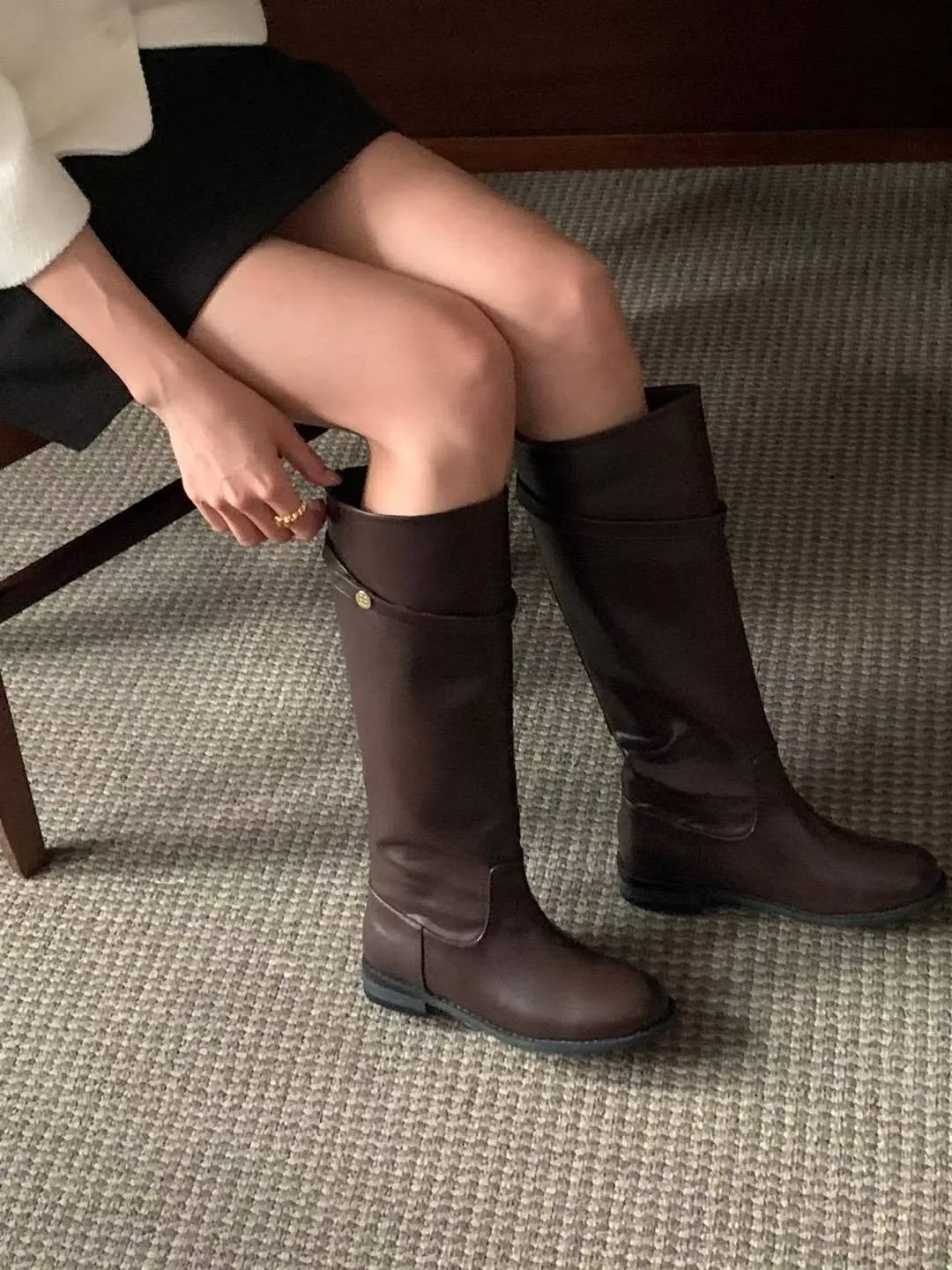 A10 1216釦環皮革圓頭高筒靴2色(230-250)2817