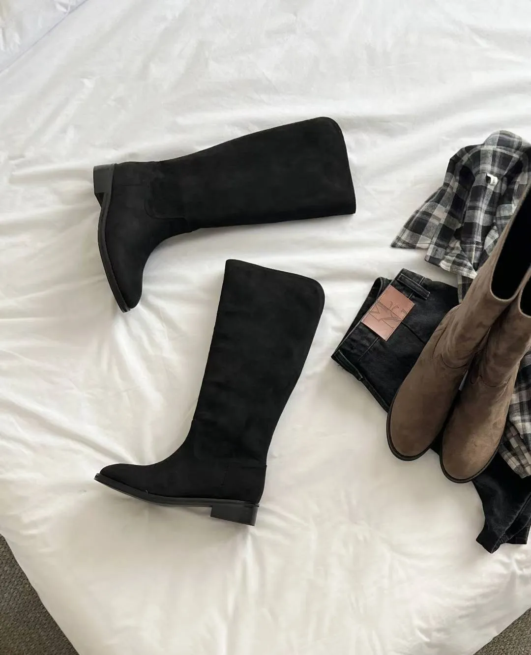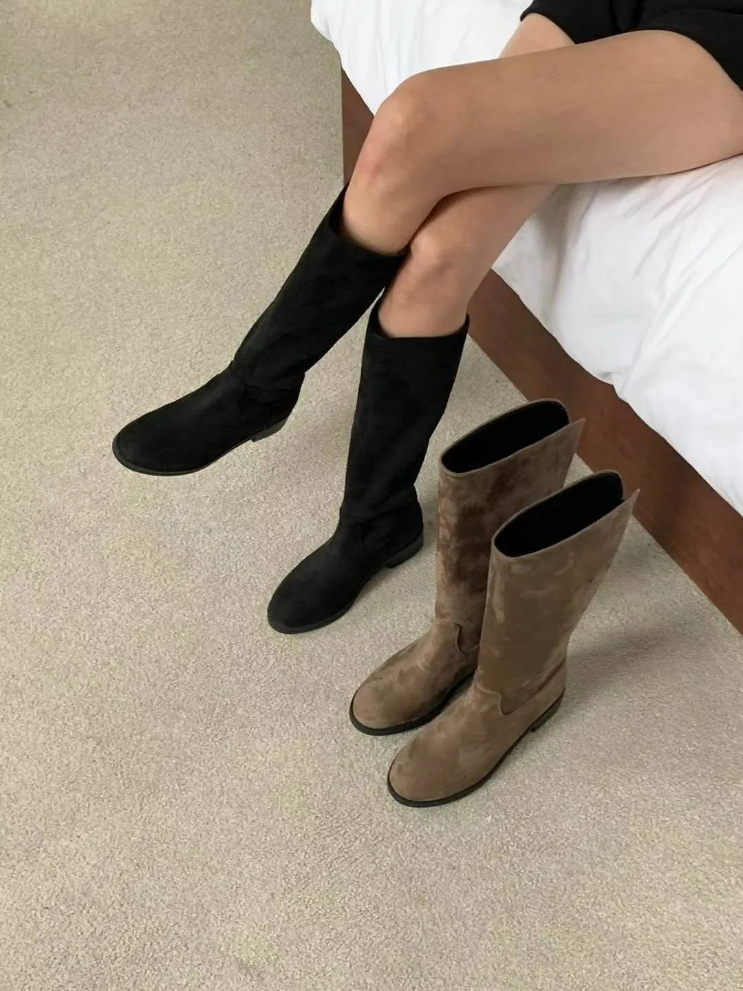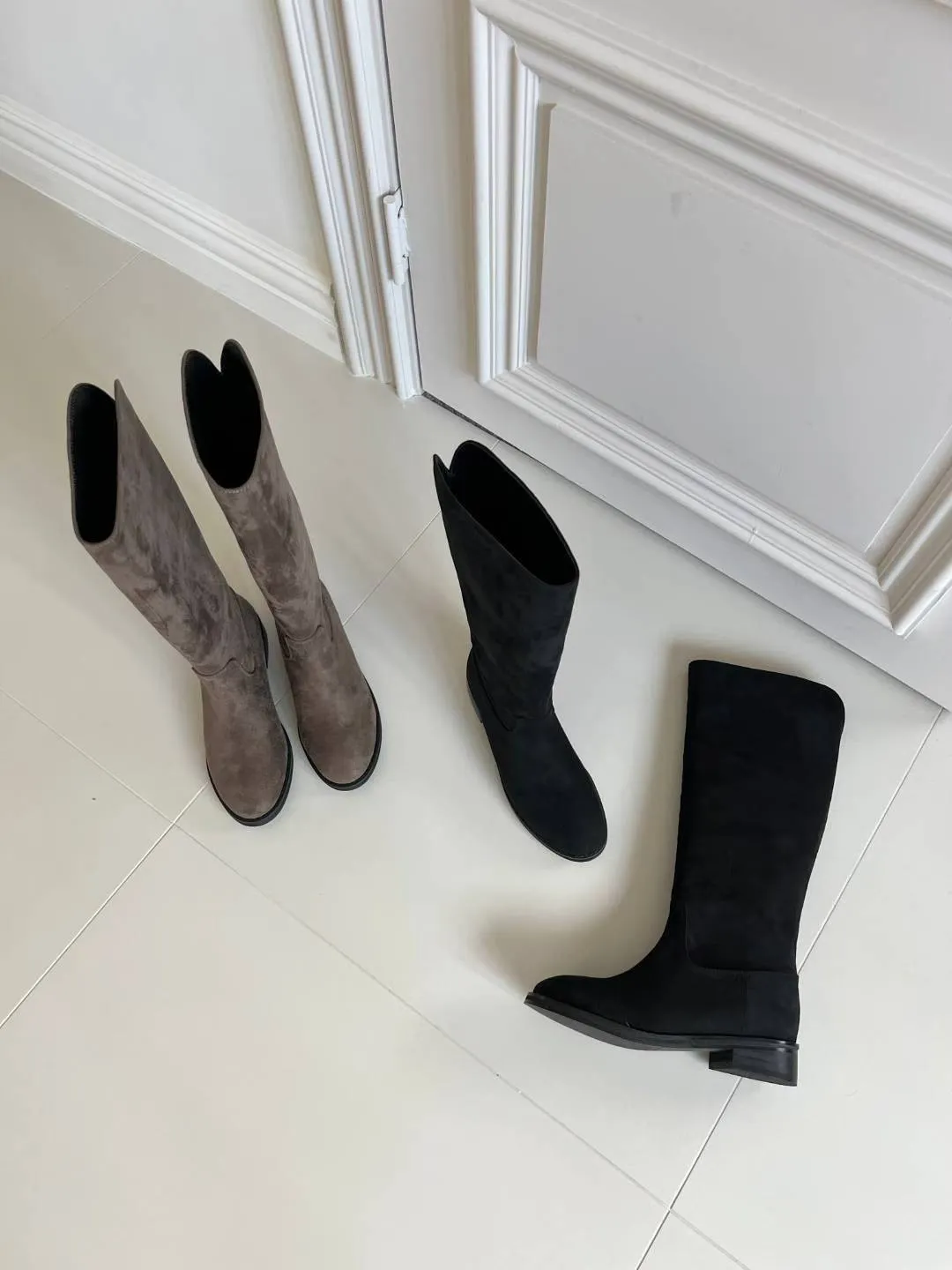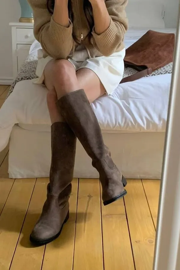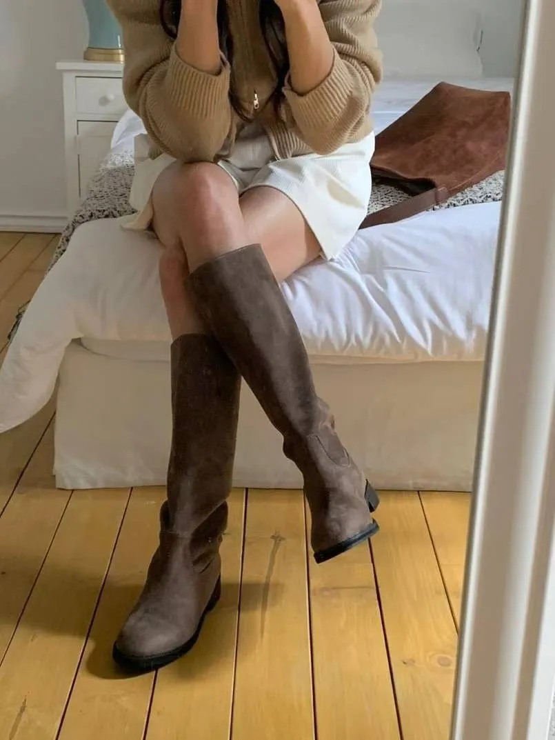 A11 1216後V型麂皮圓頭高筒靴2色(230-250)3019