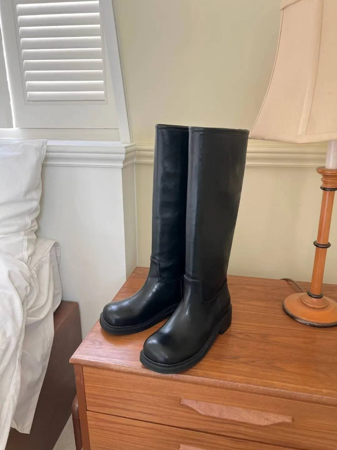 A16 1216亮面皮革方頭高筒靴(230-250)3217