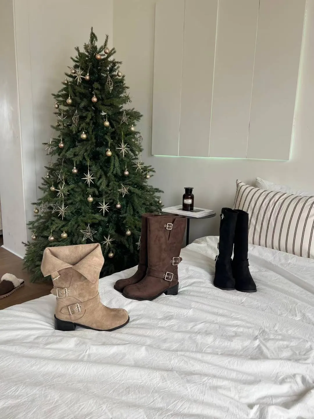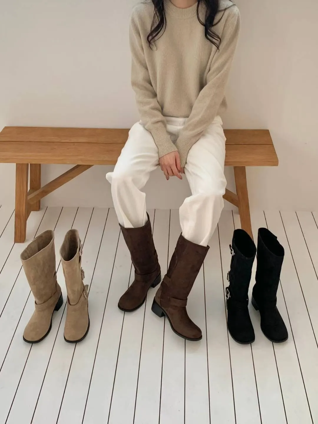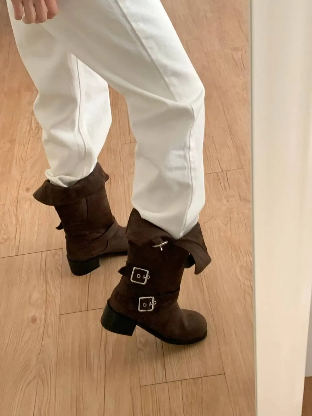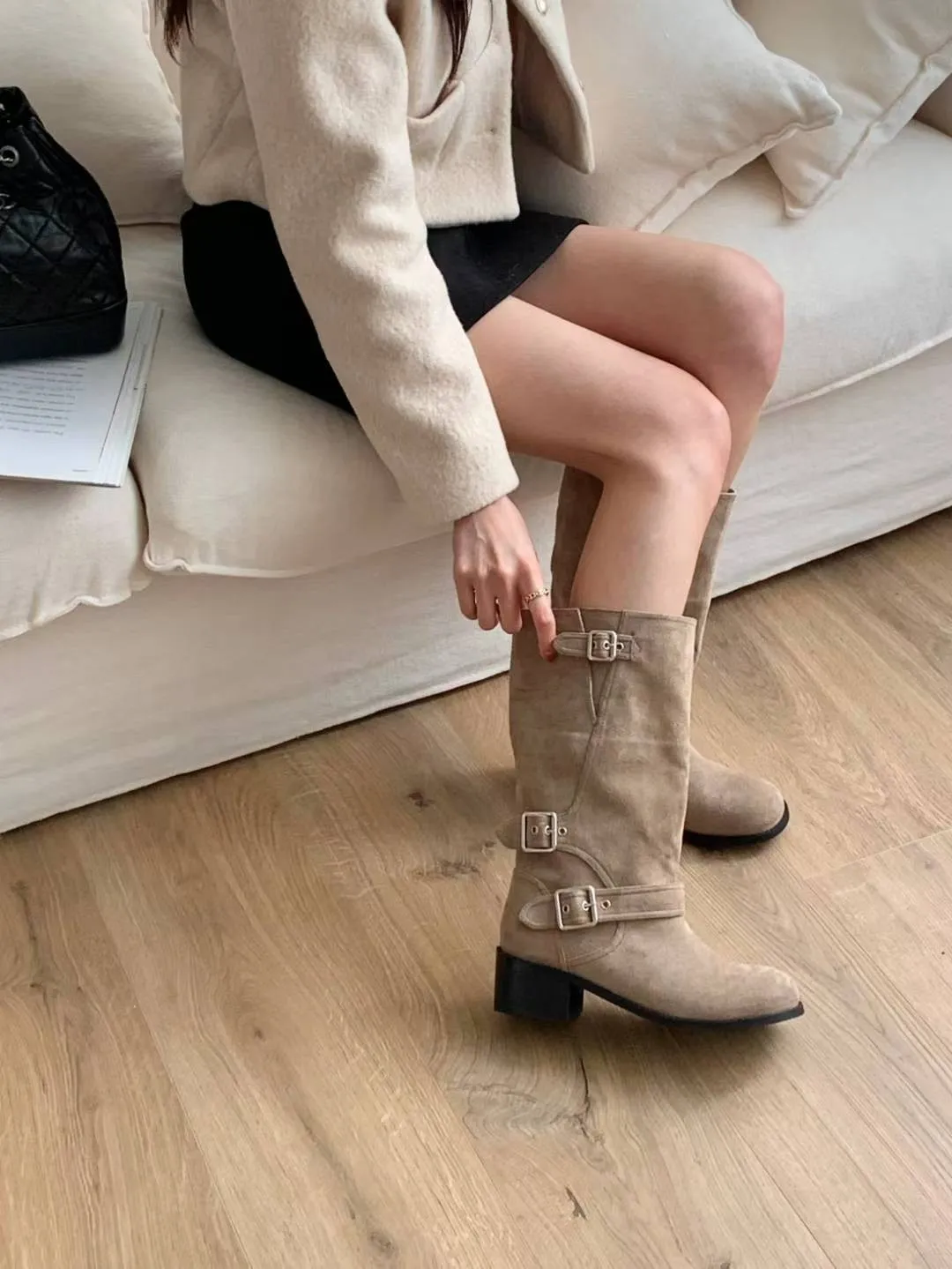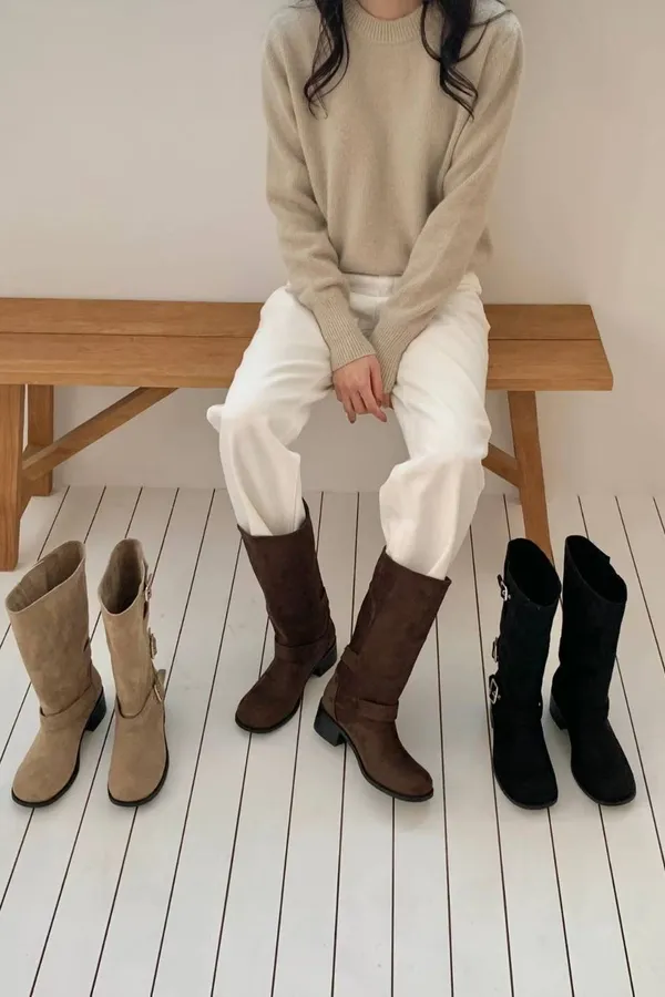 A18 1216三釦環可反褶麂皮圓頭中筒靴3色(230-250)3222