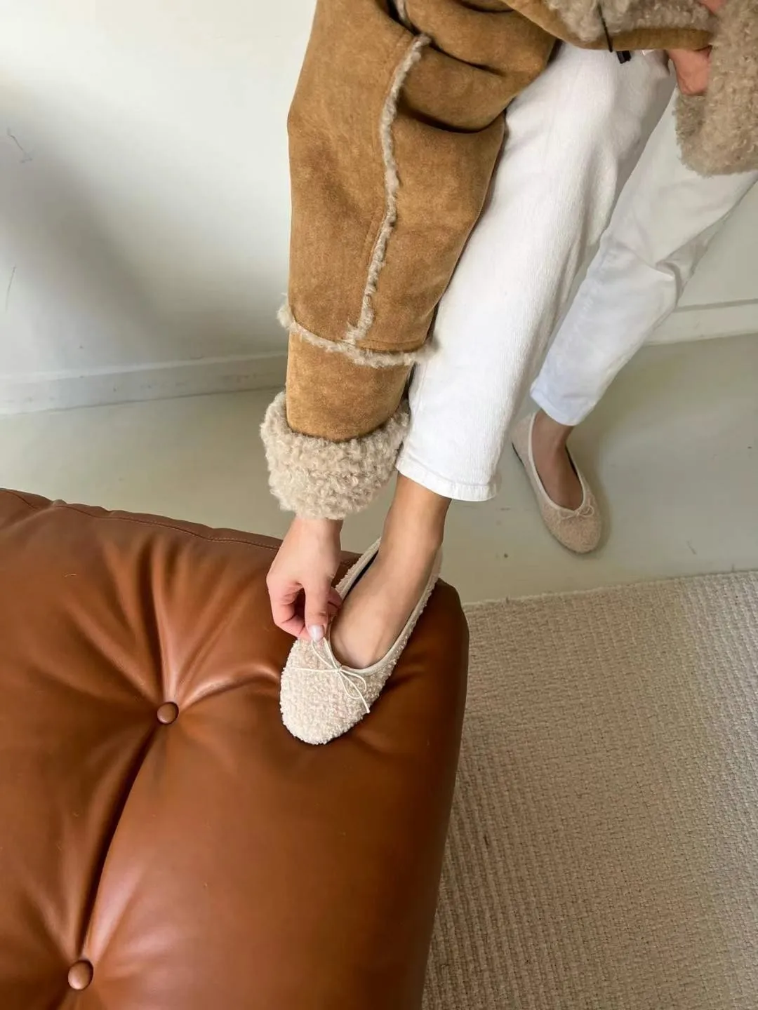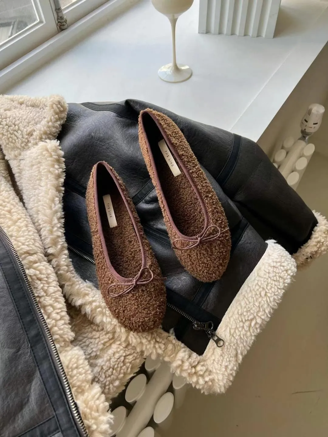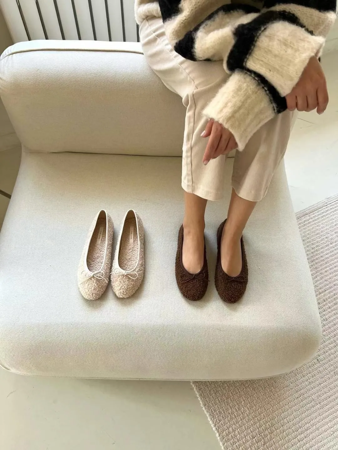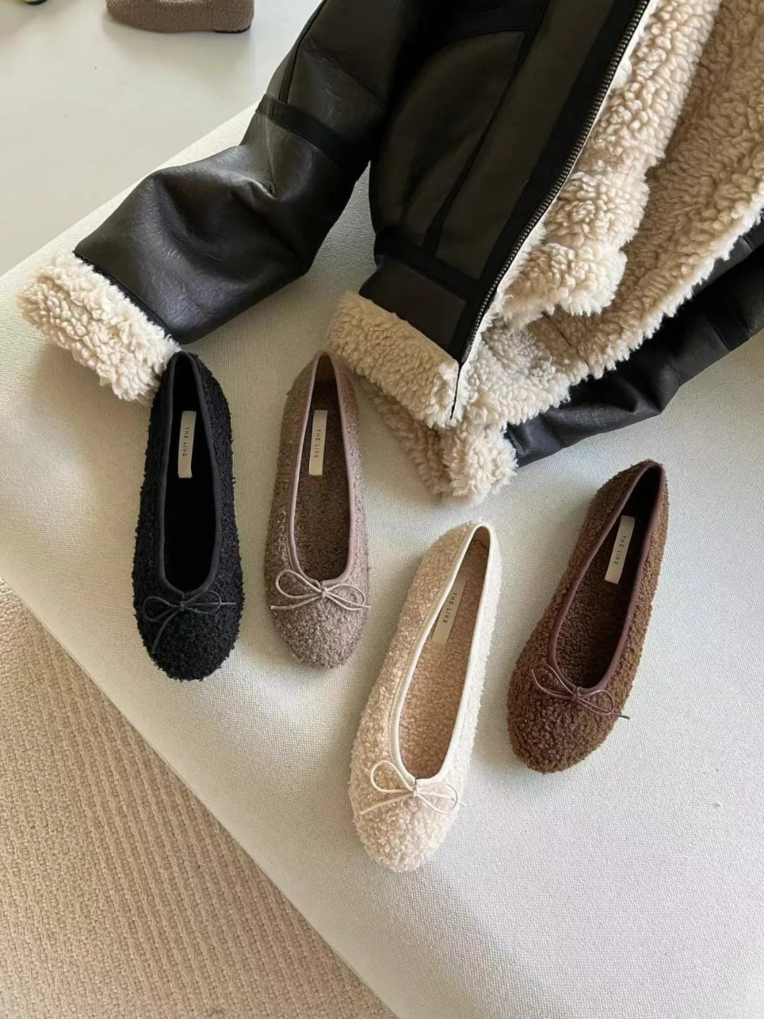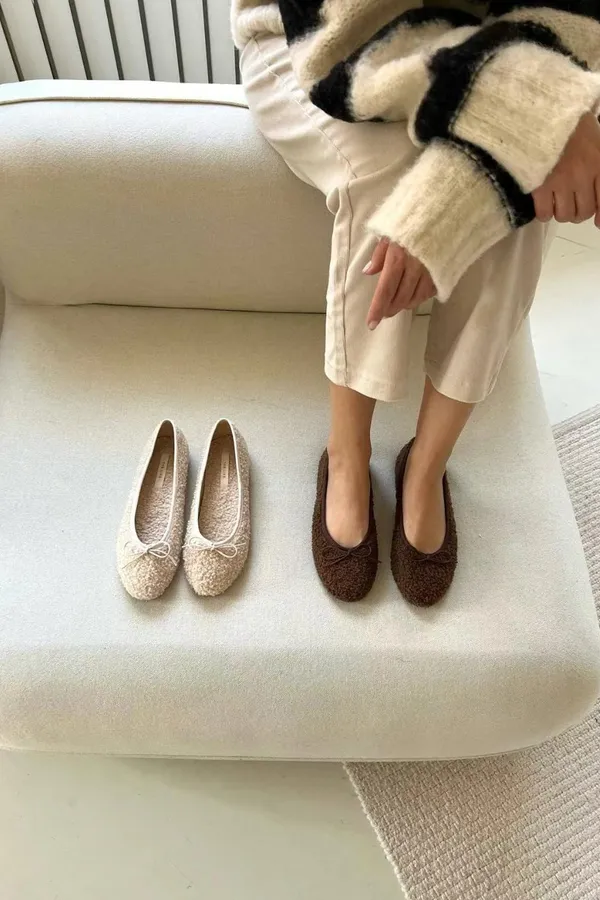 A19 1216羊羔毛蝴蝶結圓頭平底鞋4色(230-250)2421
