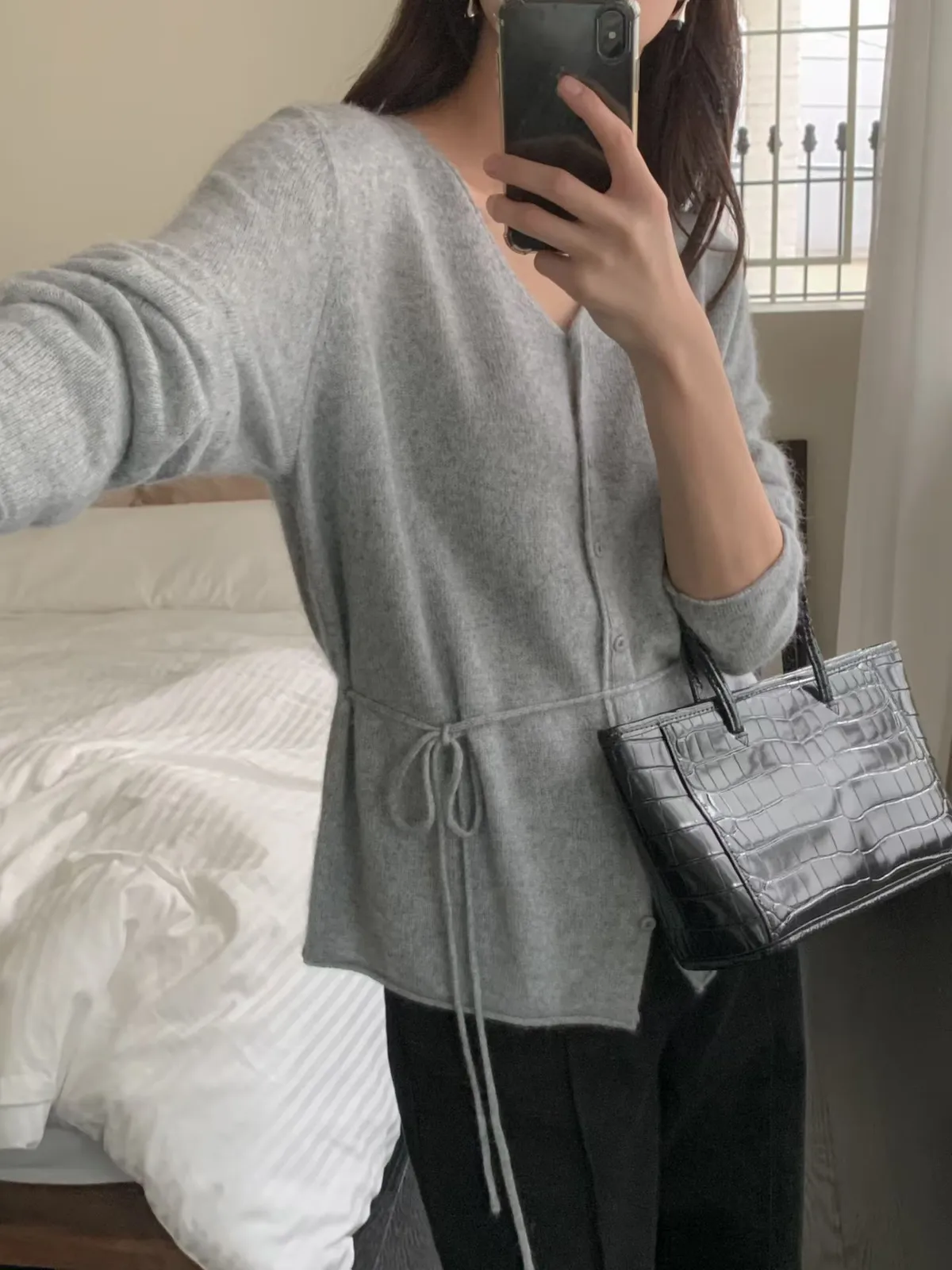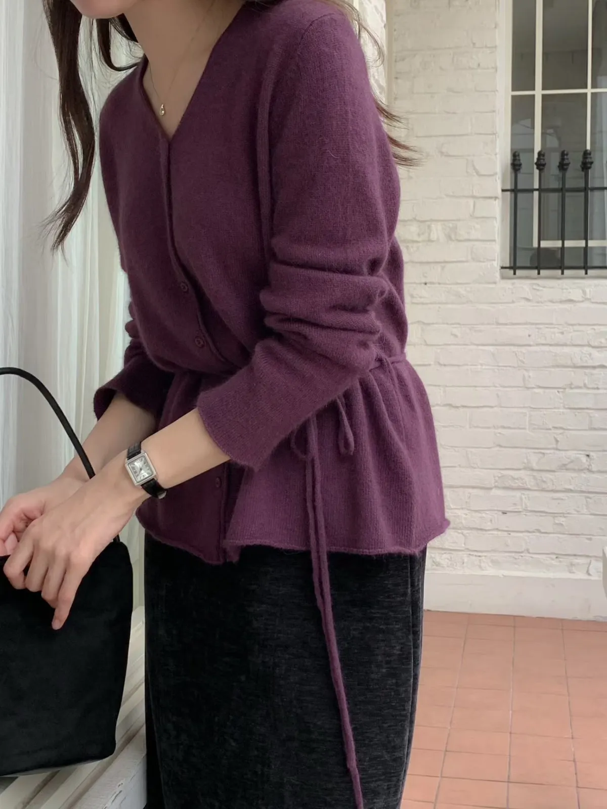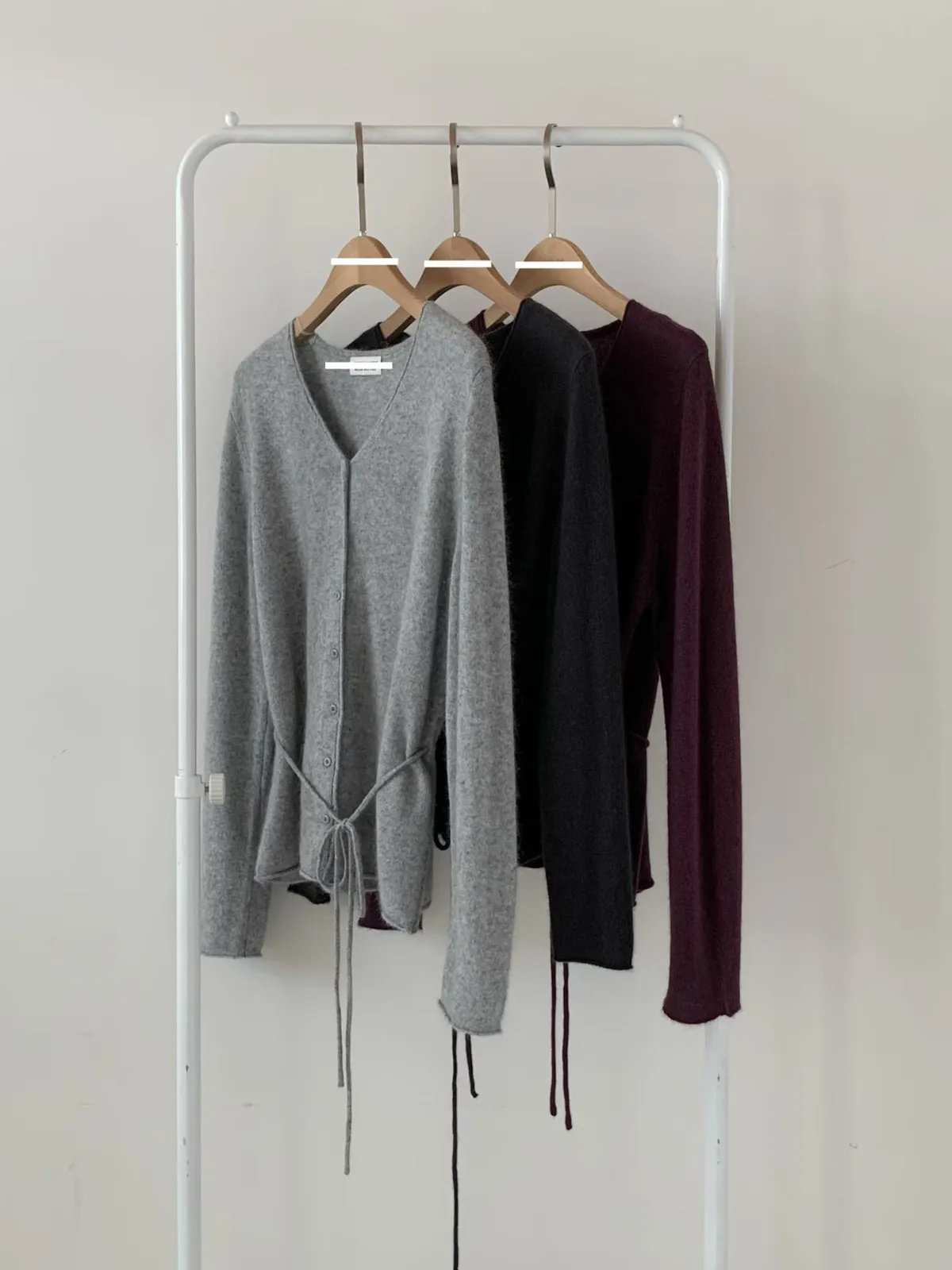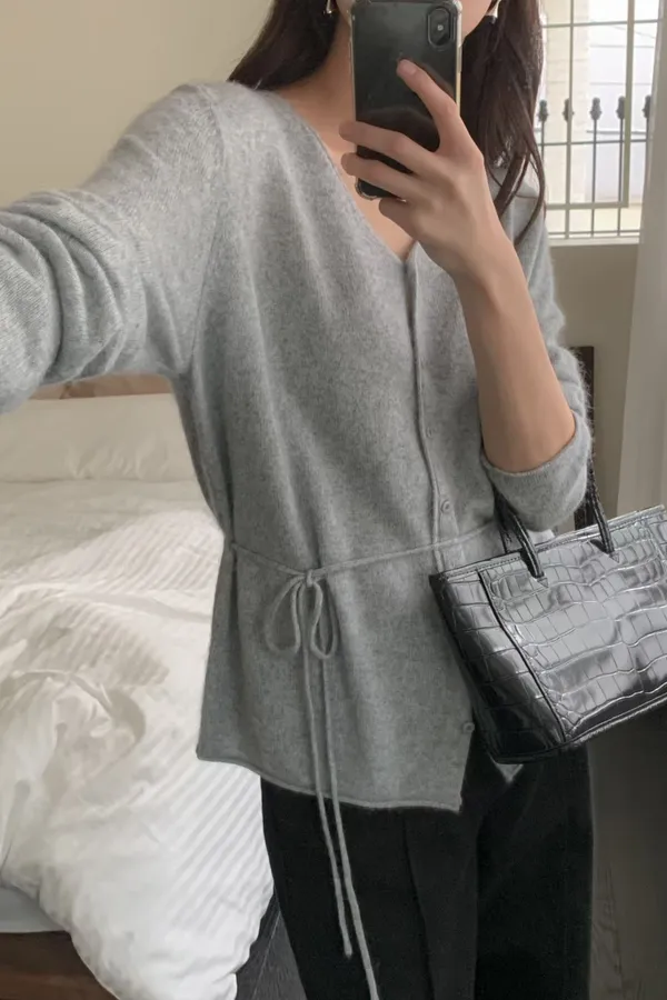 A26 1216排釦V領安哥拉羊毛針織上衣附綁帶3色