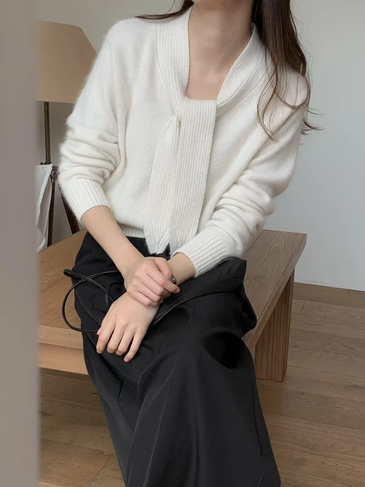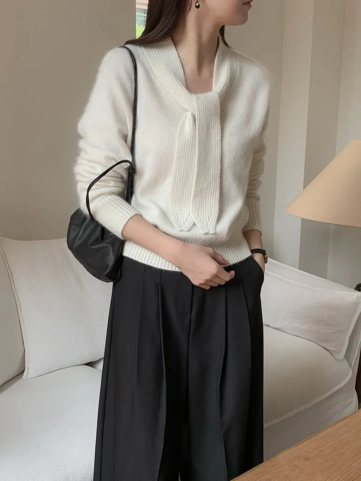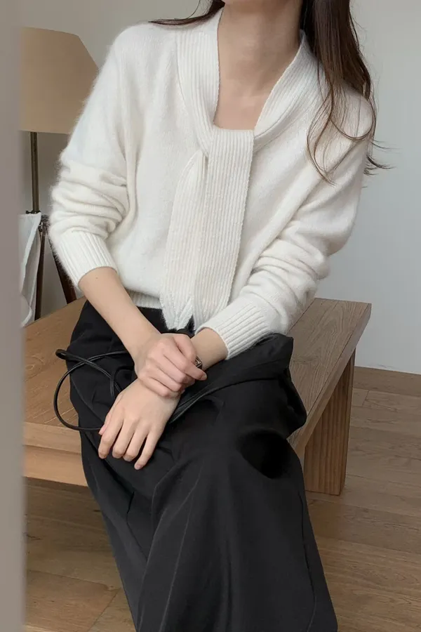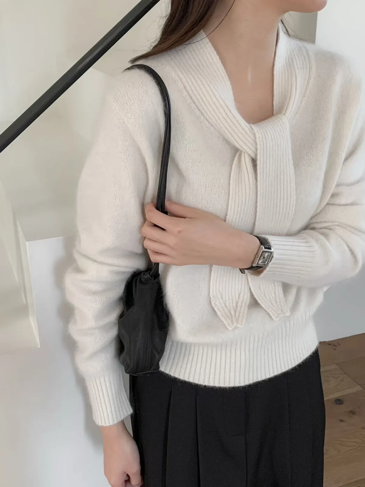 A30 1216一體成型領巾浣熊毛針織毛衣2色