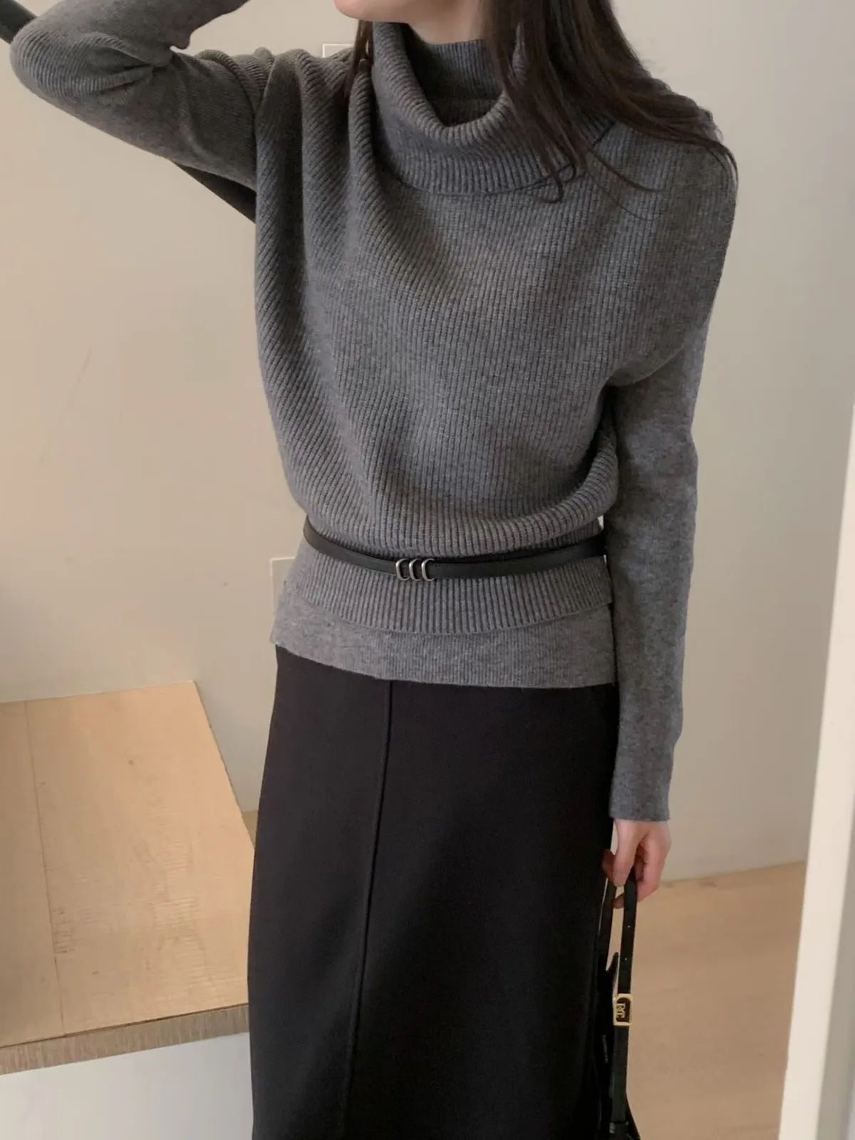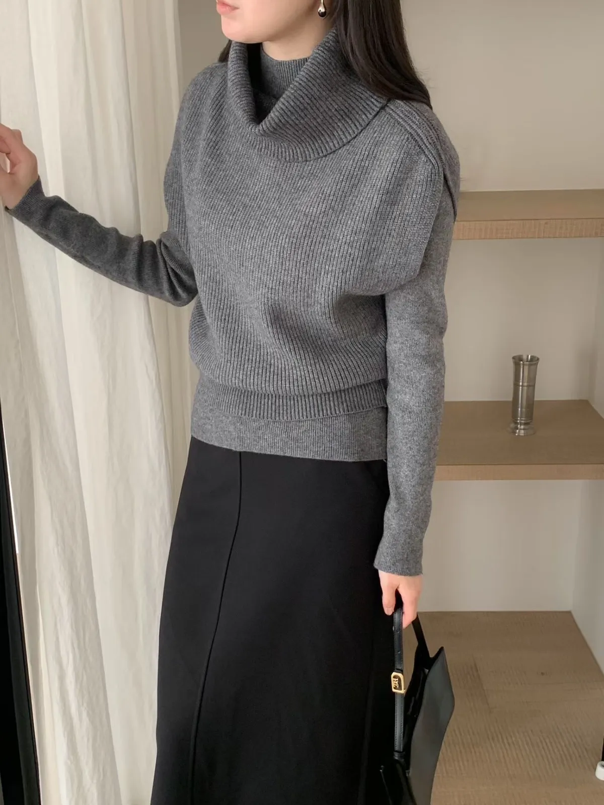 A32 1216高領針織背心+半領針織上衣(SET)2色