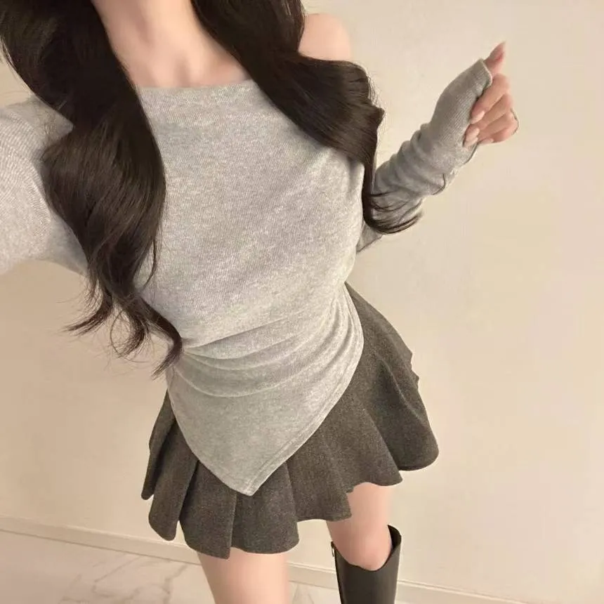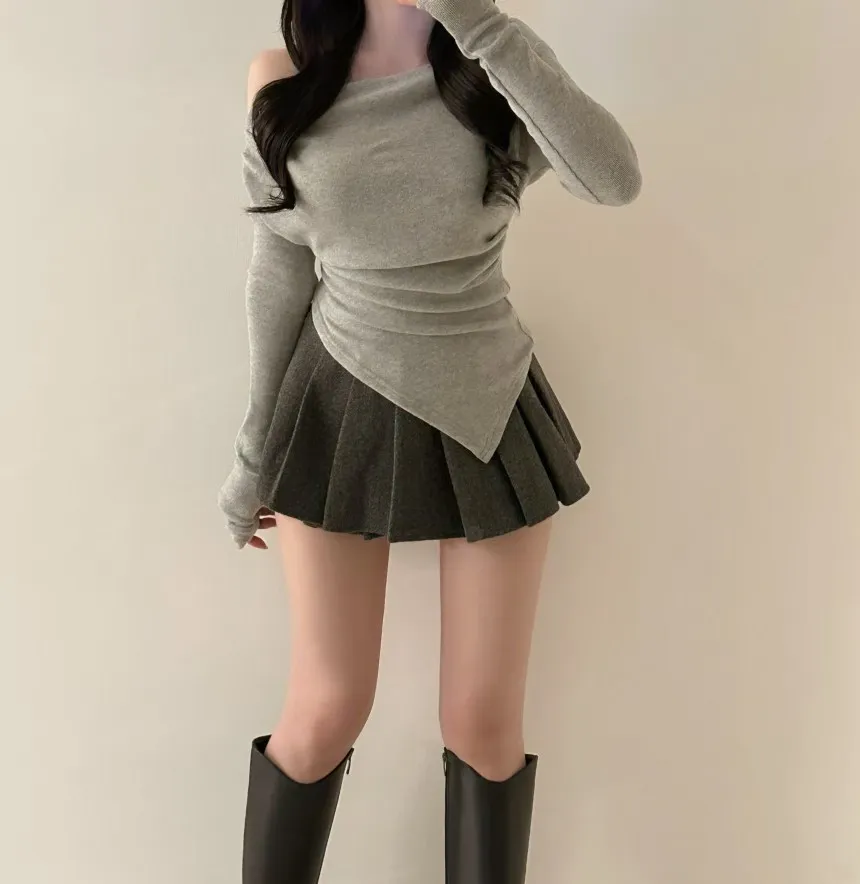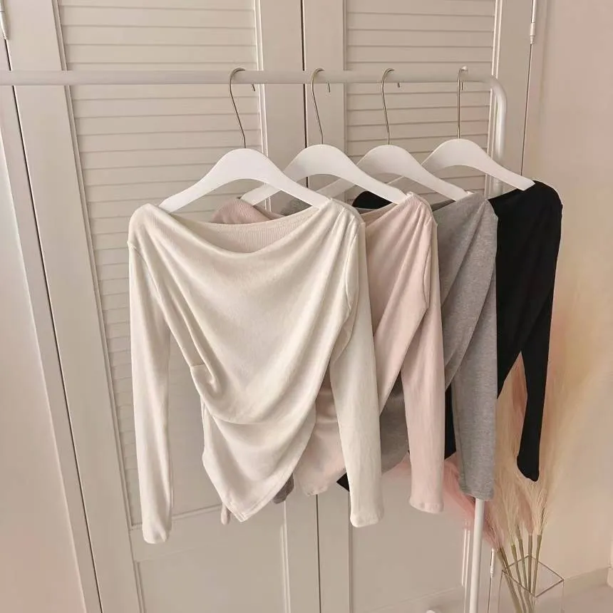 A39 1217名媛洋裝家抓褶垂領磨毛上衣4色
