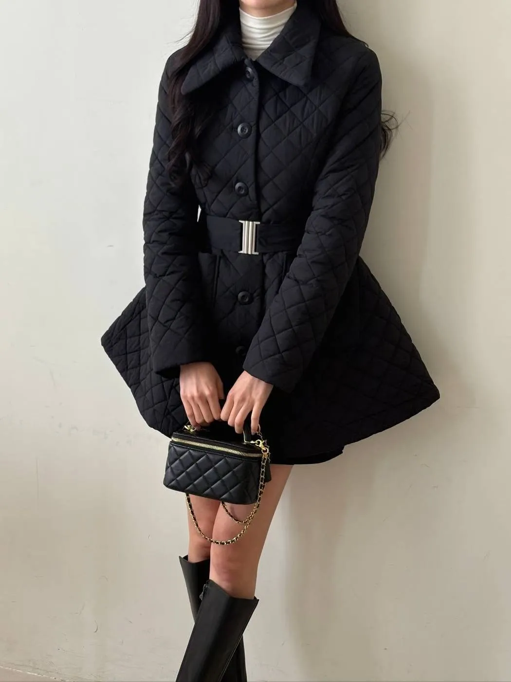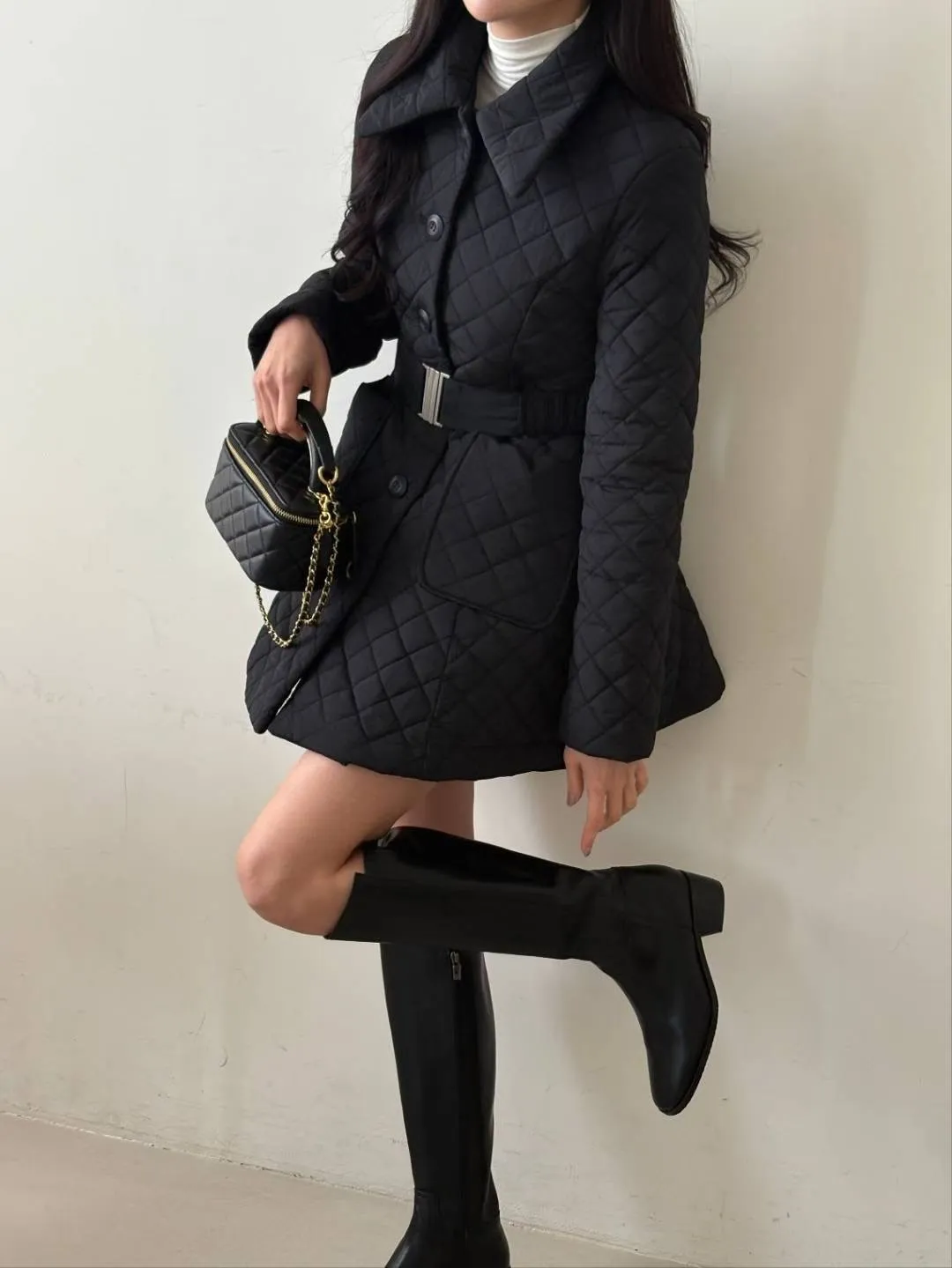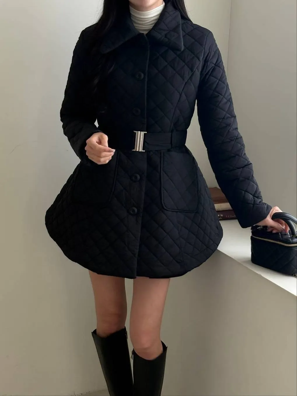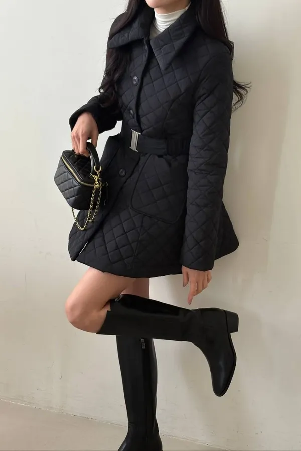 A48 1217名媛洋裝家翻領鋪棉外套附腰帶2色