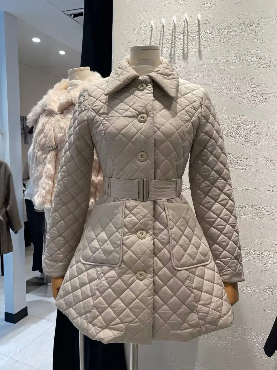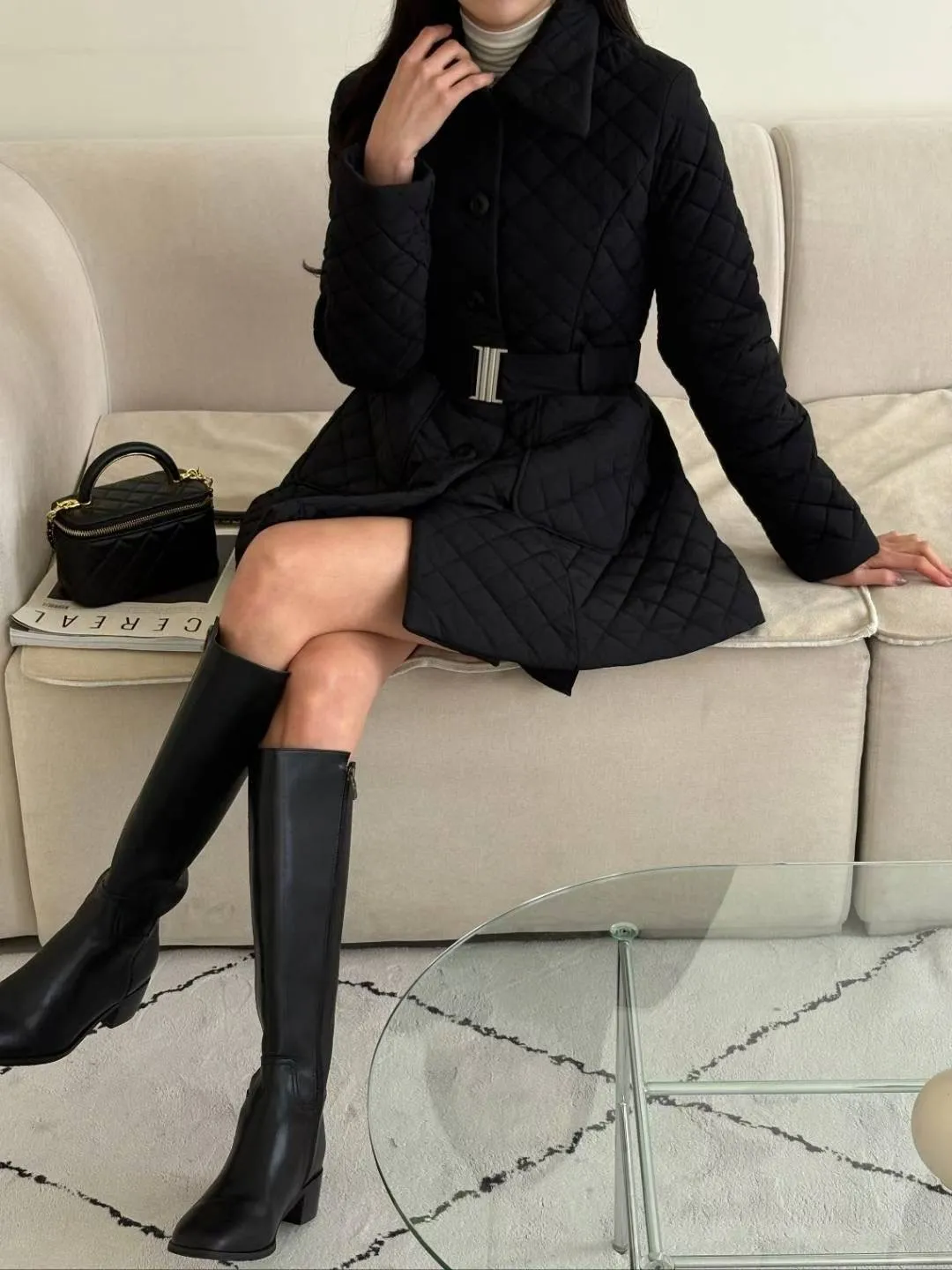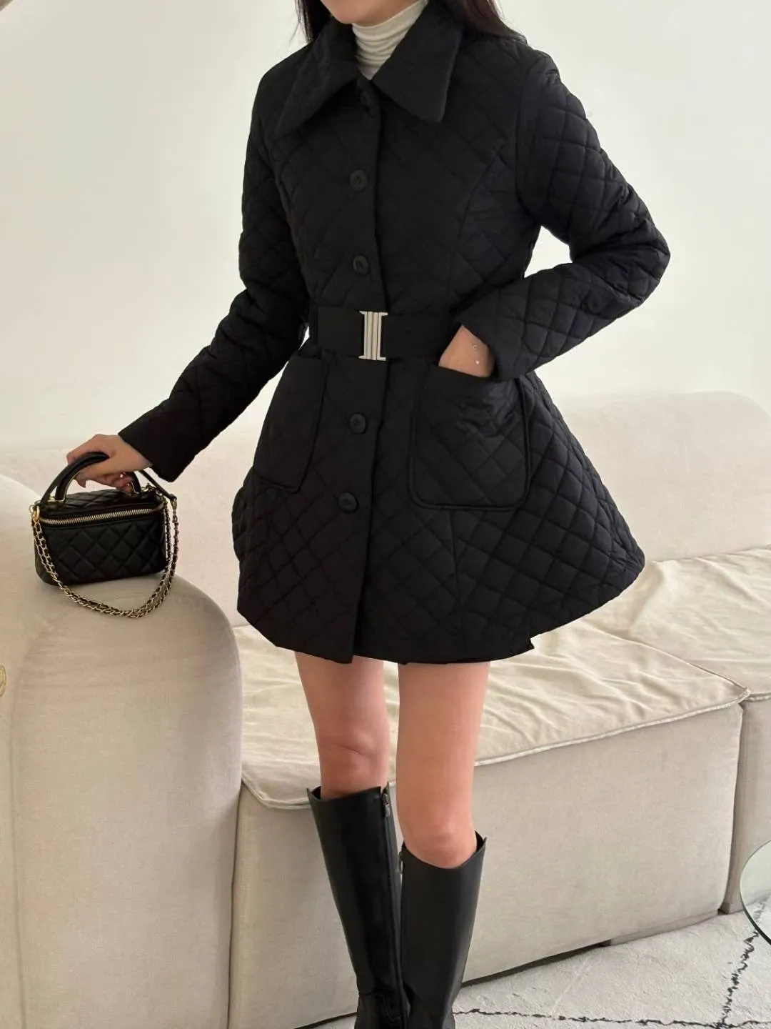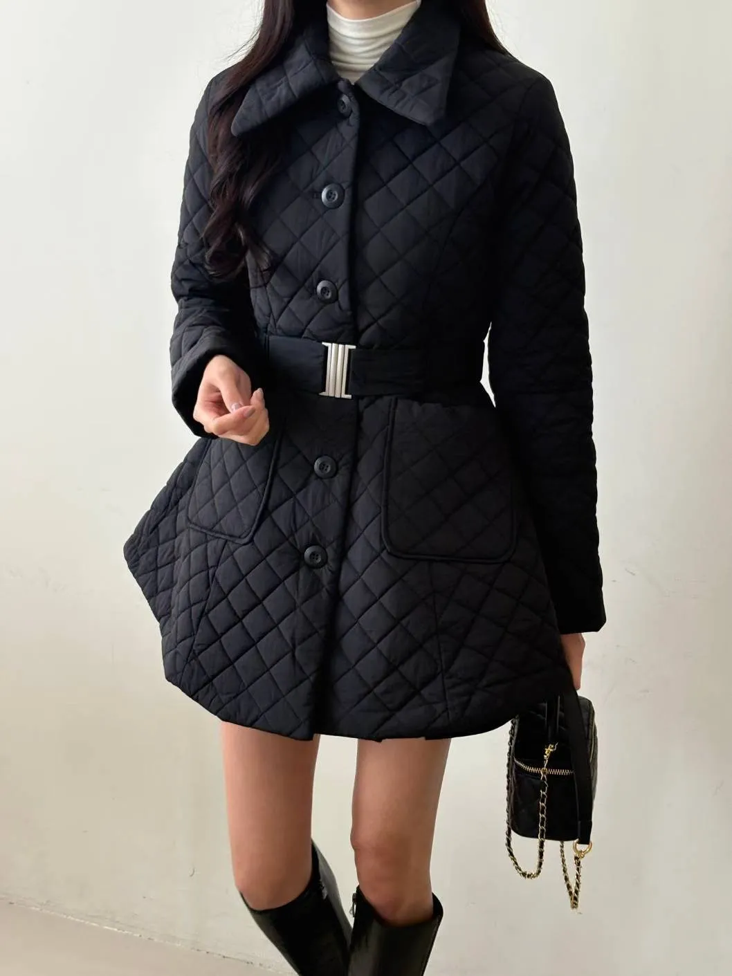 A48 1217名媛洋裝家翻領鋪棉外套附腰帶2色