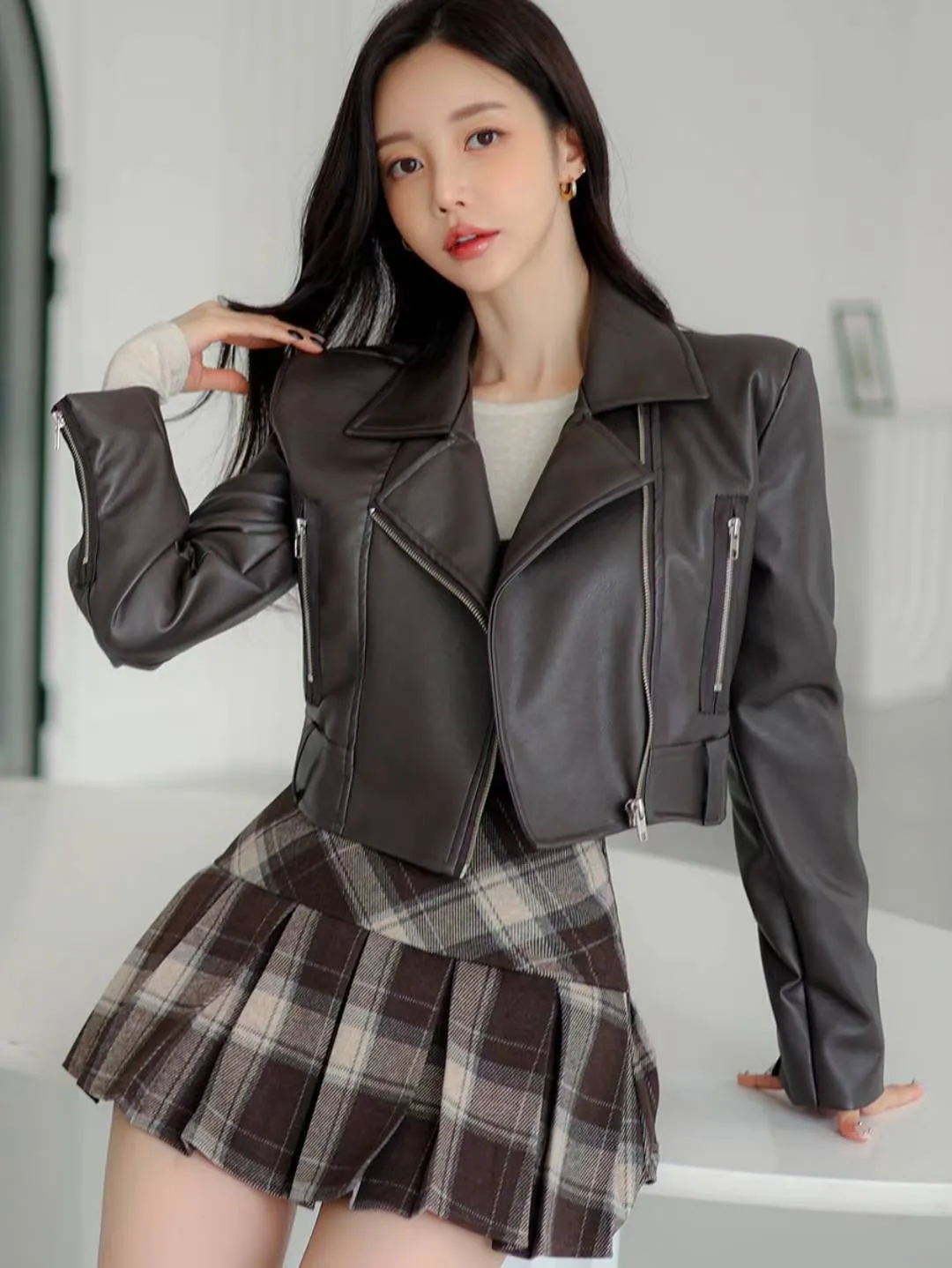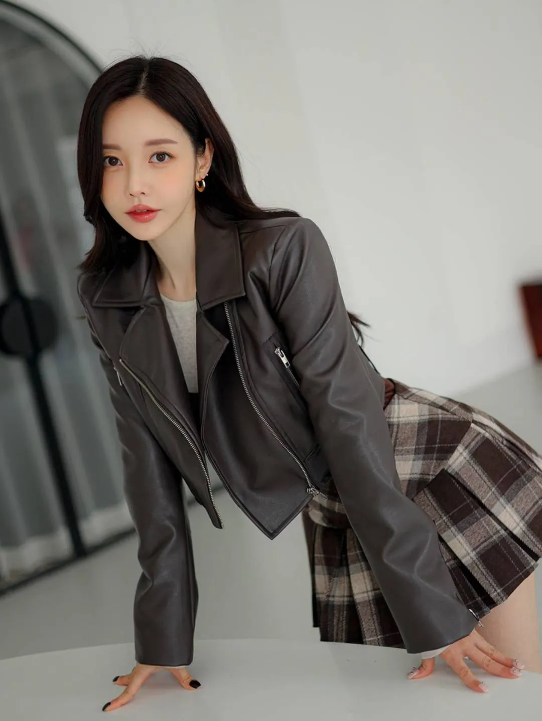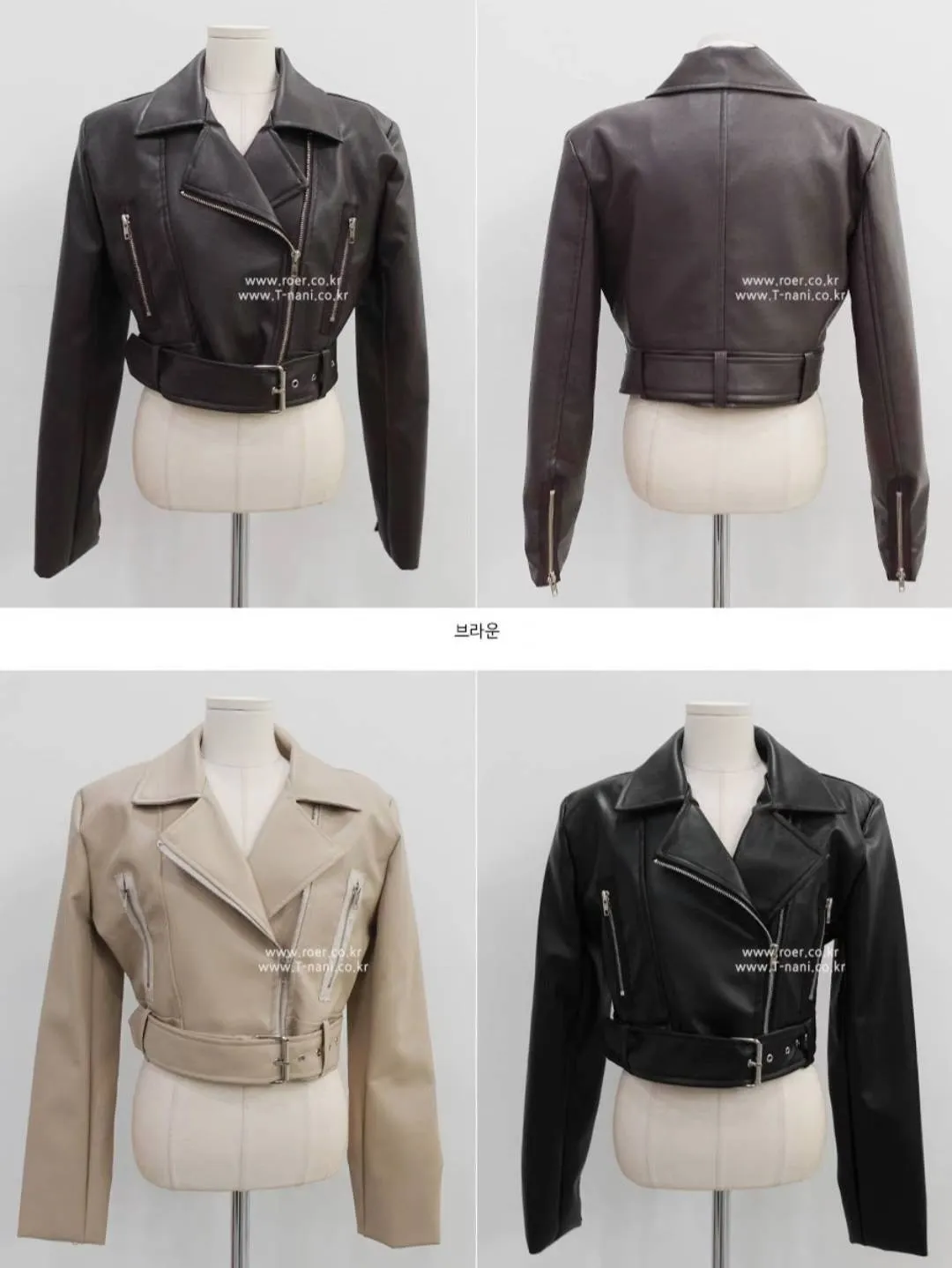 A54 1217(限量特)名媛洋裝家短版皮外套附腰帶3色
