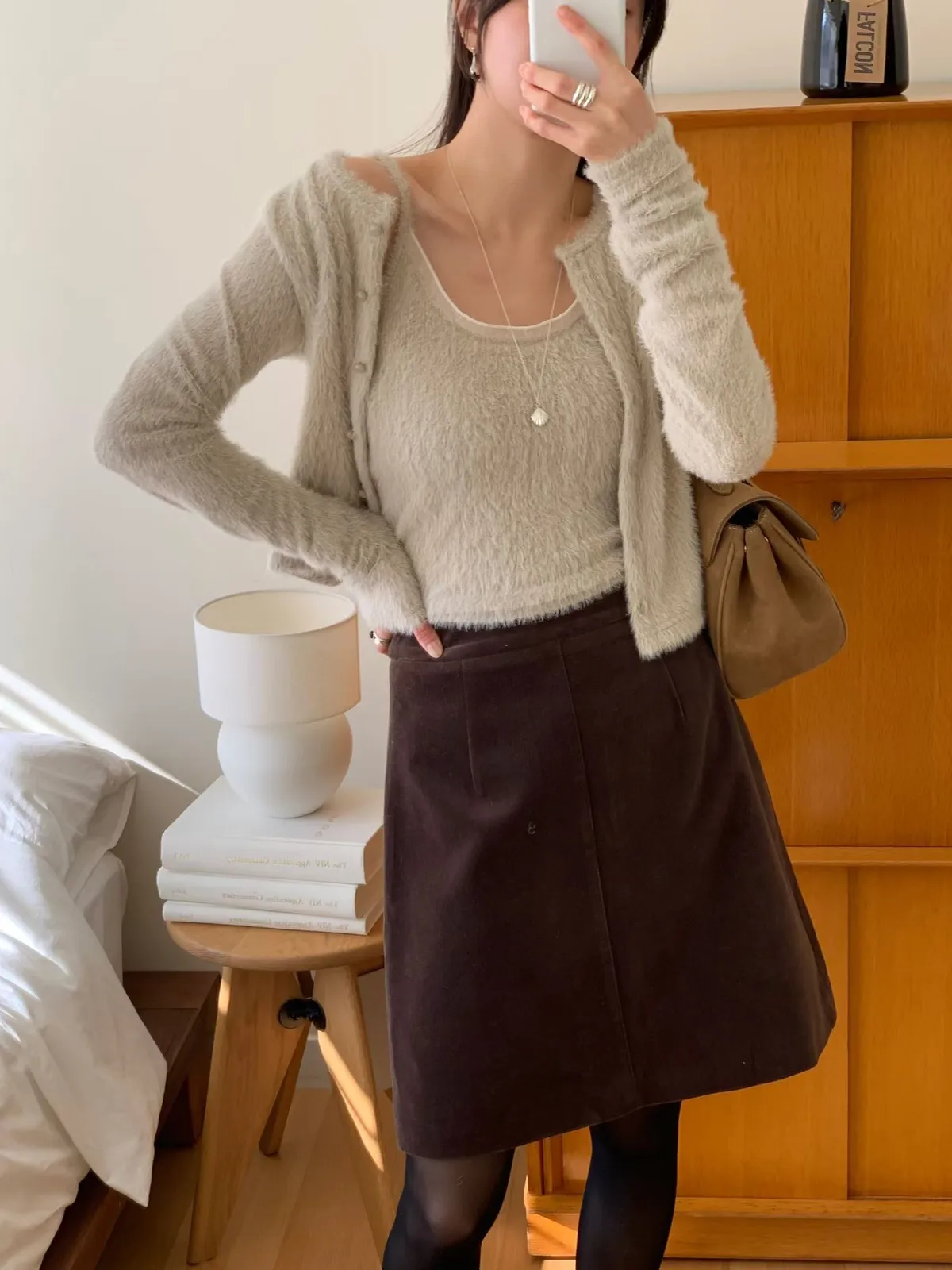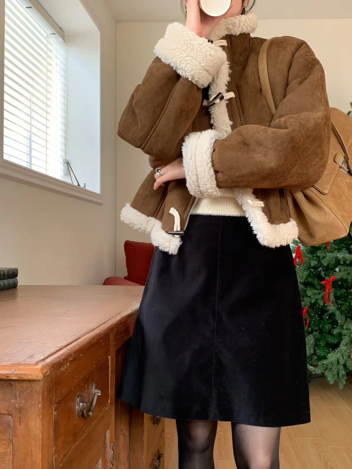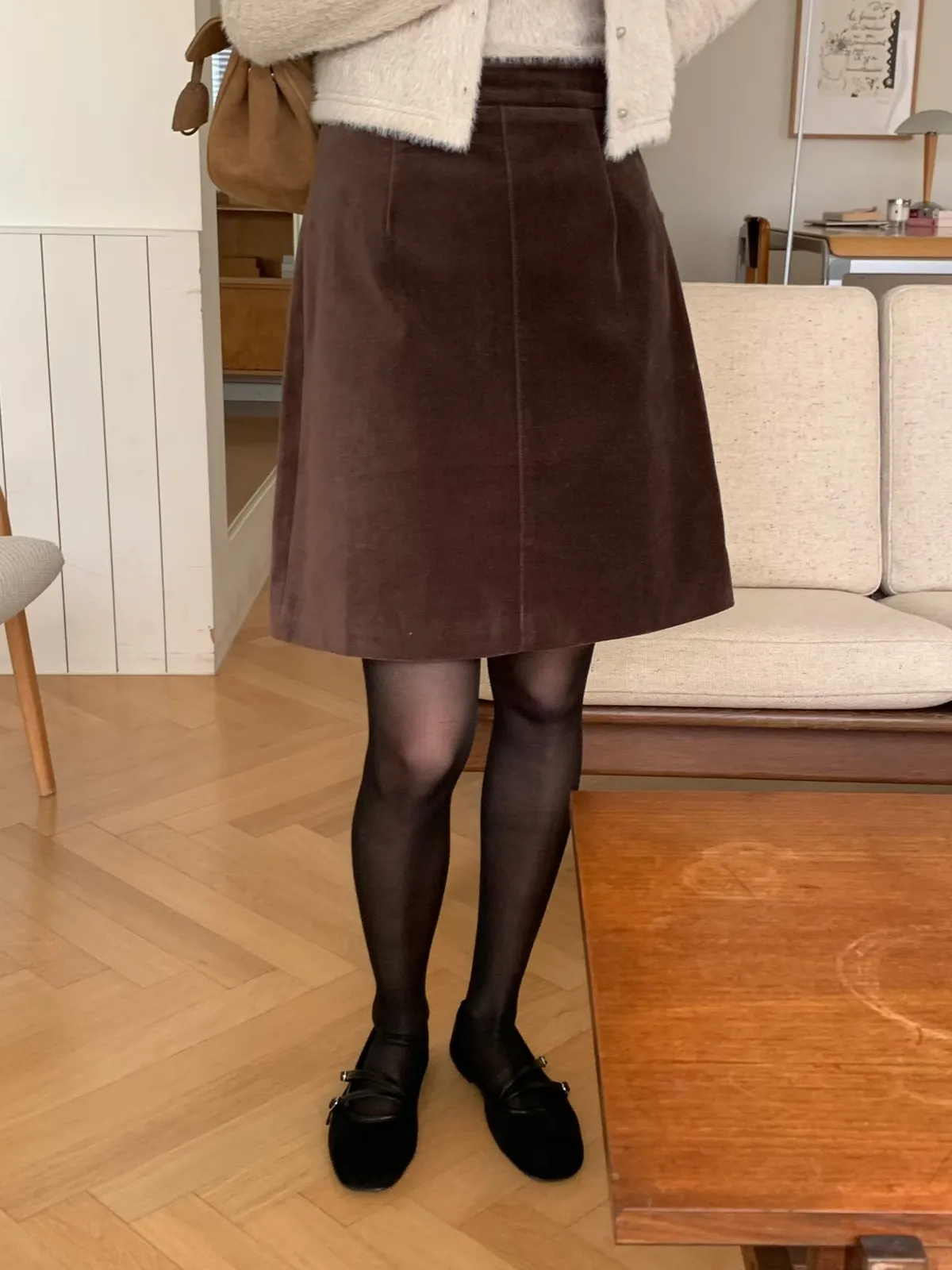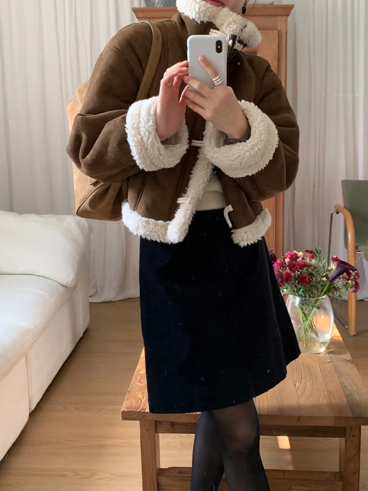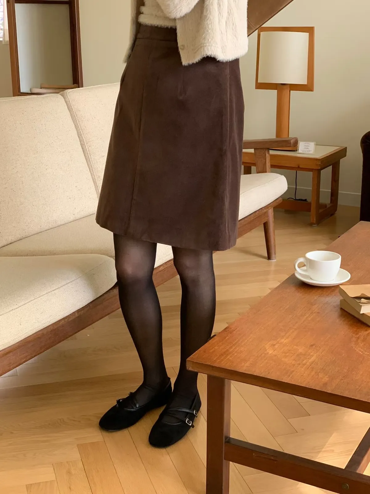 A56 1217新廠家傘狀A字麂皮半裙附皮帶2色(S/M)