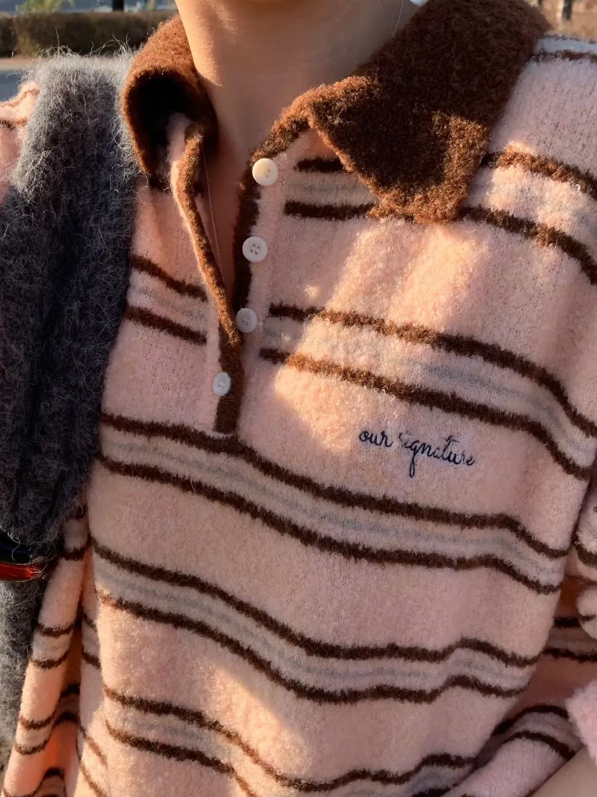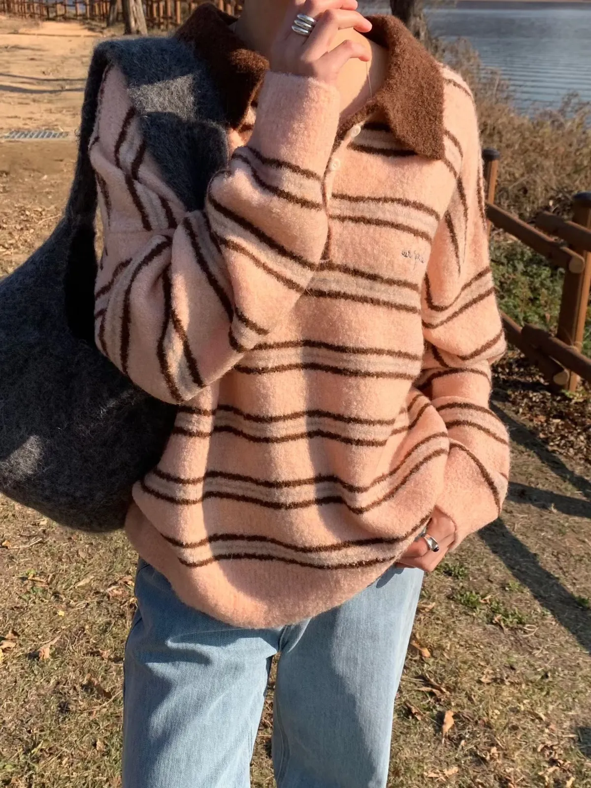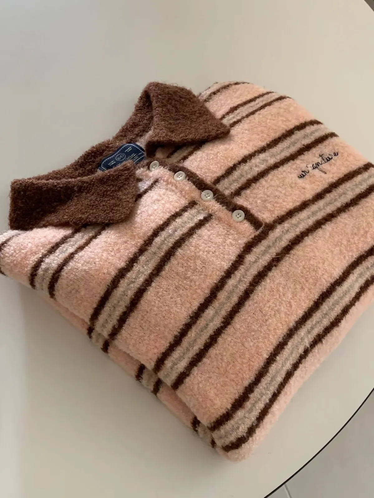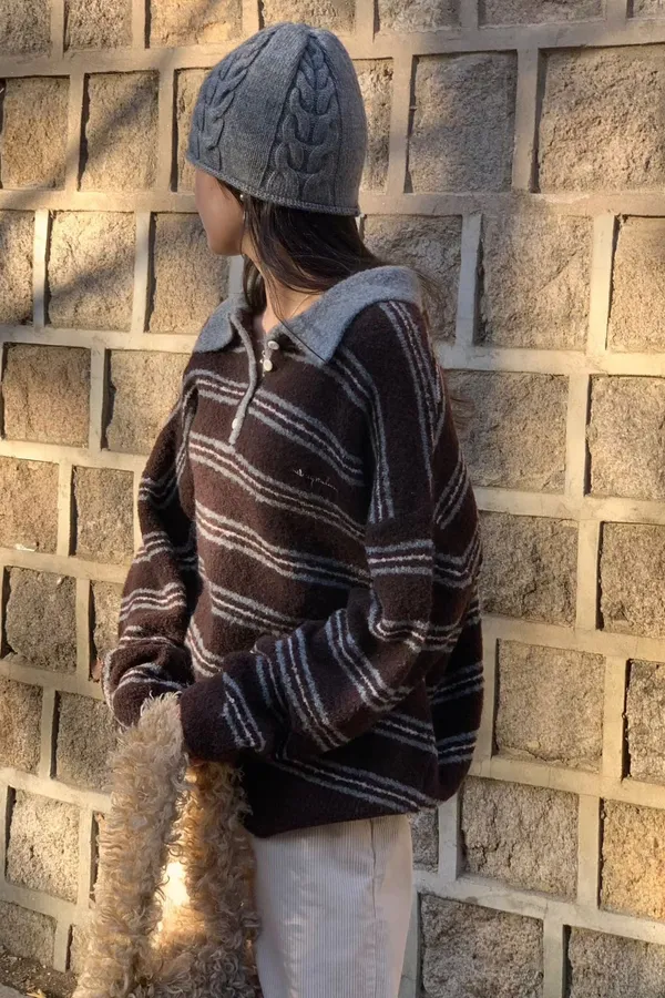 A64 1217新廠家橫條四釦翻領針織毛衣3色