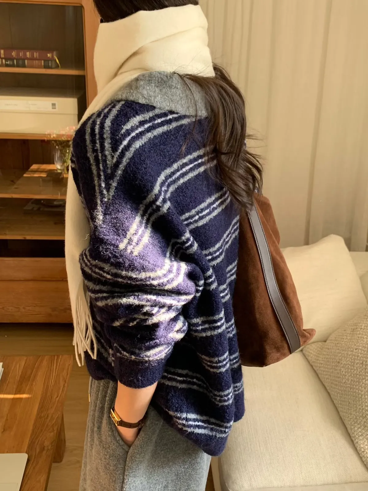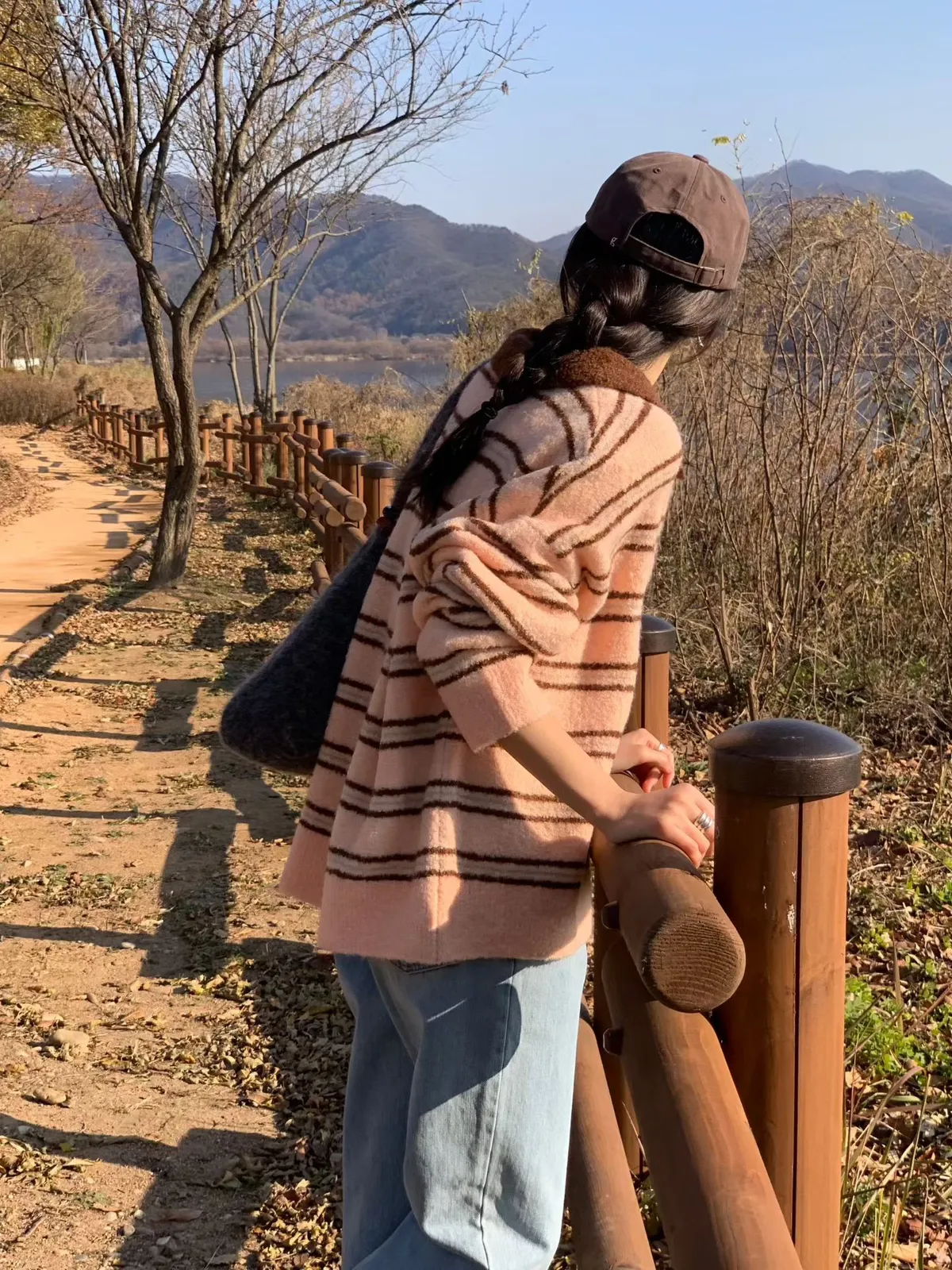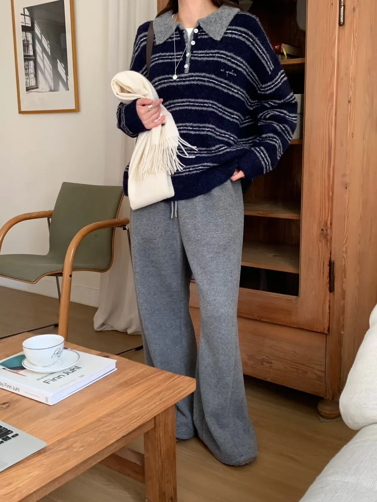 A64 1217新廠家橫條四釦翻領針織毛衣3色