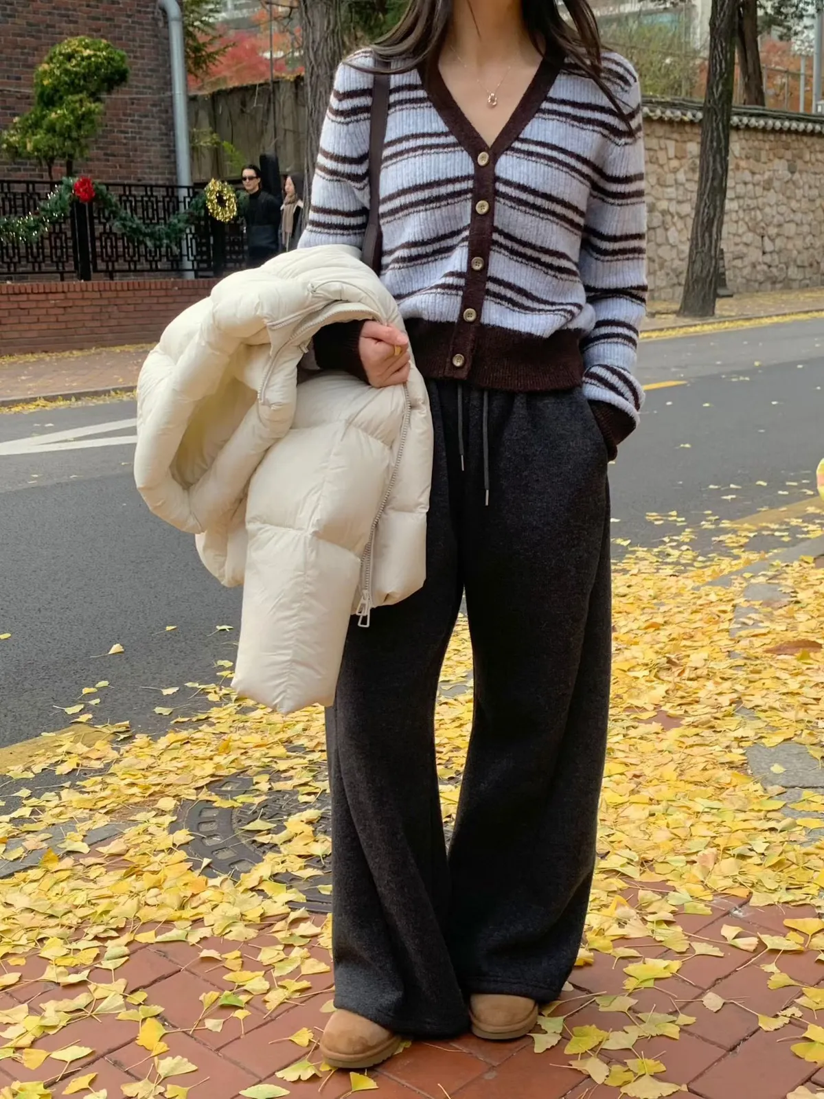A65 1217新廠家微彎刀內加絨毛呢褲3色