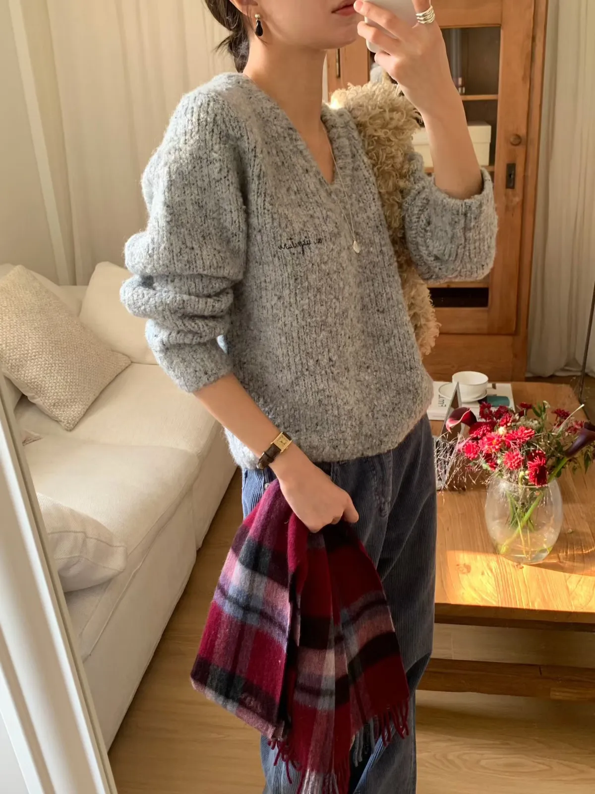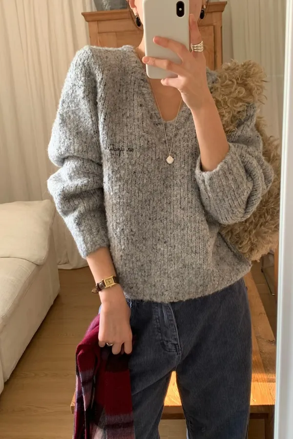 A66 1217新廠家混色V領針織毛衣2色