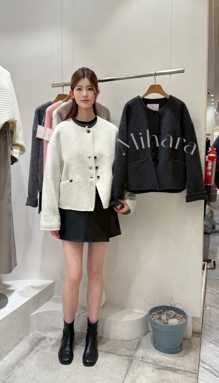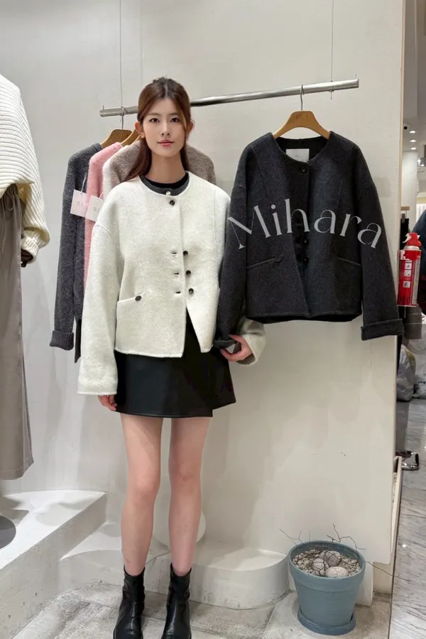 A5 1218高檔質感家排釦圓領羊毛100%針織外套2色