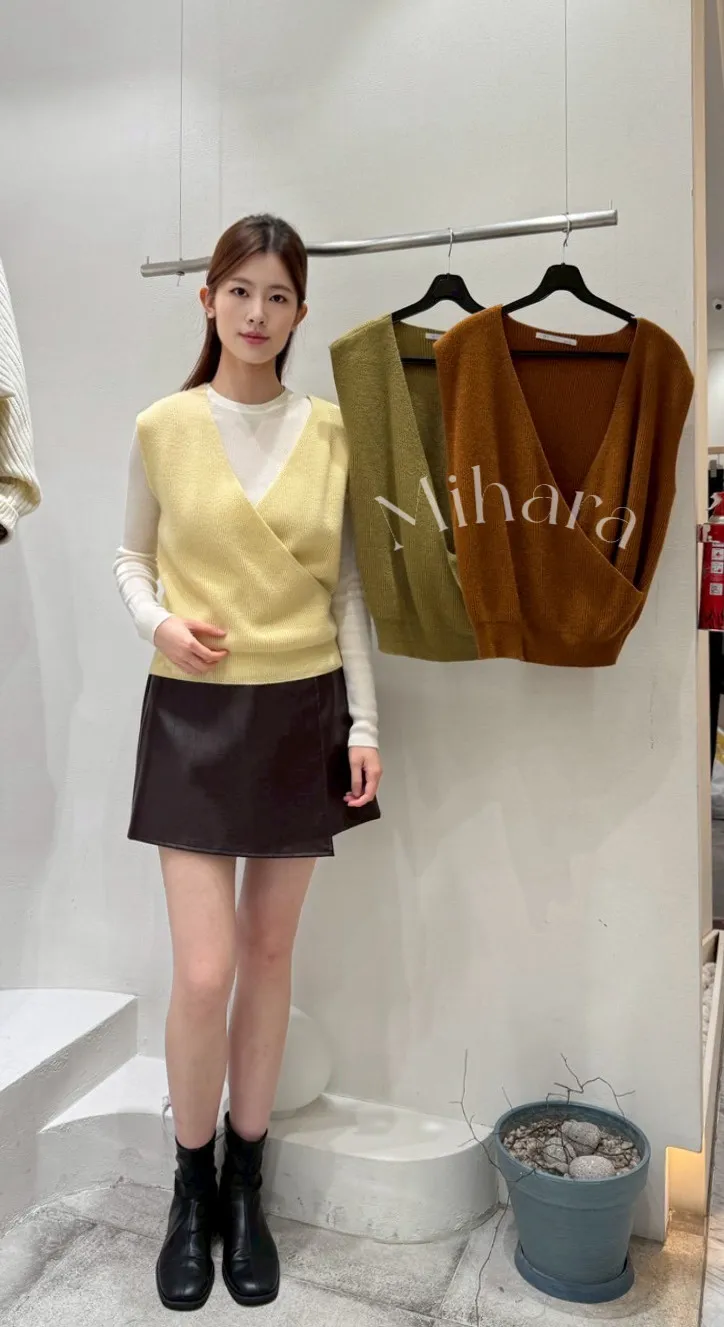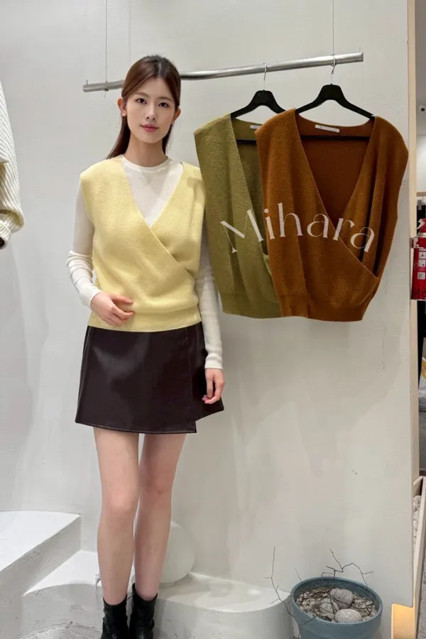 A15 1218(限量特)高檔質感家交叉V領羊絨針織背心3色