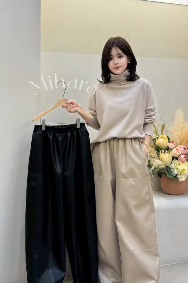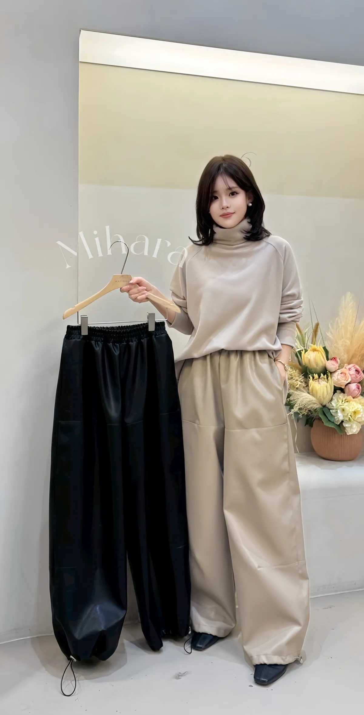A26 1218可愛歐膩家規則鬆緊腰皮褲2色