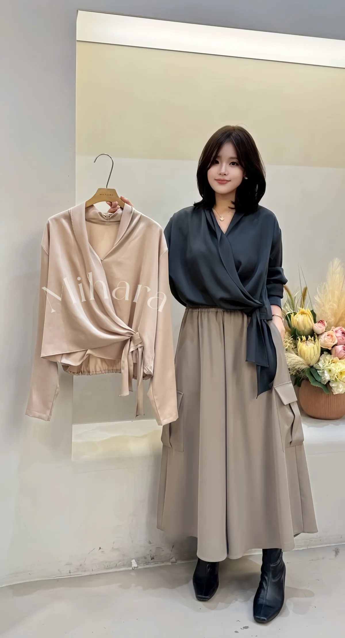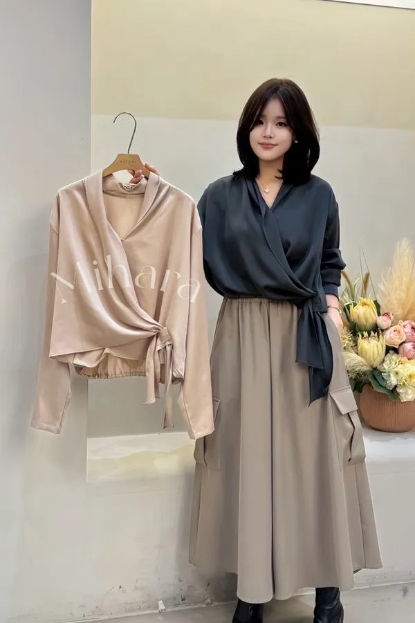 A29 1218可愛歐膩家垂墜交叉設計上衣2色