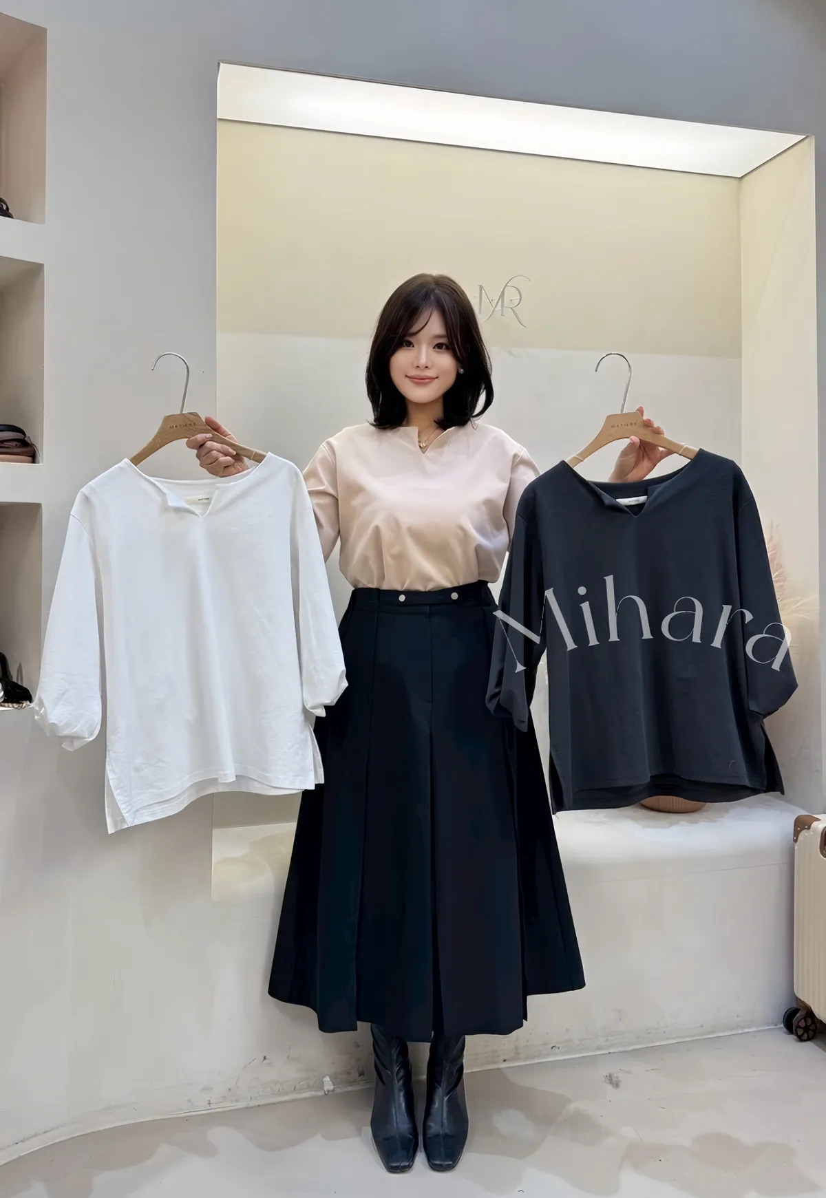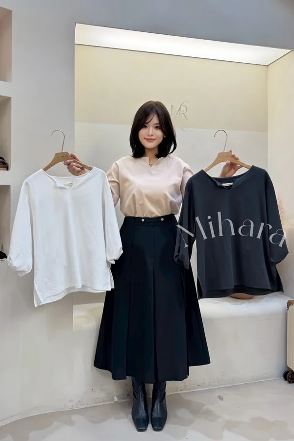 A33 1218可愛歐膩家小V領開衩上衣3色