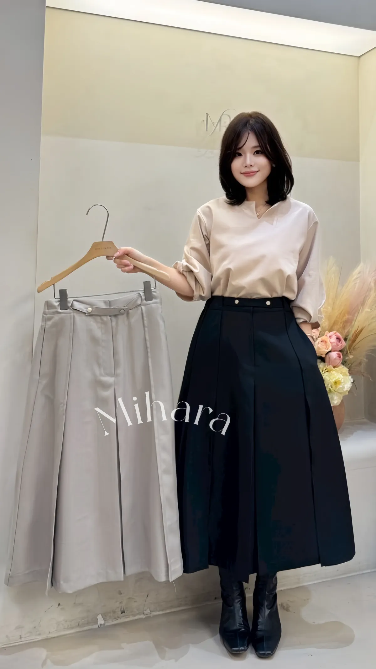 A34 1218可愛歐膩家開衩腰帶A字裙2色