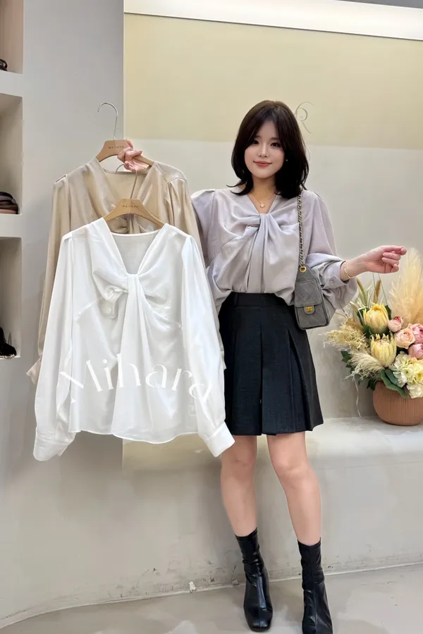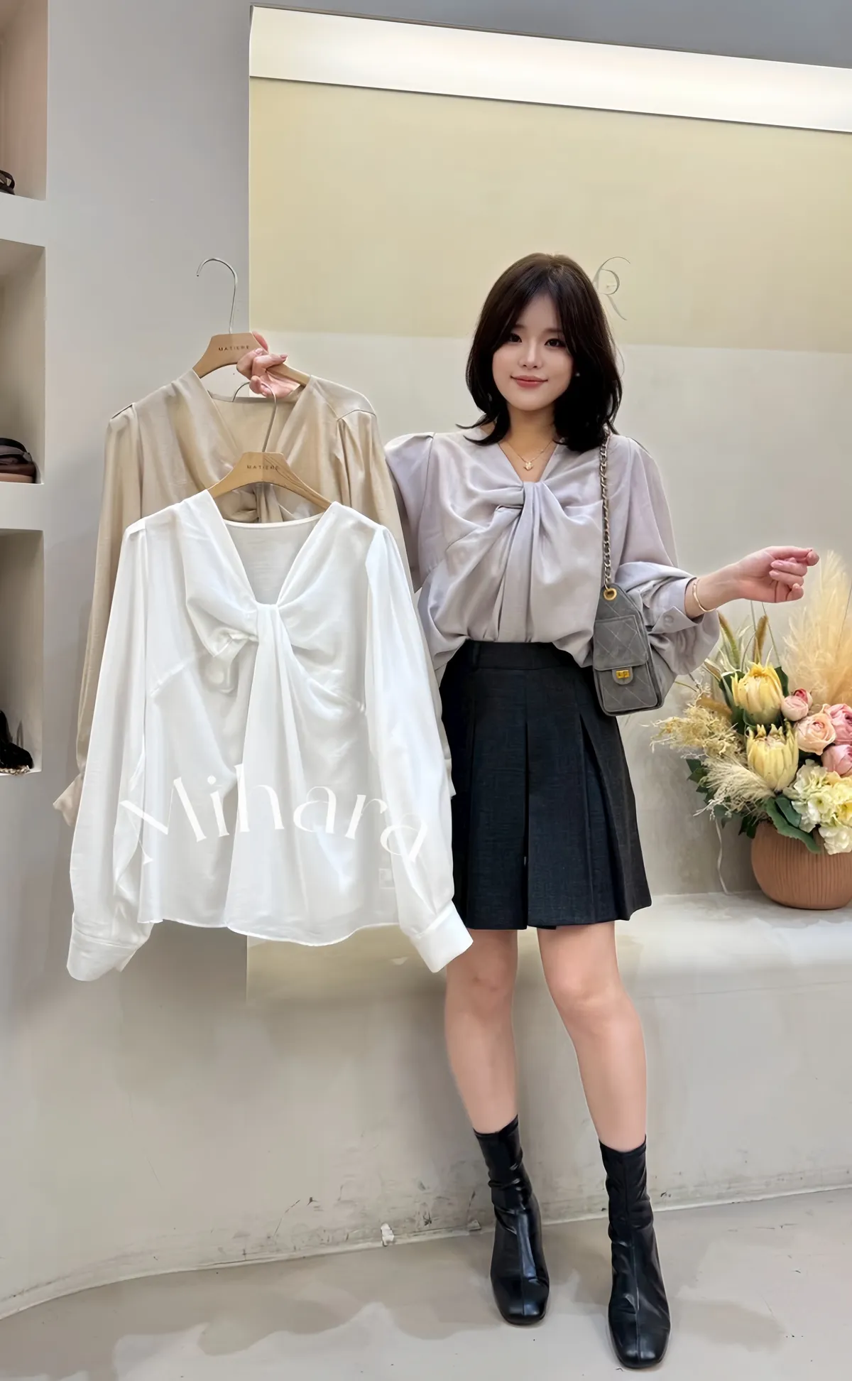 A35 1218可愛歐膩家天絲扭結上衣3色
