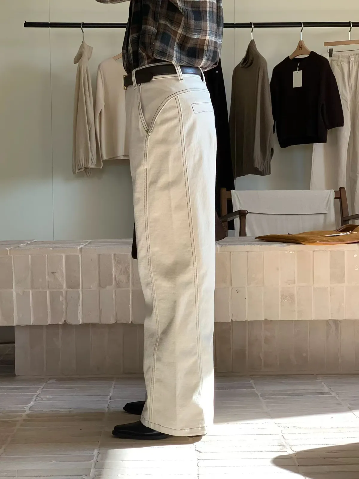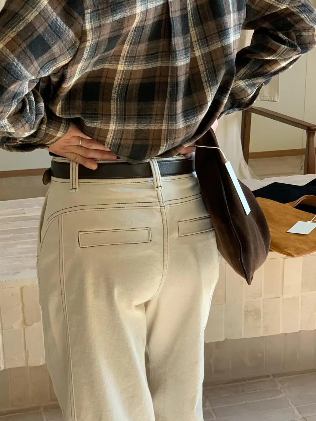 A56 1201氣質歐膩家撞色車線加絨直筒褲(S/M/L/XL)