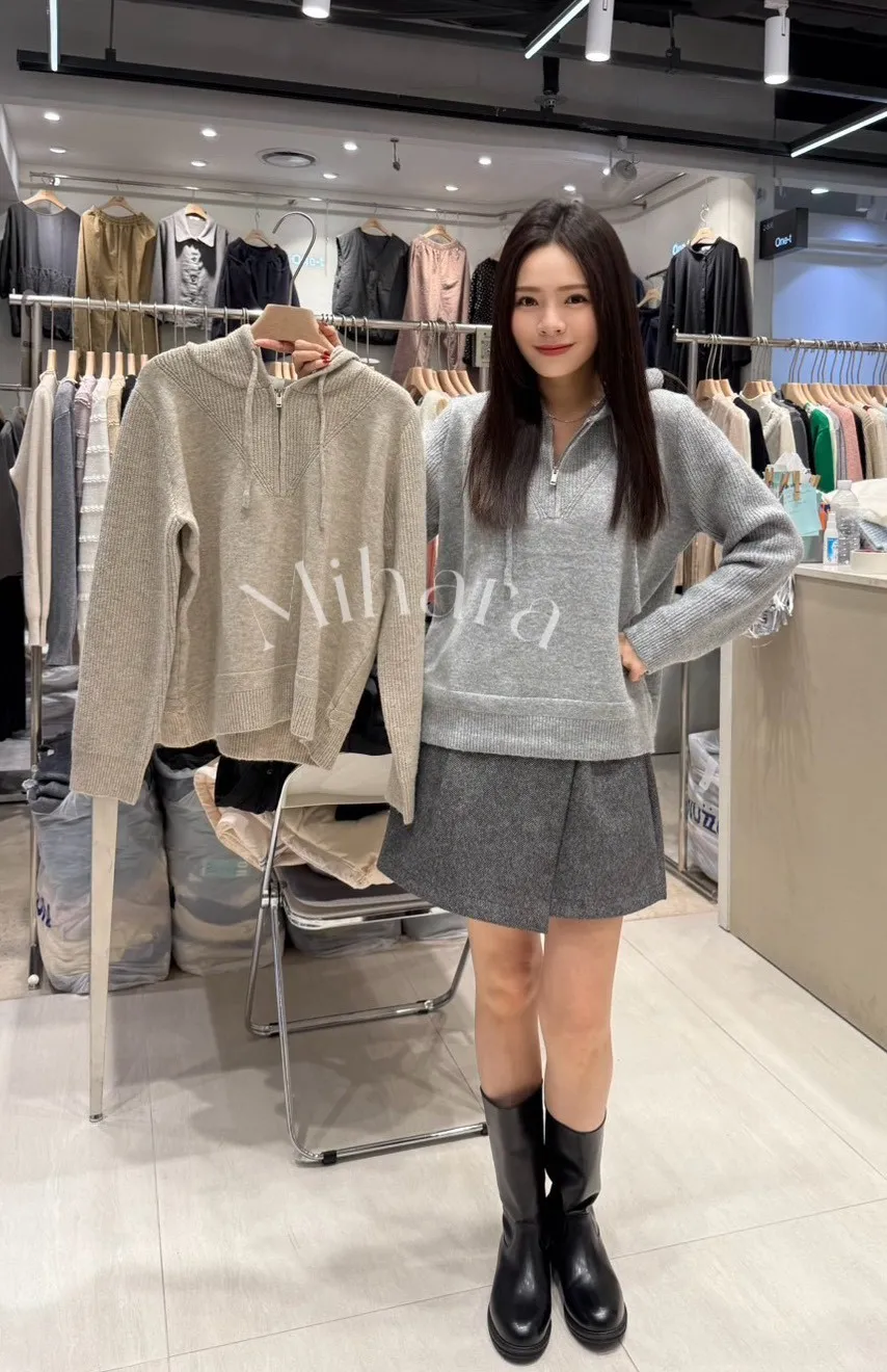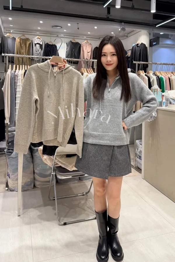 A1 1221甜美蕾絲家連帽針織T恤2色