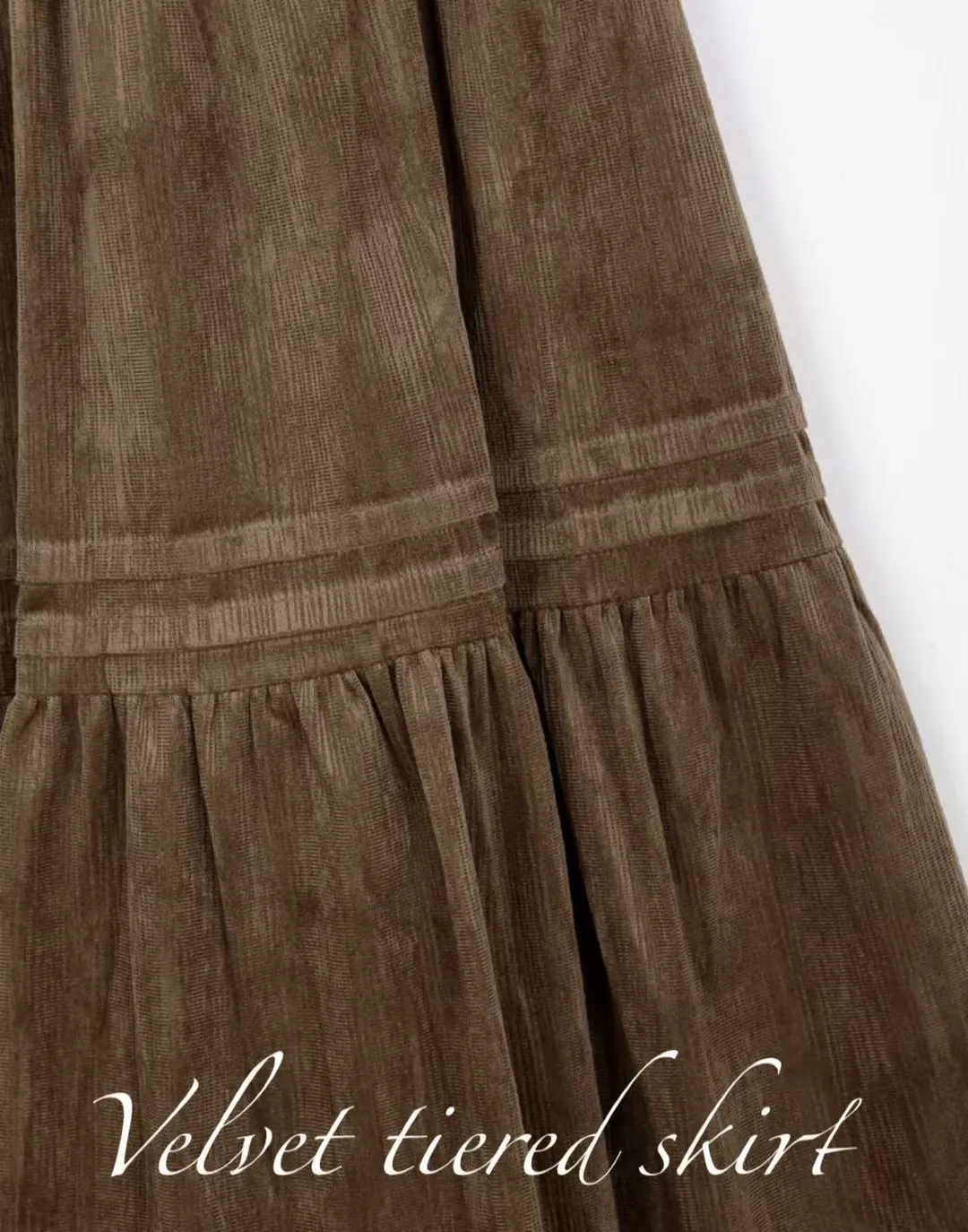 1221彈性腰圍燈芯絨蛋糕裙3色