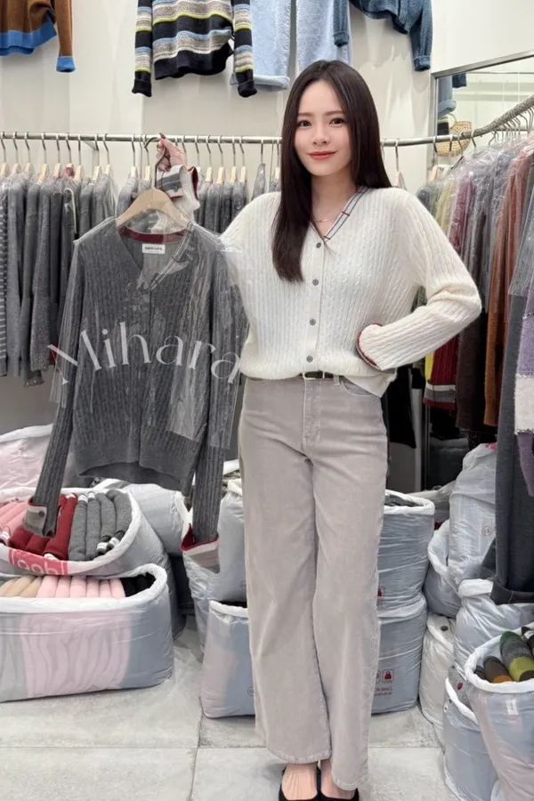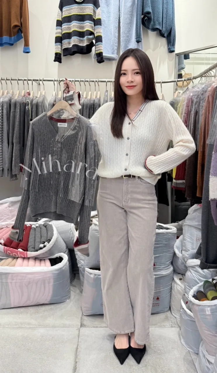 A20 1221Love針織家麻花編撞色排釦V領羊毛針織外套2色