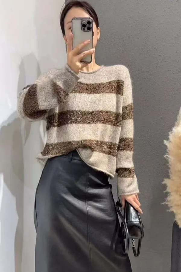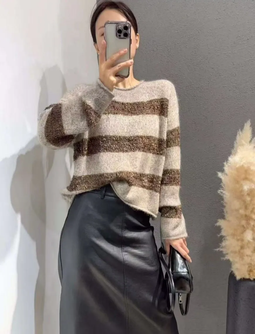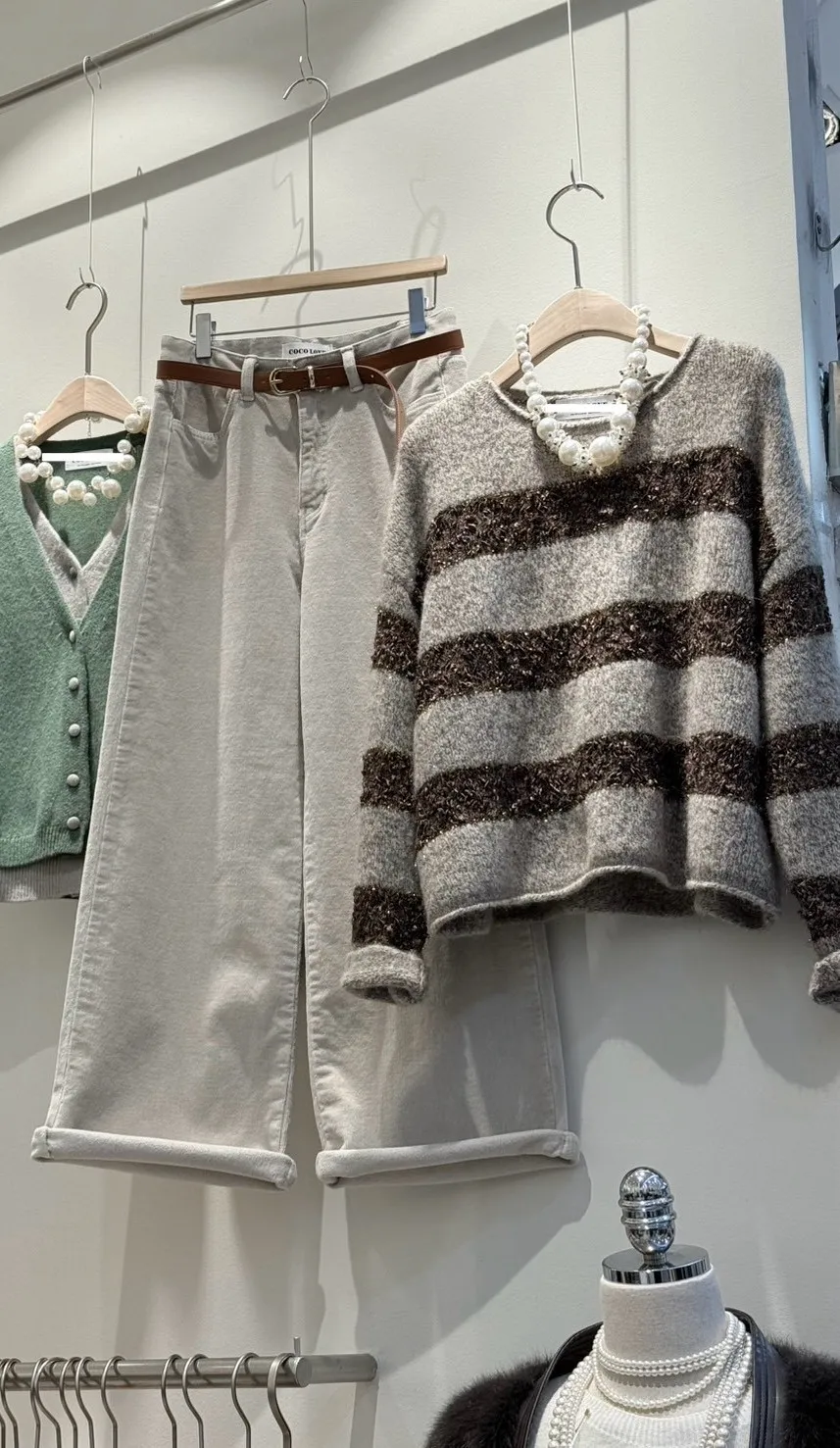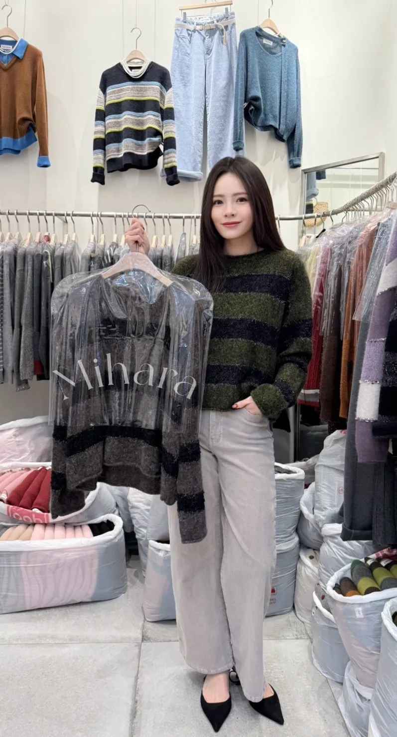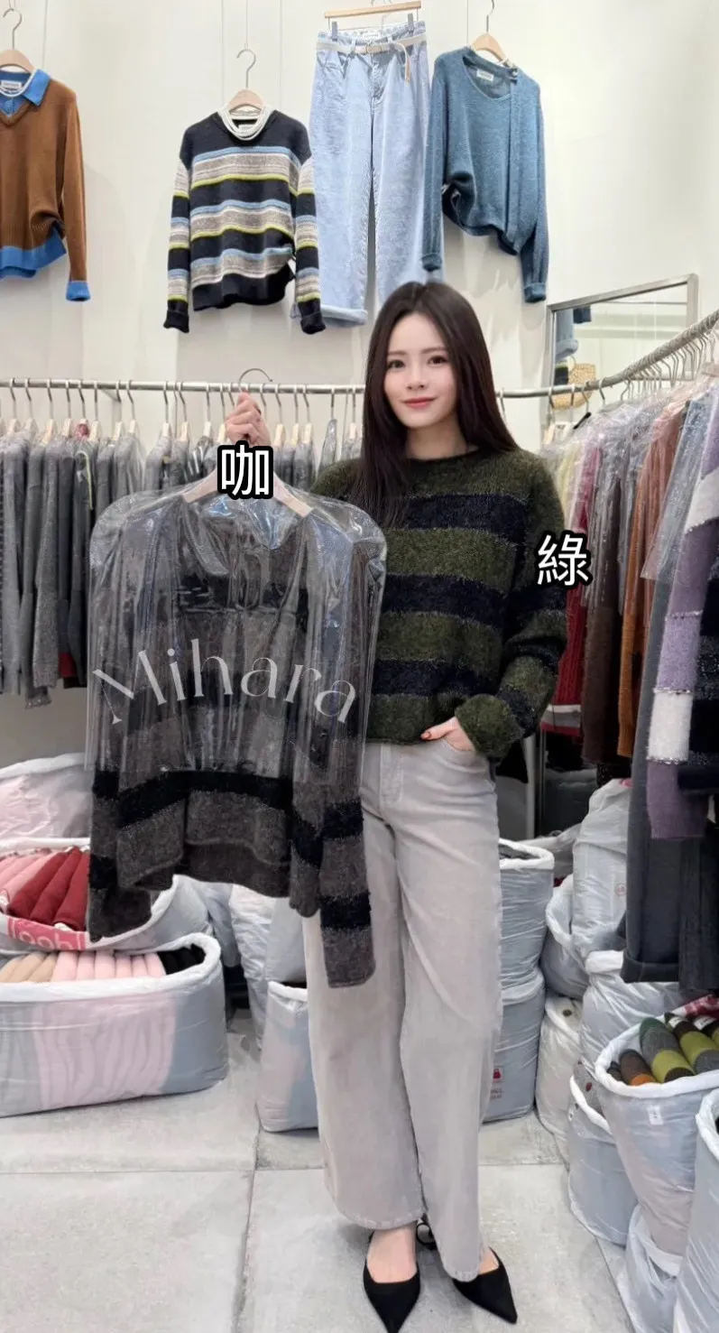 A21 1221Love針織家寬橫條圓領羊毛針織毛衣3色