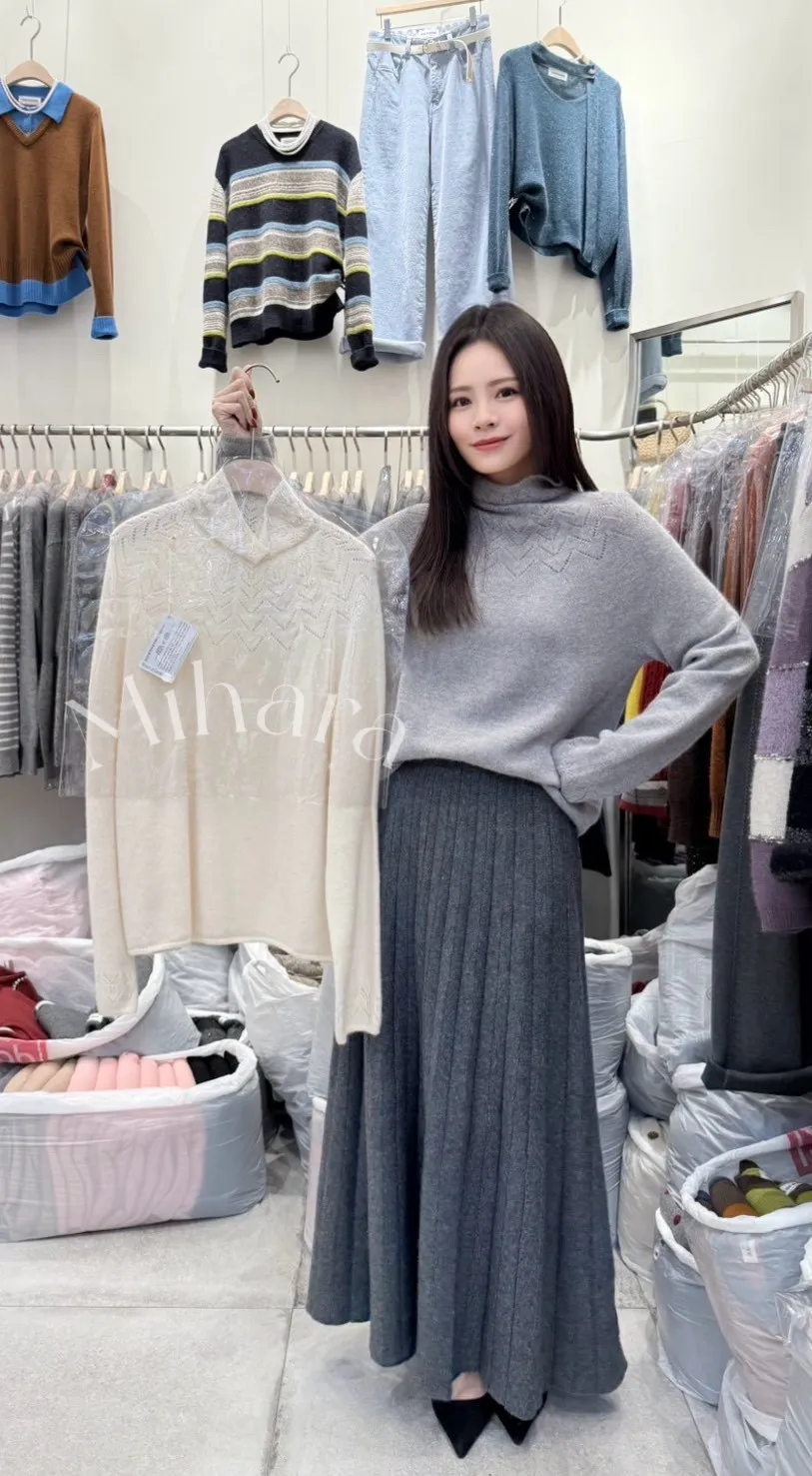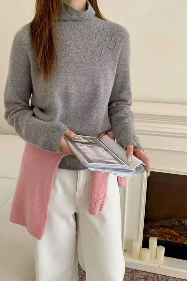 A25 1221Love針織家一體成型簍空高領羊毛針織毛衣2色