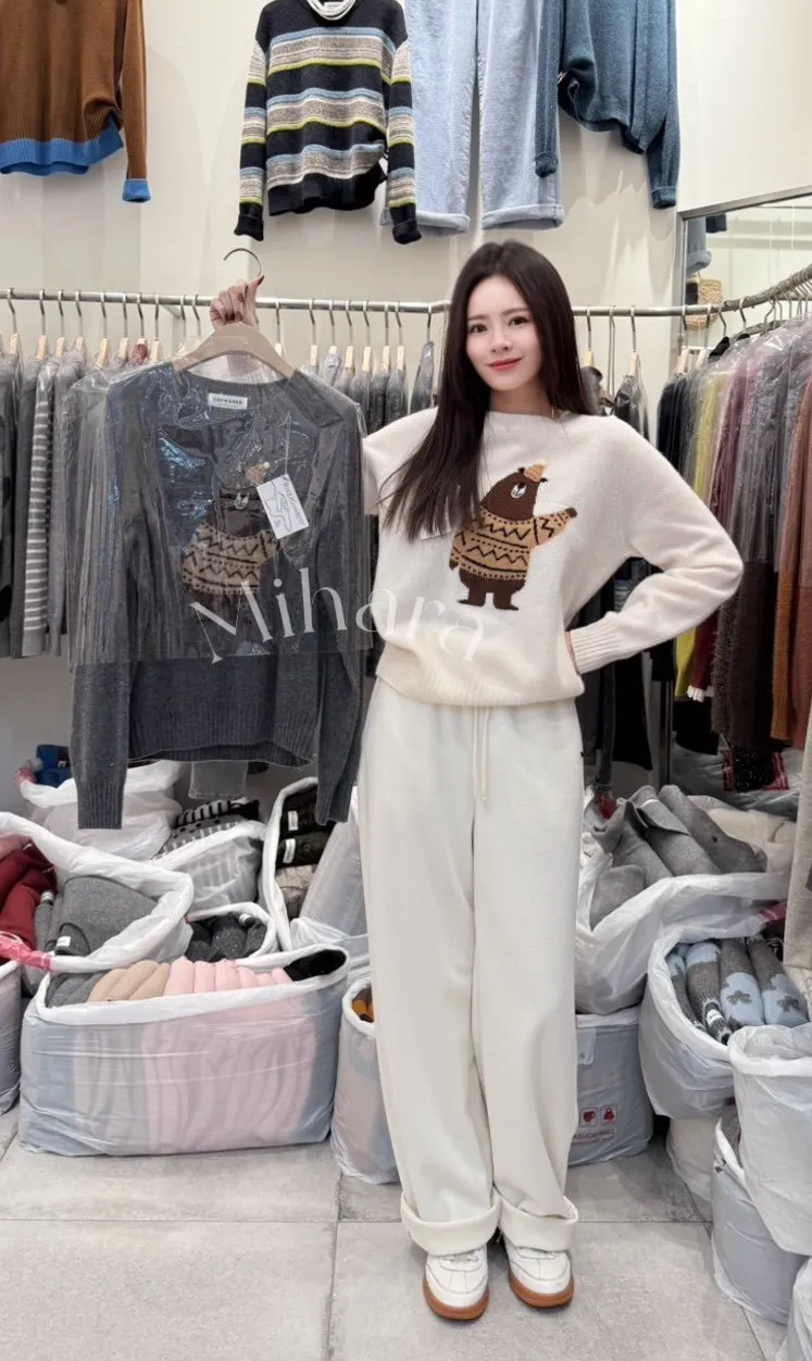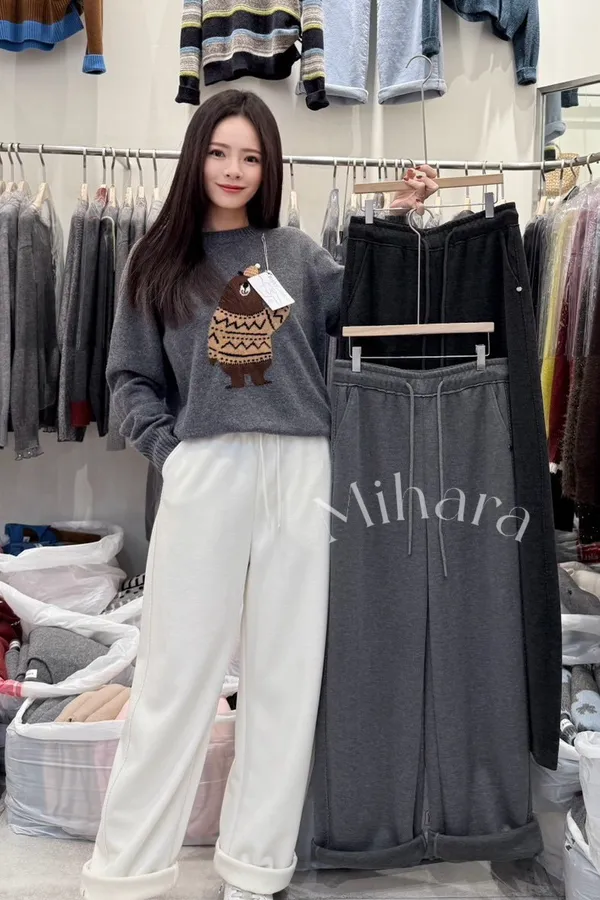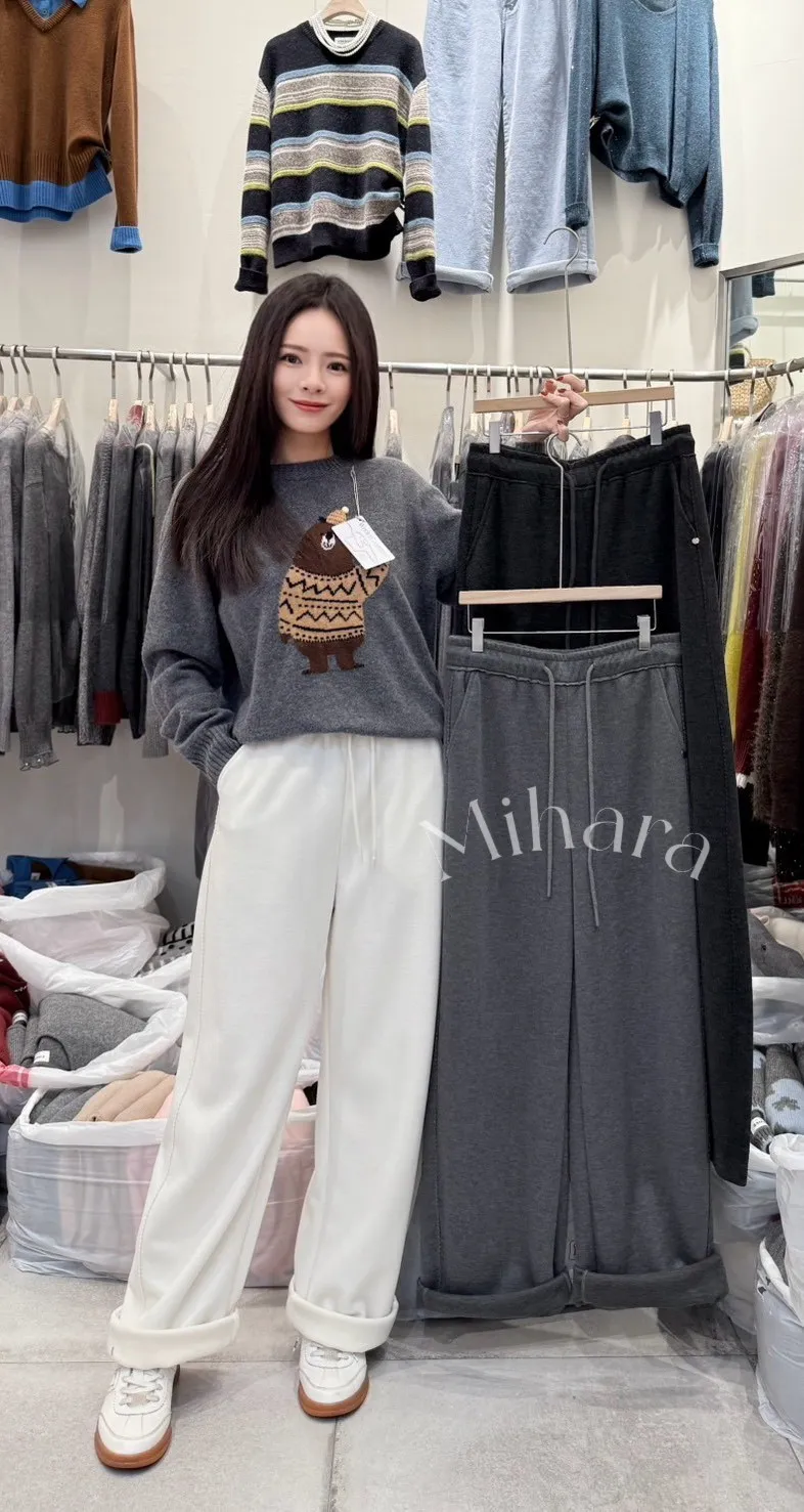 A36 1221Love針織家抽繩綁帶磨毛寬褲3色