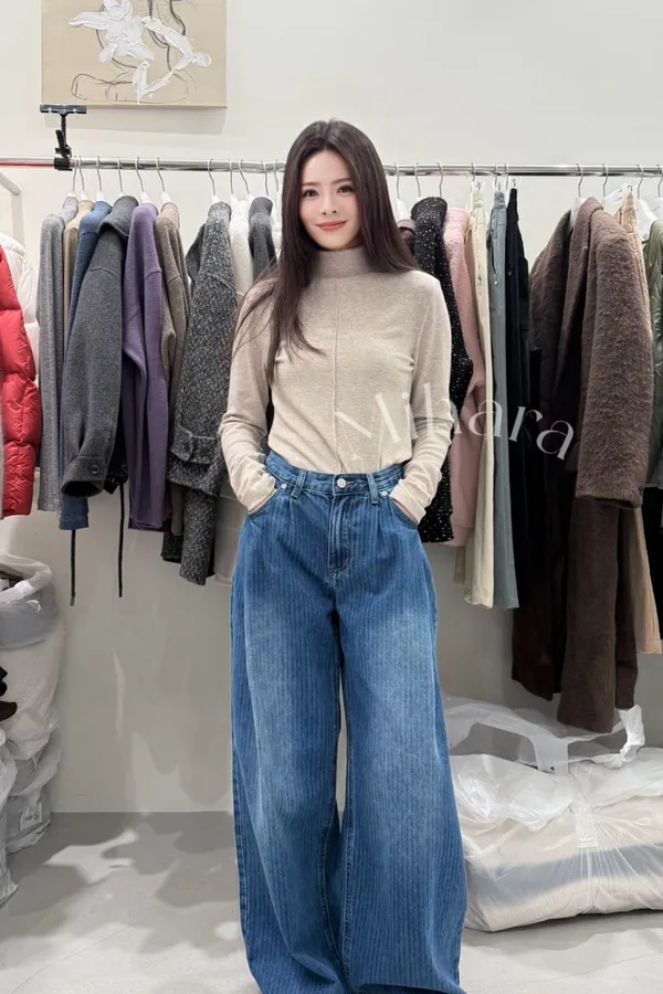 A26 1223(限量特)吐司歐膩家立體壓褶坑條牛仔褲(S/M)