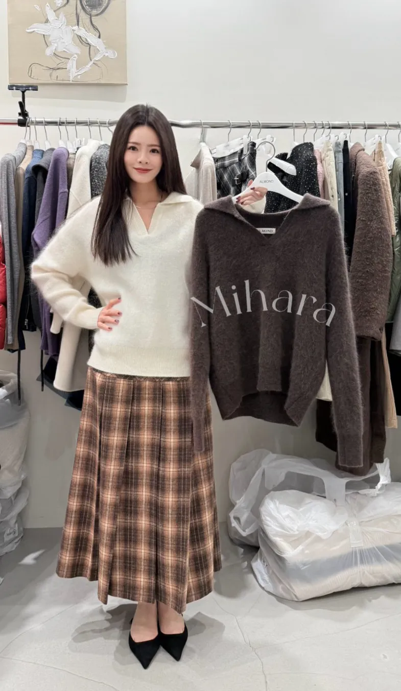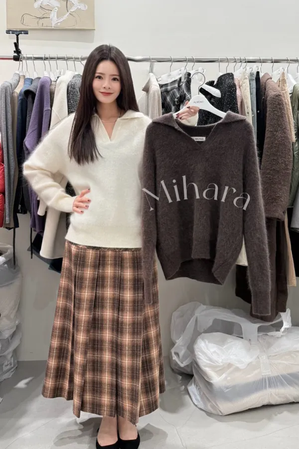 A30 1223(限量特)吐司歐膩家安哥拉羊毛翻領V領針織毛衣2色