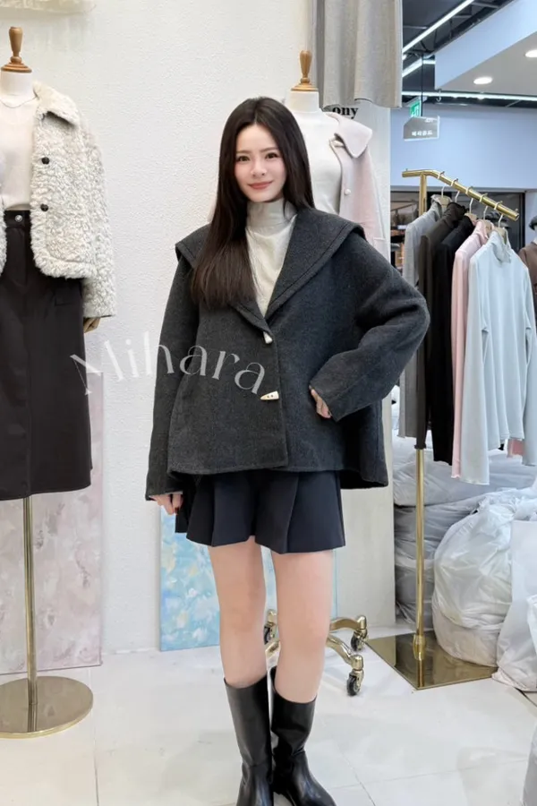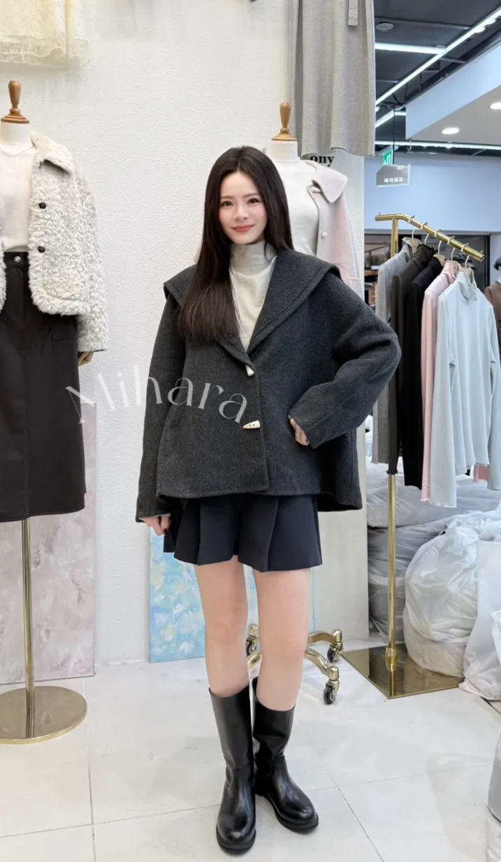 A52 1223(限量特)拉拉家雙牛角釦翻領羊毛100%手工大衣外套