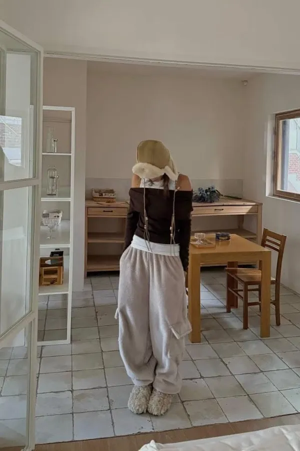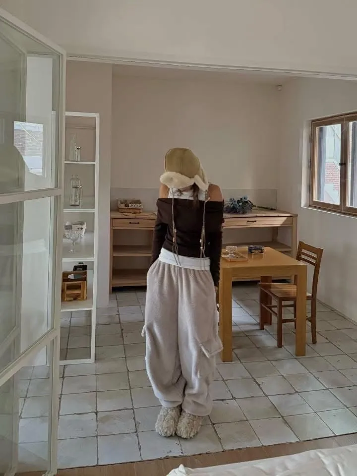 C16高檔櫃彈性腰圍毛毛口袋褲3色