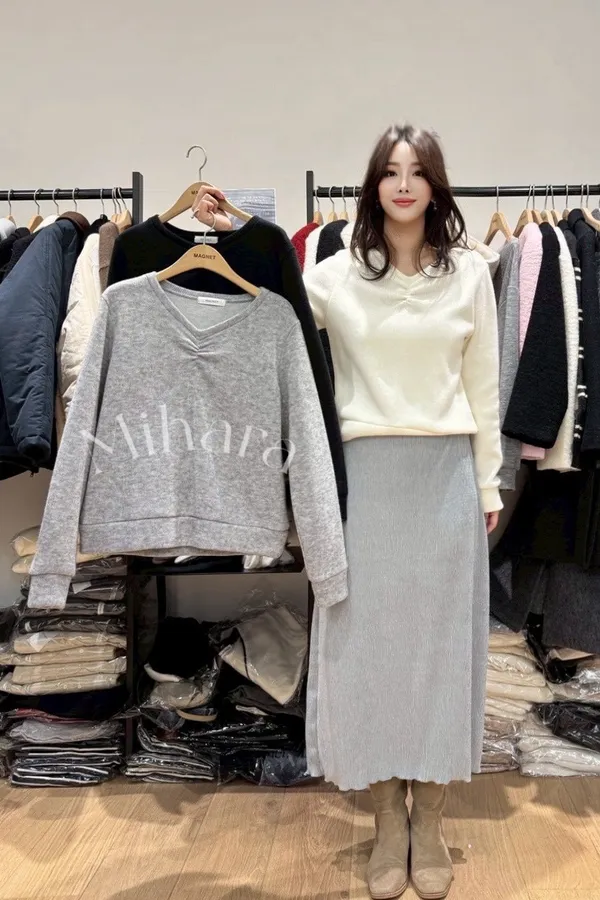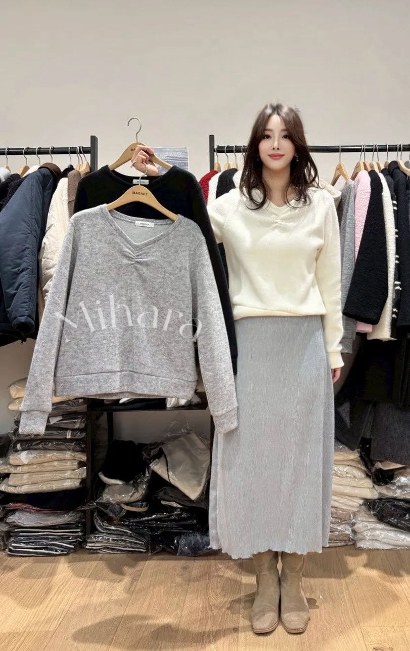 A12 1225高檔小香家羊毛30%抓褶V領針織上衣3色